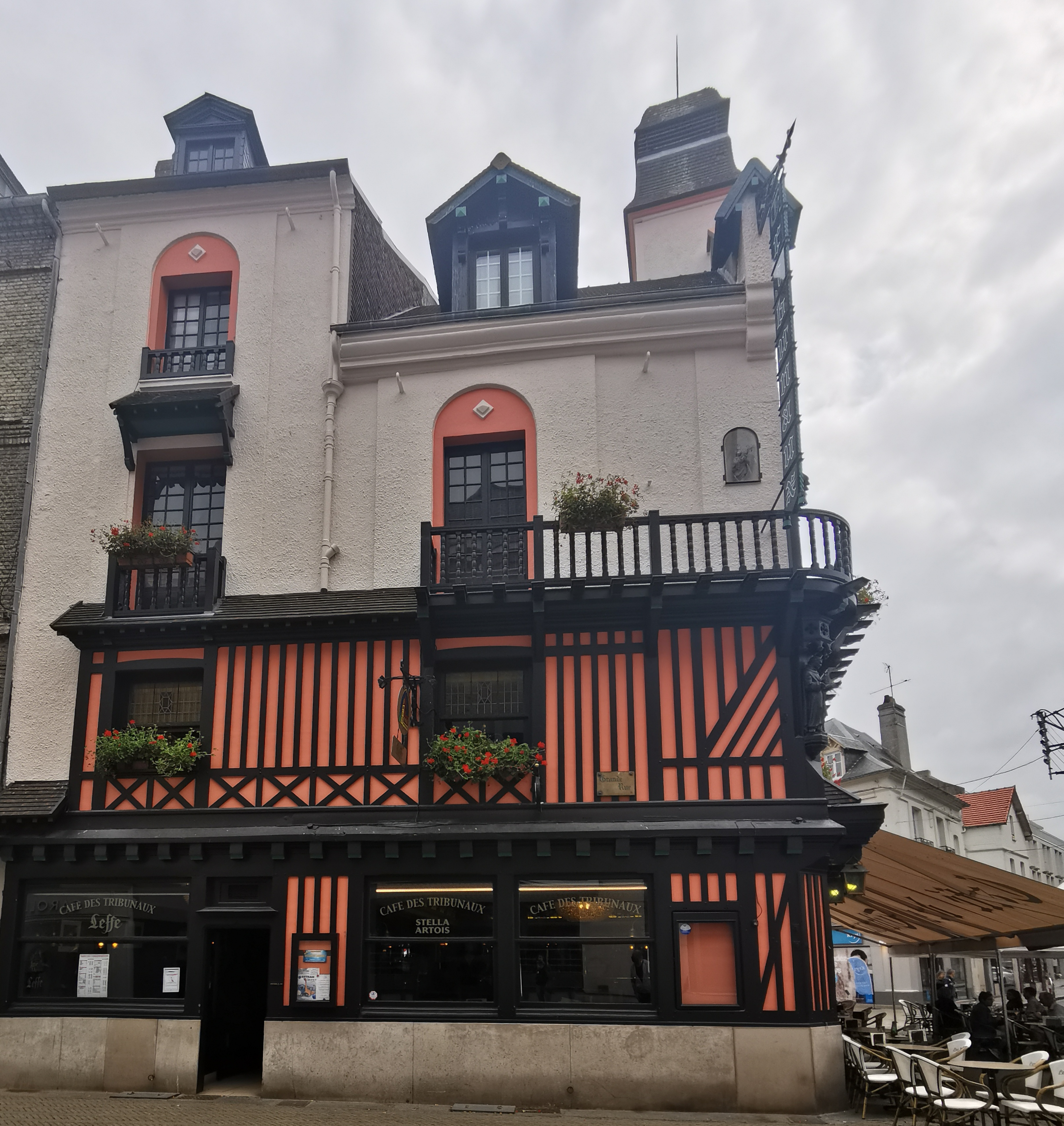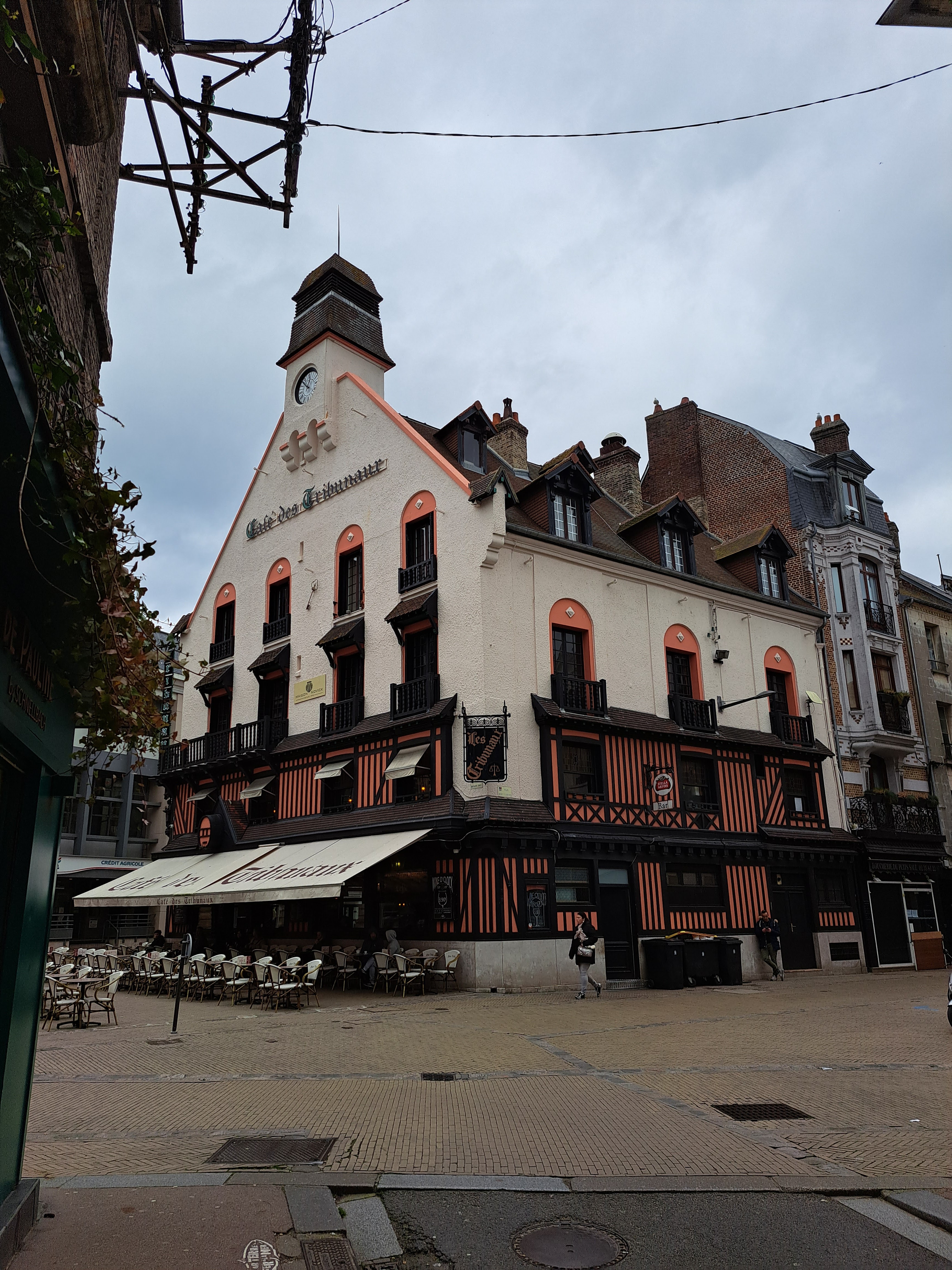 Le café des Tribunaux est certainement le plus emblématique des cafés dieppois... C'est la carte postale de Dieppe, le commerce qui fait le plus sensation, de par son architecture et son décor années folles ainsi que de sa situation stratégique. Il attire comme un aimant, habitués, touristes et badauds qui, après l'avoir photographier, viennent y boire un verre. Bref, the place to be ! Un affable et sympathique serveur m'a autorisé à photographier l'intérieur sous tous les angles. Ouvert de 8:00 à 20:00.