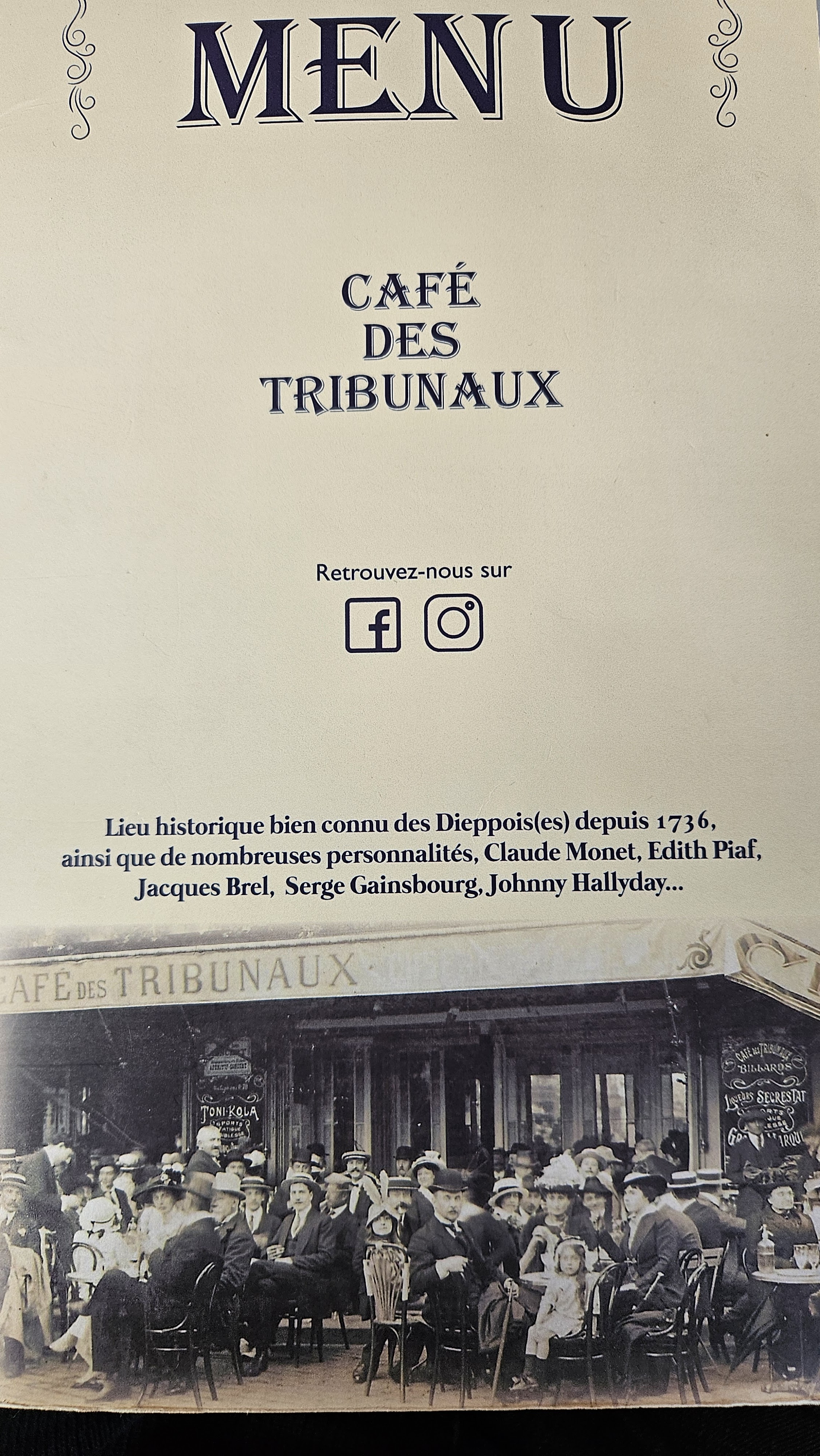 Nous ne pouvons pas venir à Dieppe sans passer par le CAFÉ DES TRIBUNAUX merci pour votre accueil et nous ne réservons jamais Bravo à tous pour leur travail. Une très belle rencontre avec Siobhan qui nous a illuminé de son sourire