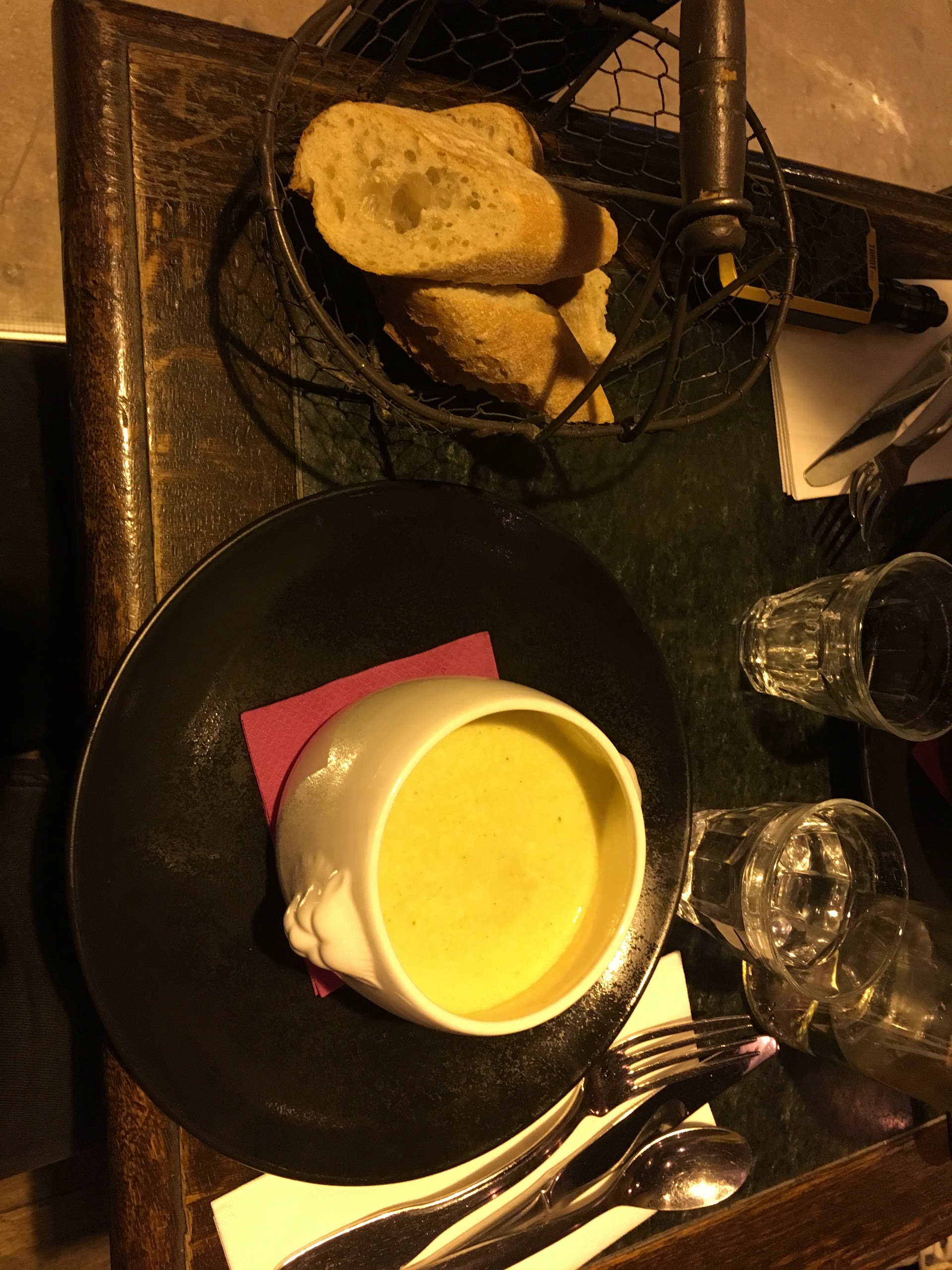Nous étions venus pour un brunch mais nous nous sommes laissés tenter par l'entrecôte gorgonzola accompagné d'un Côte de Bourg bio. Sans aucun regret 😋 Petit plus la découverte du gateau à la citrouille ! Les serveurs sont très sympas tout comme l'endroit. A y aller les yeux fermés !