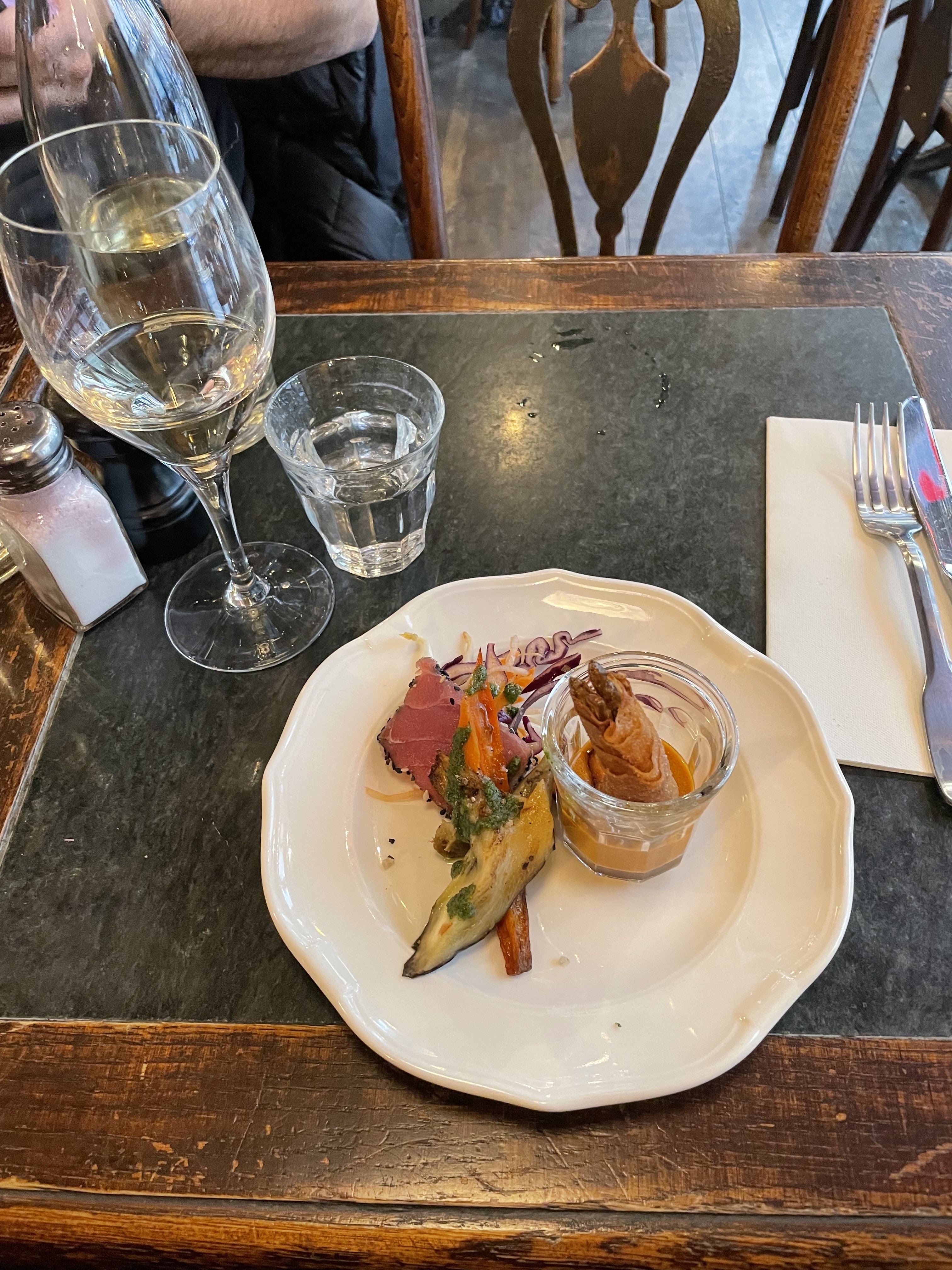 Je suis un peu surpris de la note plutôt basse de cet endroit. C'était tout simplement charmant lors de notre visite - le service était excellent malgré les mauvaises critiques à ce sujet. Tout le monde parlait un anglais parfait et était vraiment sympa. La nourriture était tout simplement incroyable - le meilleur foie de canard que nous ayons jamais mangé ! Le vin était d'un prix raisonnable et très savoureux. L'endroit est un peu plus cher que les lieux environnants, mais cela en vaut vraiment la peine pour nous.