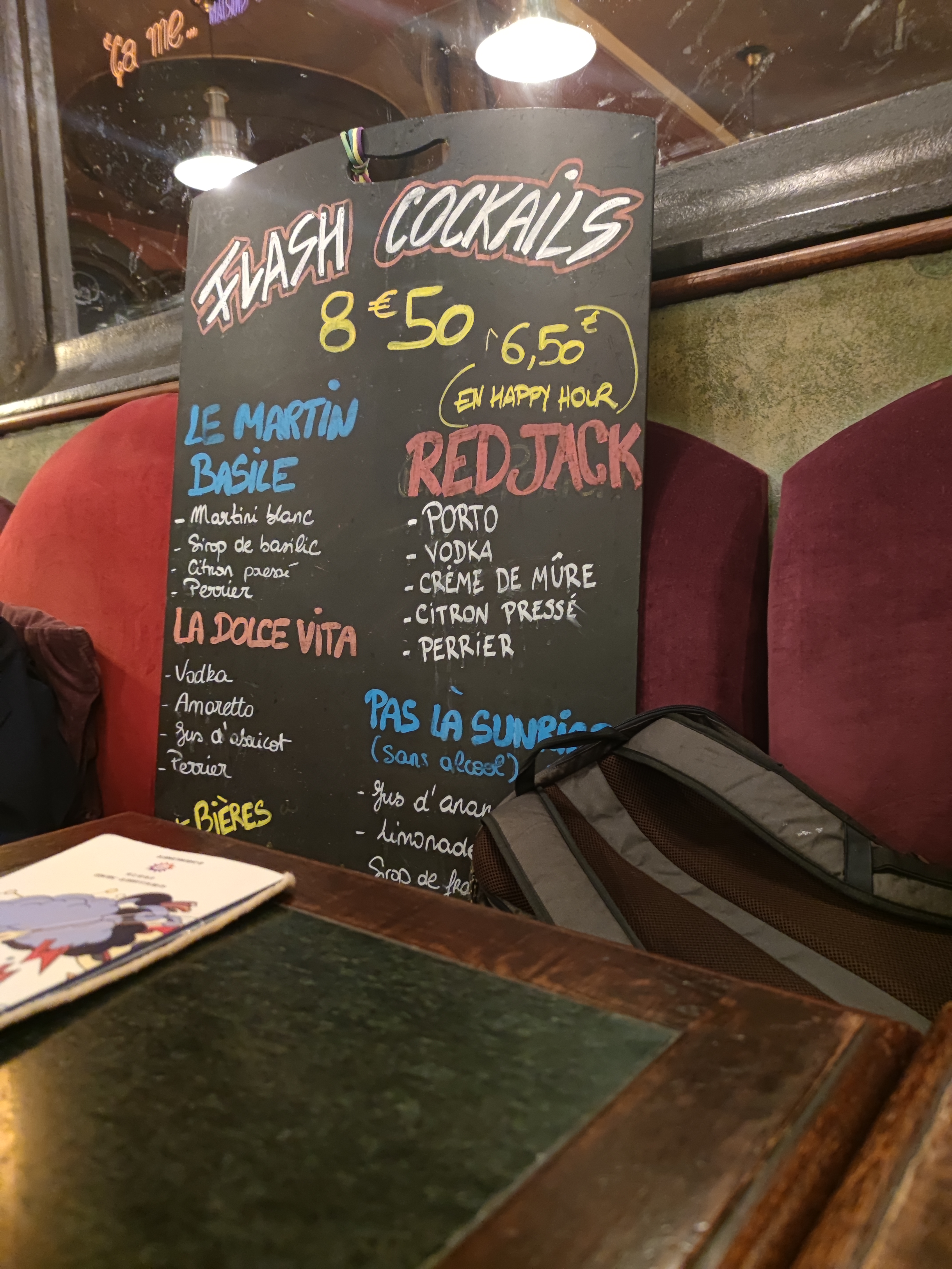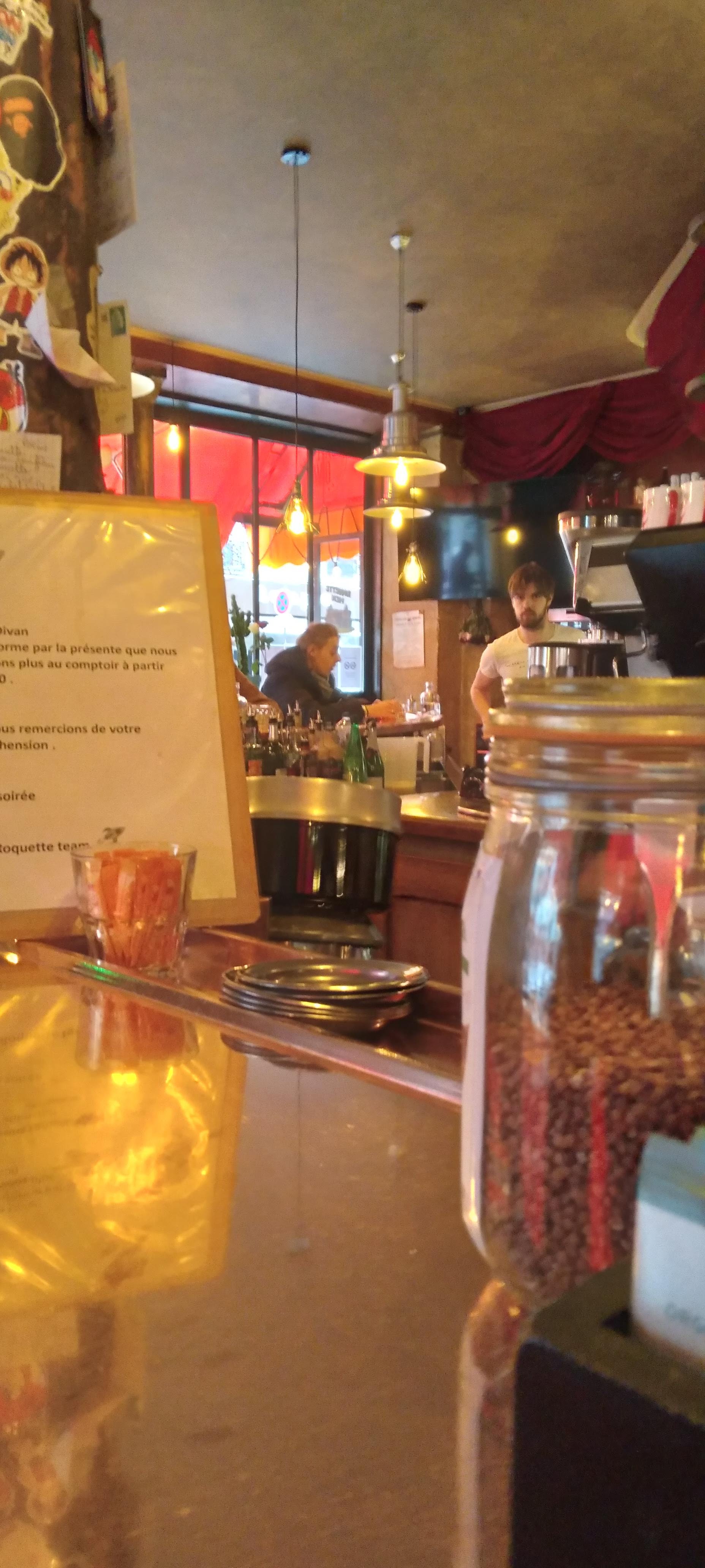 En attendant le concert au café de la Danse, pause dîner au café Divan : en plus d'avoir été régalé par le repas, nous l'avons également été par son équipe, attentionnée et drôle ! Merci ! (Et j'applaudis les protections pour femmes dans les toilettes !!!😉
