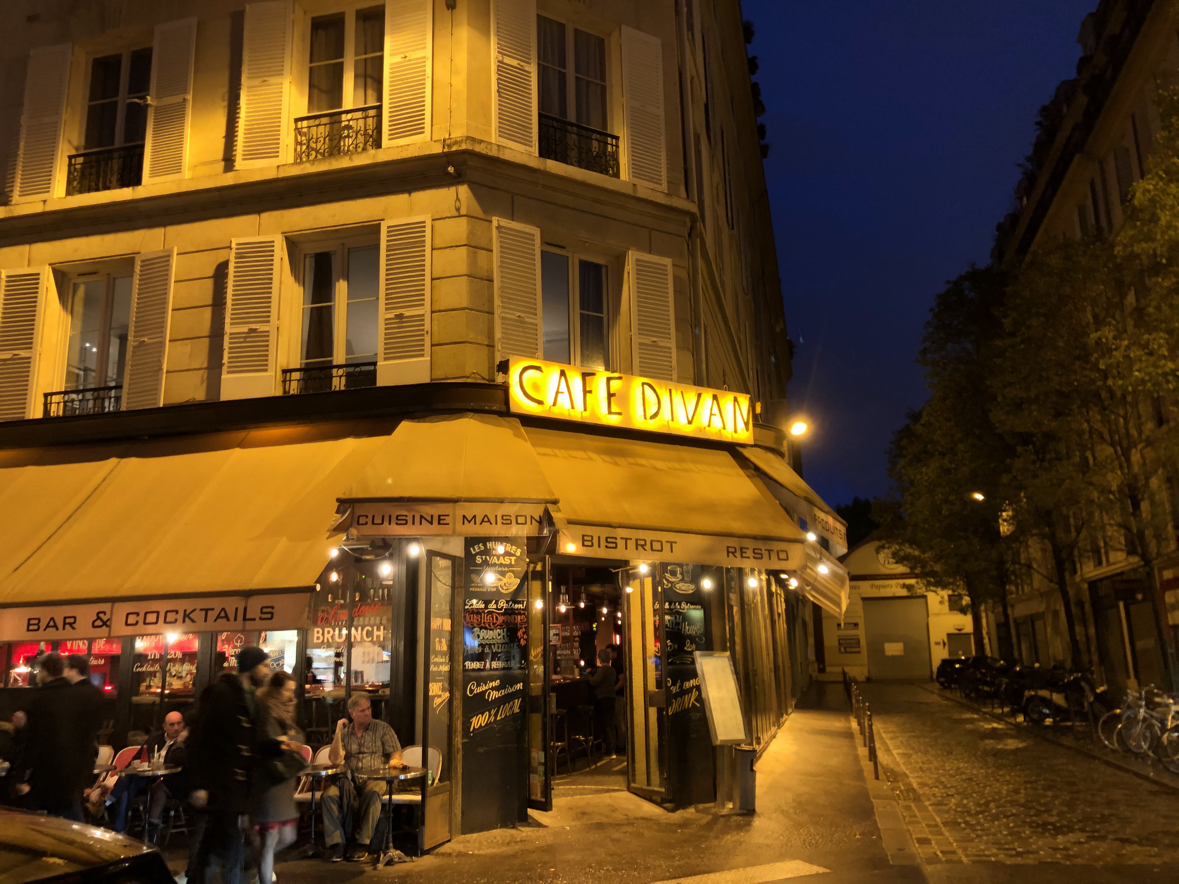 Tout près de chez moi. Le Divan est une institution. Chaleureux et agréable en terrasse. Les tarifs ne sont pas exagérés.