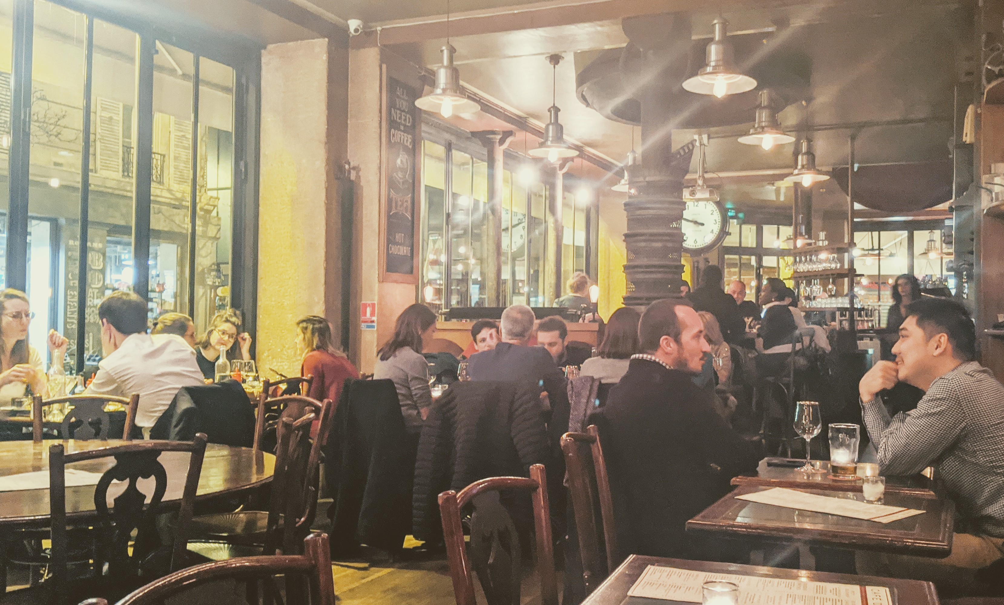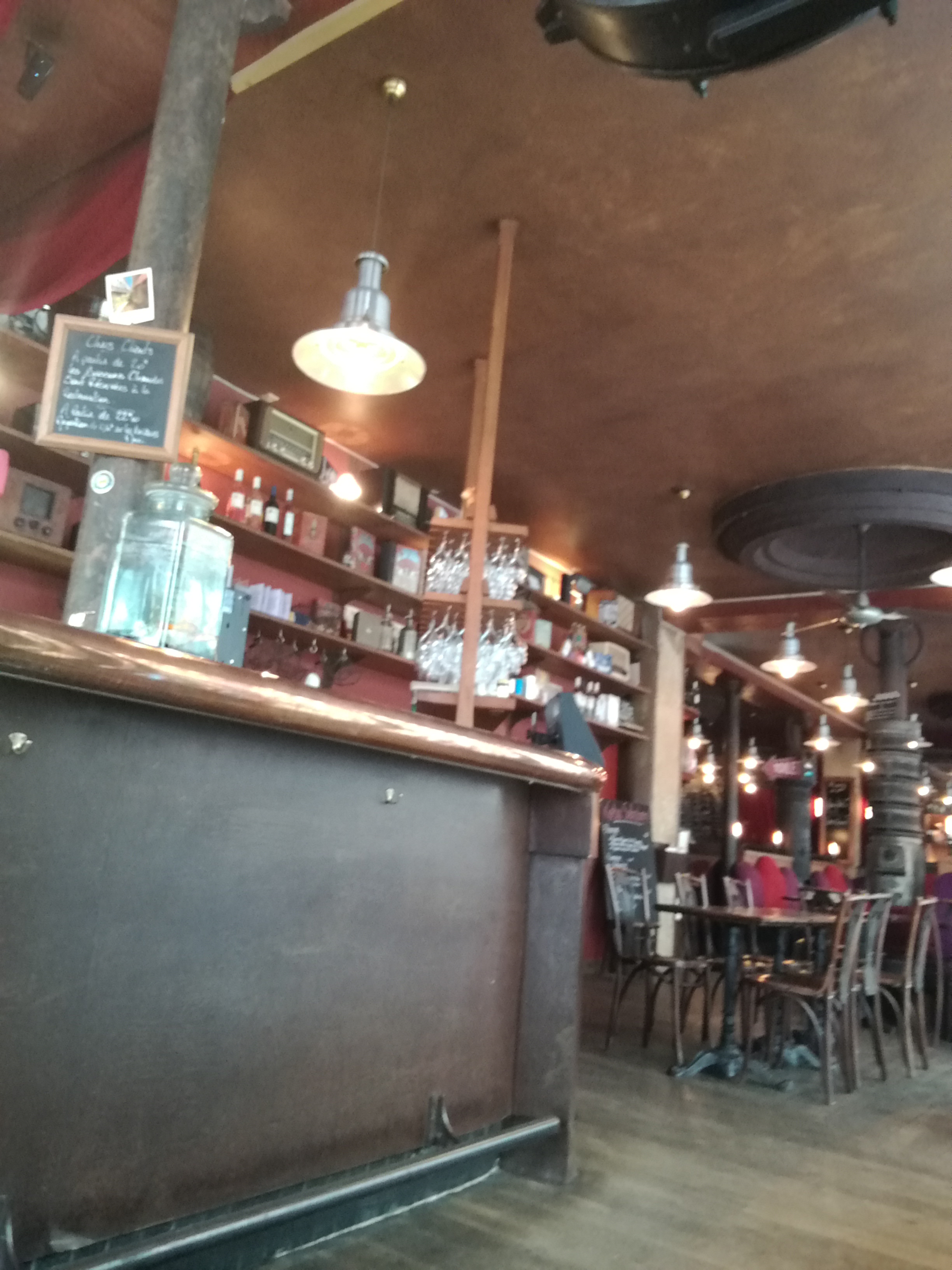 Ambiance au top, autant la déco (très travaillée et originale, avec une vraie identité) que le personnel très sympa (peut-être même trop au goût de certains ! Vous serez tutoyés et peut-être même appelés mes petits chats) Prix normaux pour Paris mais par contre la qualité des produits me semble meilleure que ce qu'on trouve en général dans ce type d'établissement