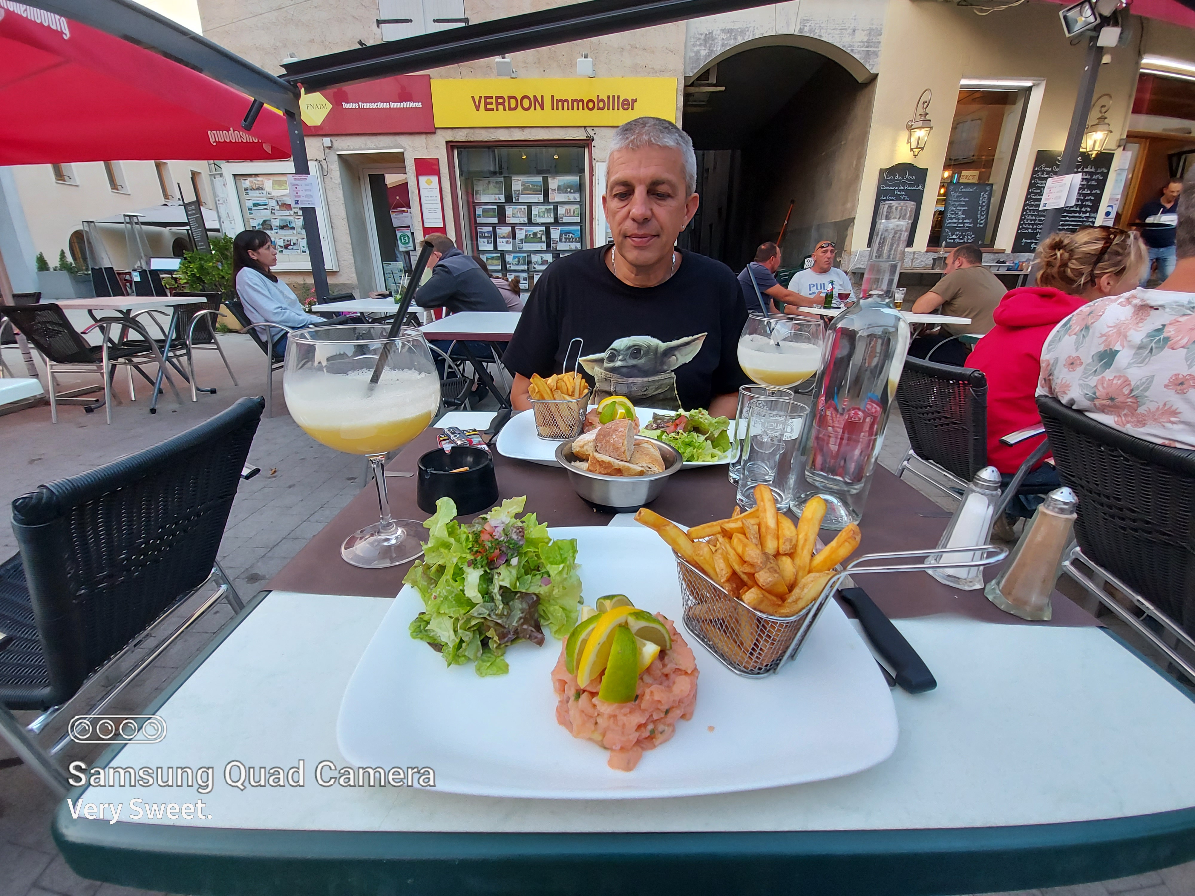 Petit café du commerce avec terrasse situé sur une grande place au centre de Saint André les Alpes, bonne cuisine copieuse avec un vrai un plat du jour (choucroute garnie a 13€ pour moi) et un tres copieux gratin de gnocchis à l'italienne excellent pour le collègue (15€) on recommande sans problème ce restaurant aux tarifs très abordables proche du lac de castillon et de la maison du saucisson à la renommée nationale.