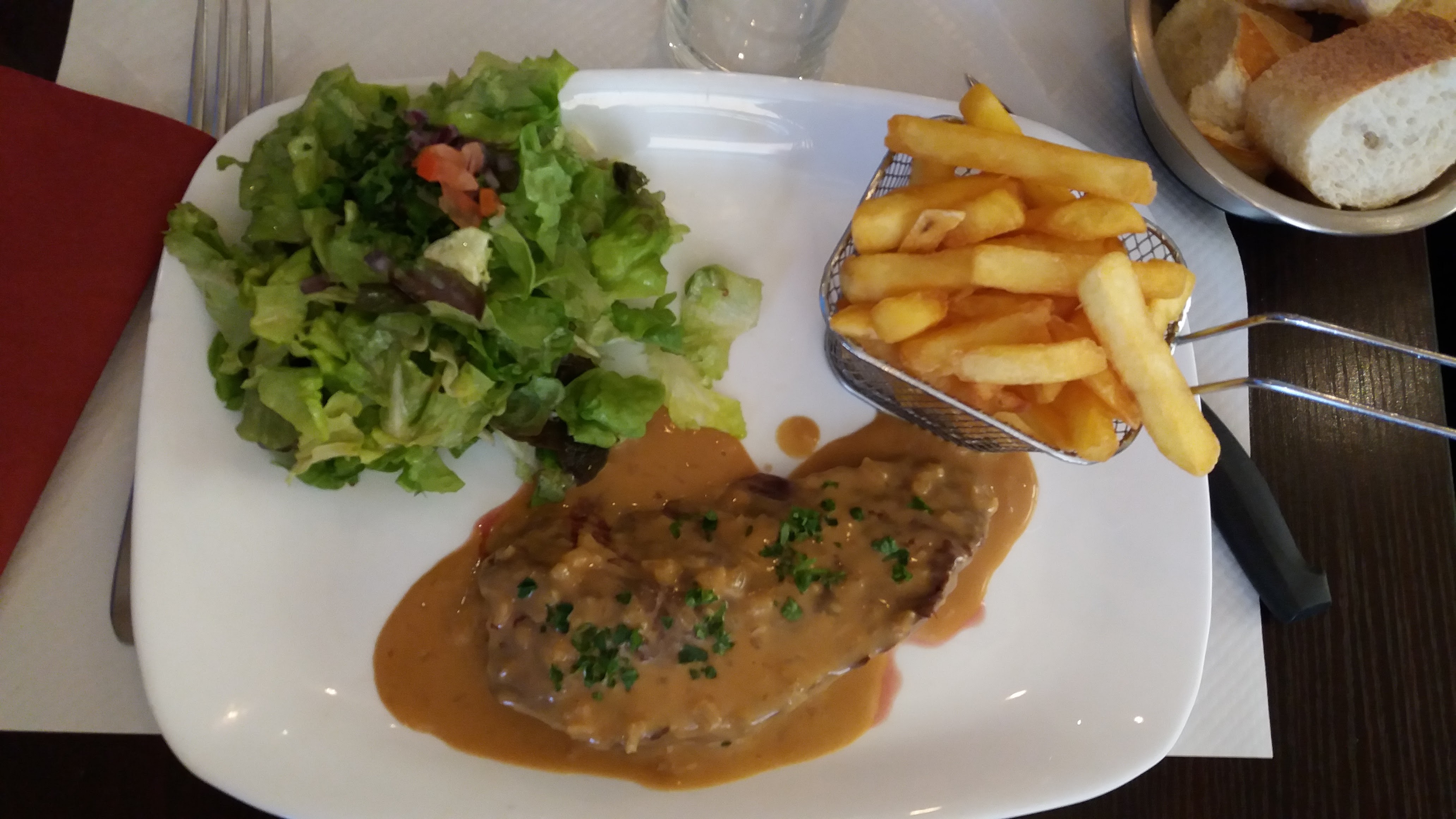 Petit café/brasserie qui ne paie pas de mine mais qui nous a cuisiné un très bon plat du jour ! Paupiette avec riz, à un prix très raisonnable. Cuisine simple et avec un très bon rapport qualité/prix, tout ce qu’on peut attendre de ce type d’établissement.