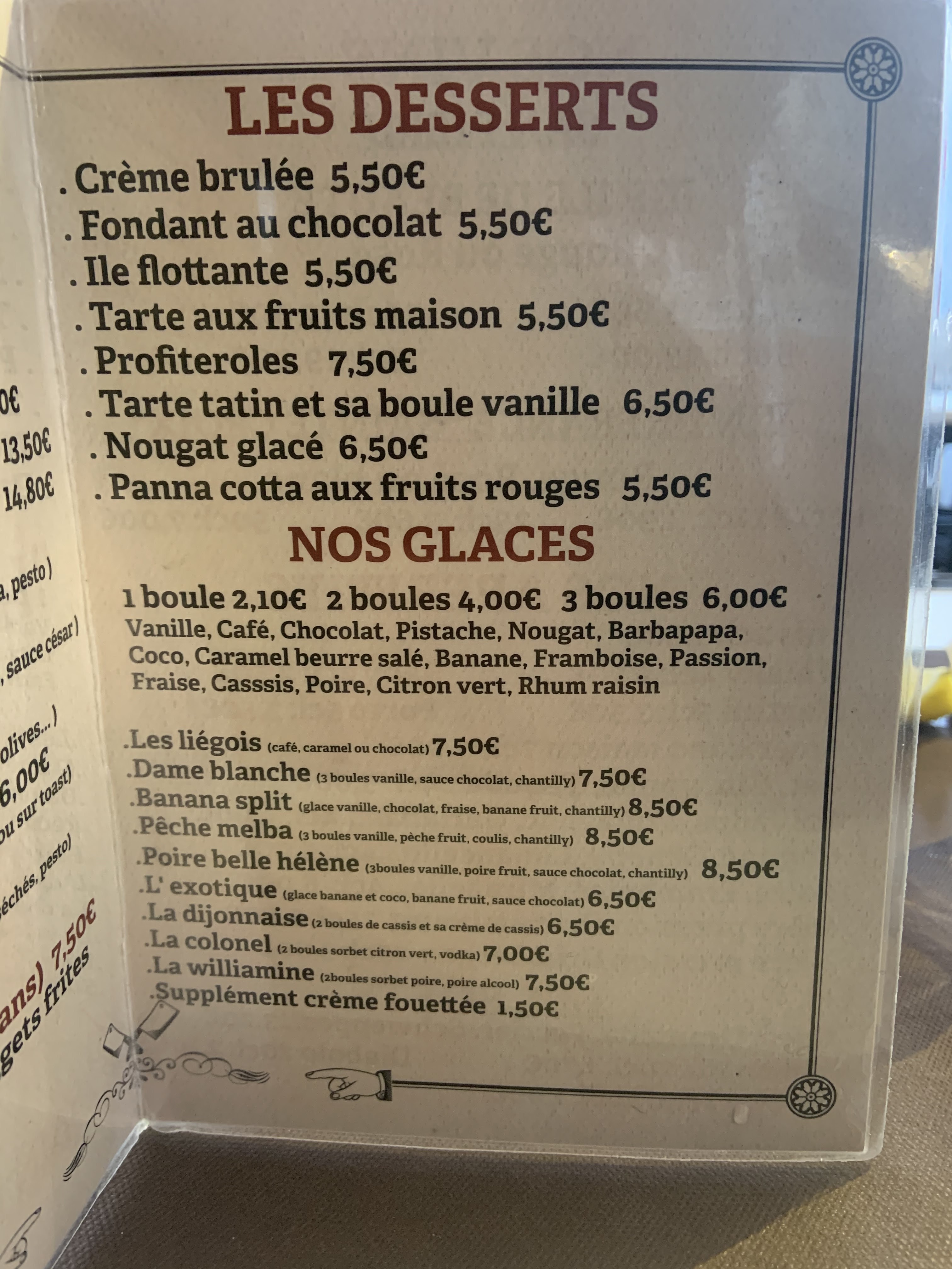 Parfait ! La cuisine est impeccable avec des quantités généreuse et délicieuse. Les serveurs sont sympathiques, drôle, dynamique, disponible et jovial. L'ambiance fut parfaite pour un groupe d'une dizaine d'amis. Nous avons pu déplacer les tables et rigoler avec les serveurs. Les serveurs ne sont pas intrusifs avec une capacité d'adaptation vis a vis d'un groupe exceptionnel. Les tarifs sont raisonnables pour la qualité du service et des produits. Je vous recommande a 100% cette destination qui se situe proche d'un parking en plus de l'accessibilité en fauteuil roulant pour la terrasse et la disponibilité des toilettes 👍 J'avais totalement zappé le plus important ‼️ Sans que nous avions demandé, l'on nous a amené des verres d'eau avec des glaçons ainsi que les cartes. Merci pour cette agréable après-midi combler par vos desserts succulent.