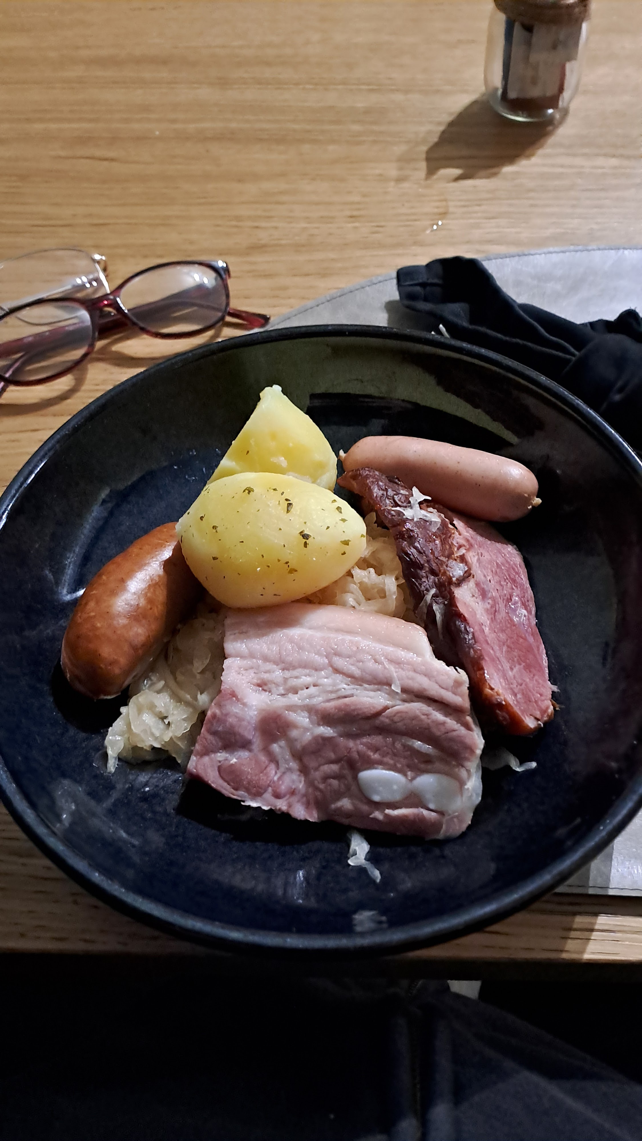 J'ai malheureusement oublié de prendre mon repas en photo mais de la vaisselle (moderne) à la présentation et jusque dans l'assiette tout était au top. Entre noël et nouvel an le restaurant proposait presque une dixaine de suggestions, viandes et poissons en nombre égaux, pour ma part en tant que végétarienne, ca n'a pas posé soucis de composer un repas avec une entrée et des accompagnements : oeuf parfait aux truffe avec purée pdt, assiette de speatzle et salade verte a côté. Rien n'est laissé de côté en cuisine, même la vinaigrette était goûteuse. Et je ne parle même pas des desserts, tous plus appétissant les uns que les autres. Le service ultra sympa bref je suis très contente d'avoir un chouette endroit comme celui ci dans un petit village.