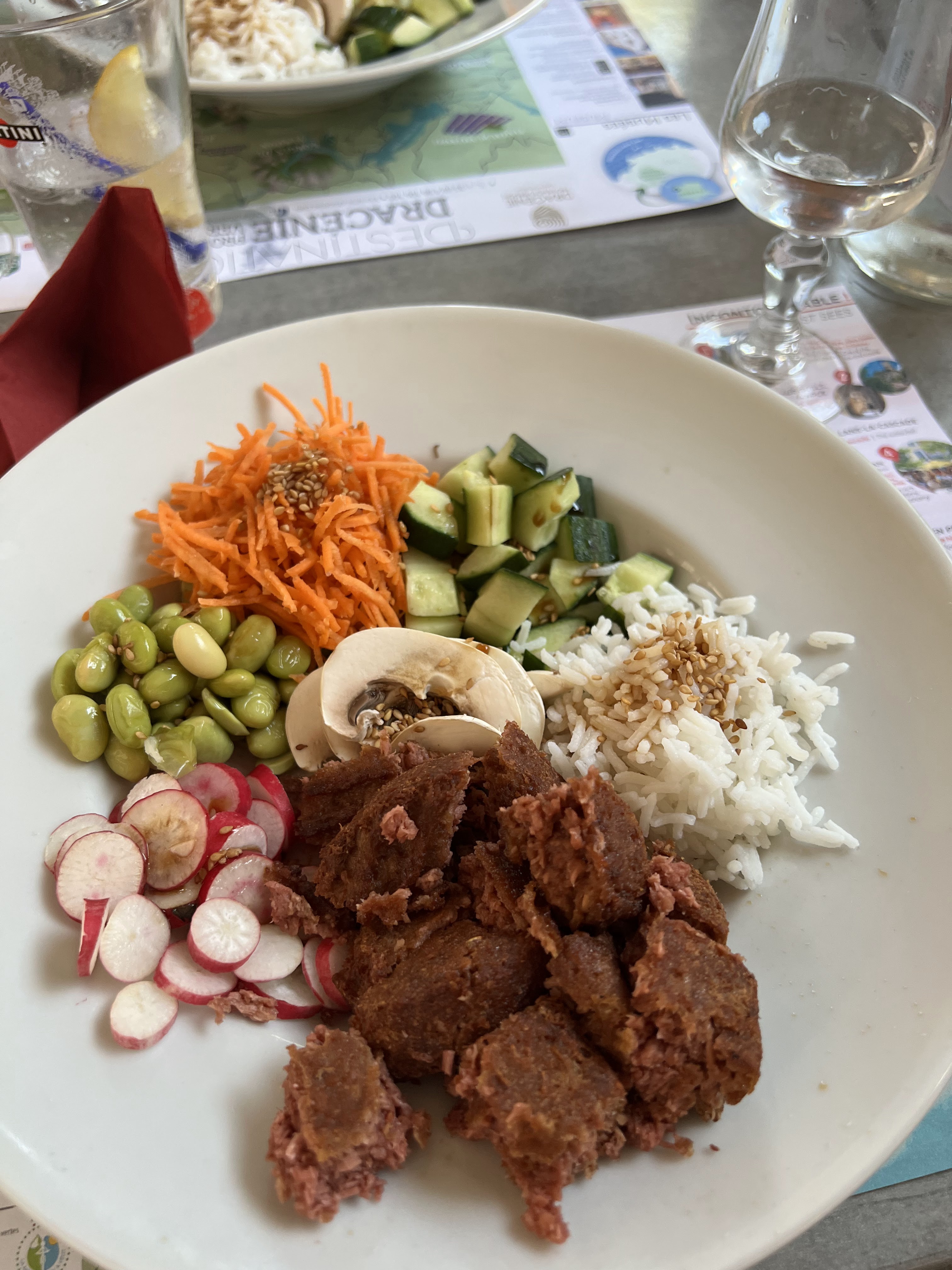 La nourriture n'était pas vraiment savoureuse. Le poke bowl végétarien n’est pas recommandé. Le personnel était sympathique et les prix n'étaient pas particulièrement élevés.