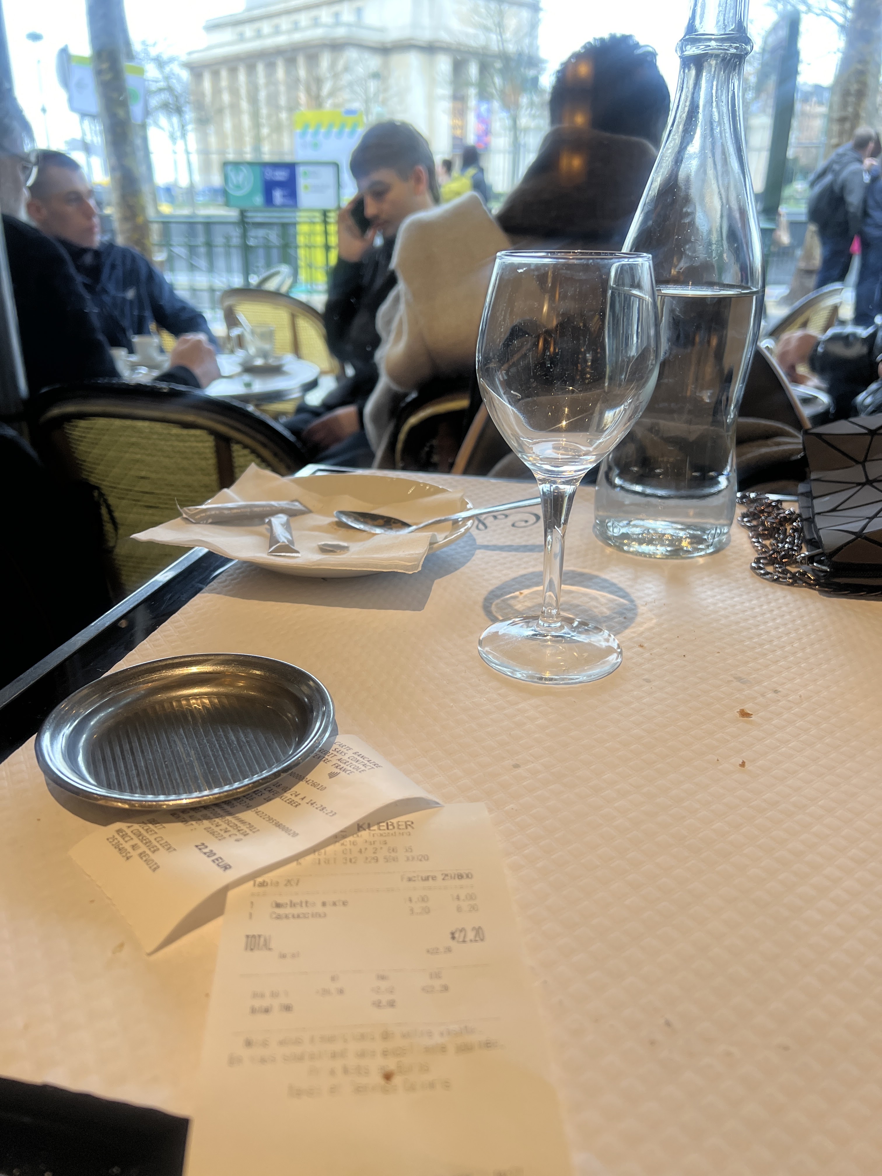 16,20 euros un café, un perrier, un coca !! Le tout réglé avec un billet de 20 euros, avec un peu de charme et beaucoup de savoir faire, le serveur repart avec le billet laissant comprendre que la monnaie était son pourboire !! Non Monsieur, 3,80 euros de pourboire vu le prix des boissons, nous ne reviendrons pas. Il serait dommage d'arrêter cette façon de faire, des touristes en chassent d'autres. La réputation de Paris est bien méritée !!