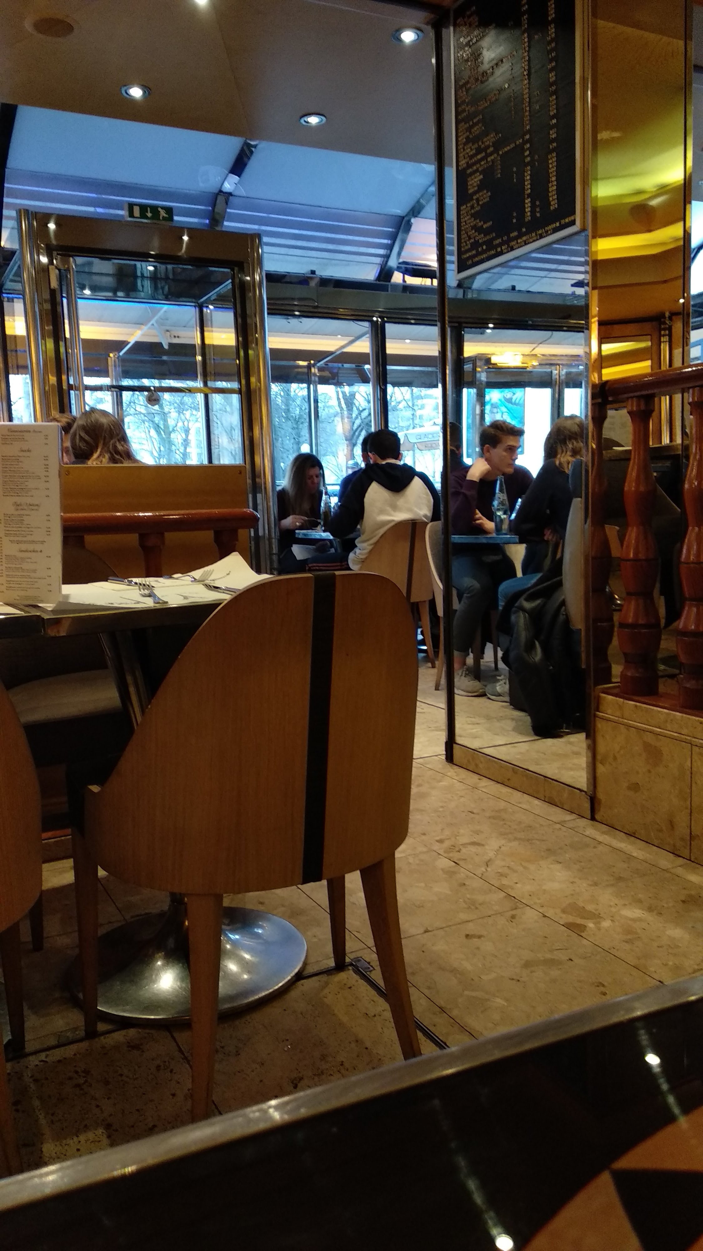 Personnel très sympathique. Bon emplacement en haut du Trocadero et décoration sympa. Prix exorbitants, mais comme dans tout Paris.... 6 euros 50 un chocolat chaux, 7 euros 50 un thé...