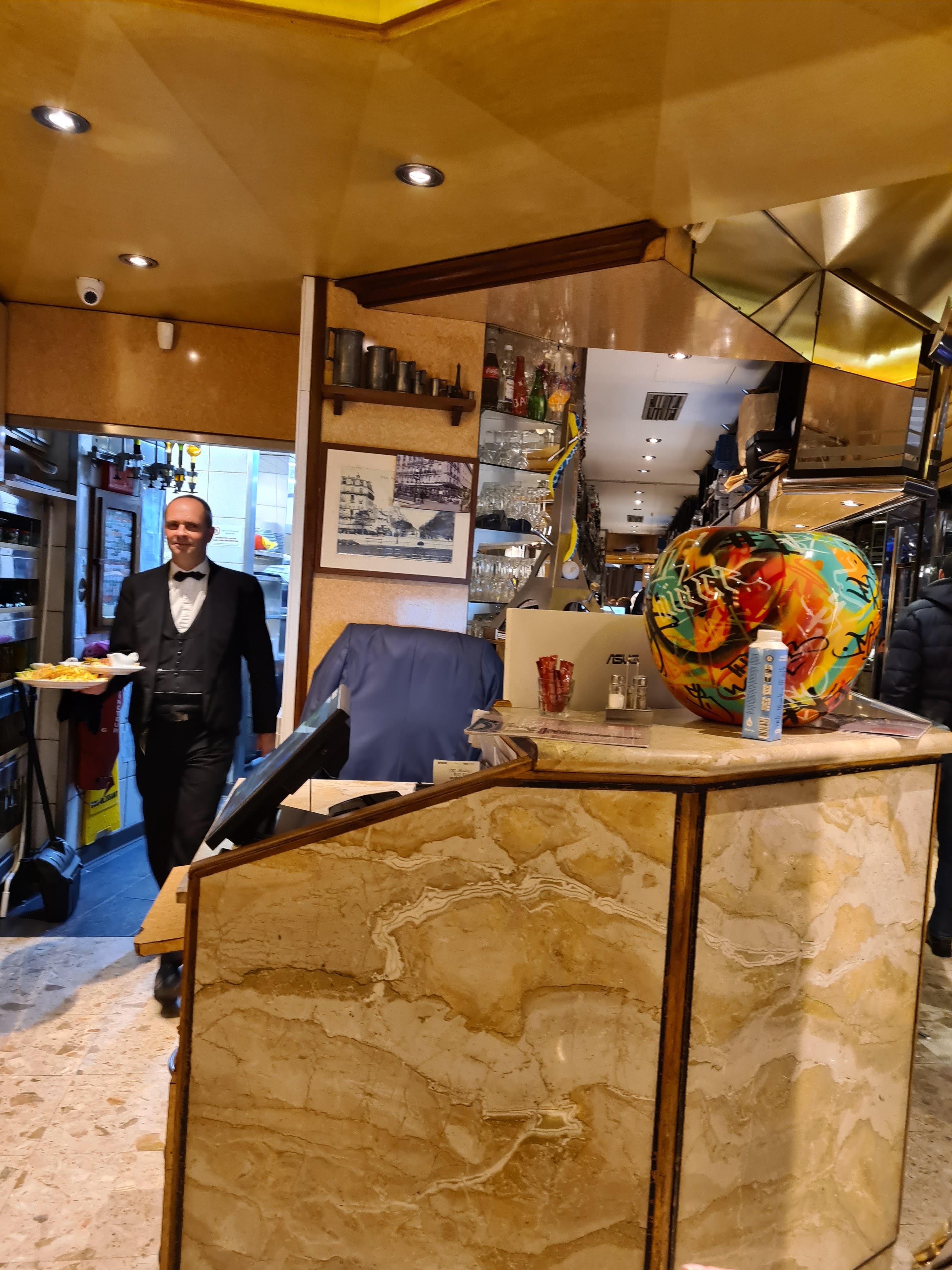 ♥️ les serveurs particulièrement aimables et la situation géographique (place du Troca tout de même !) justifient amplement le prix du kfé ☕ à 3€5, qui en plus est bon... Et je vous conseille de déjeuner /dîner, c'est excellent tout autant !