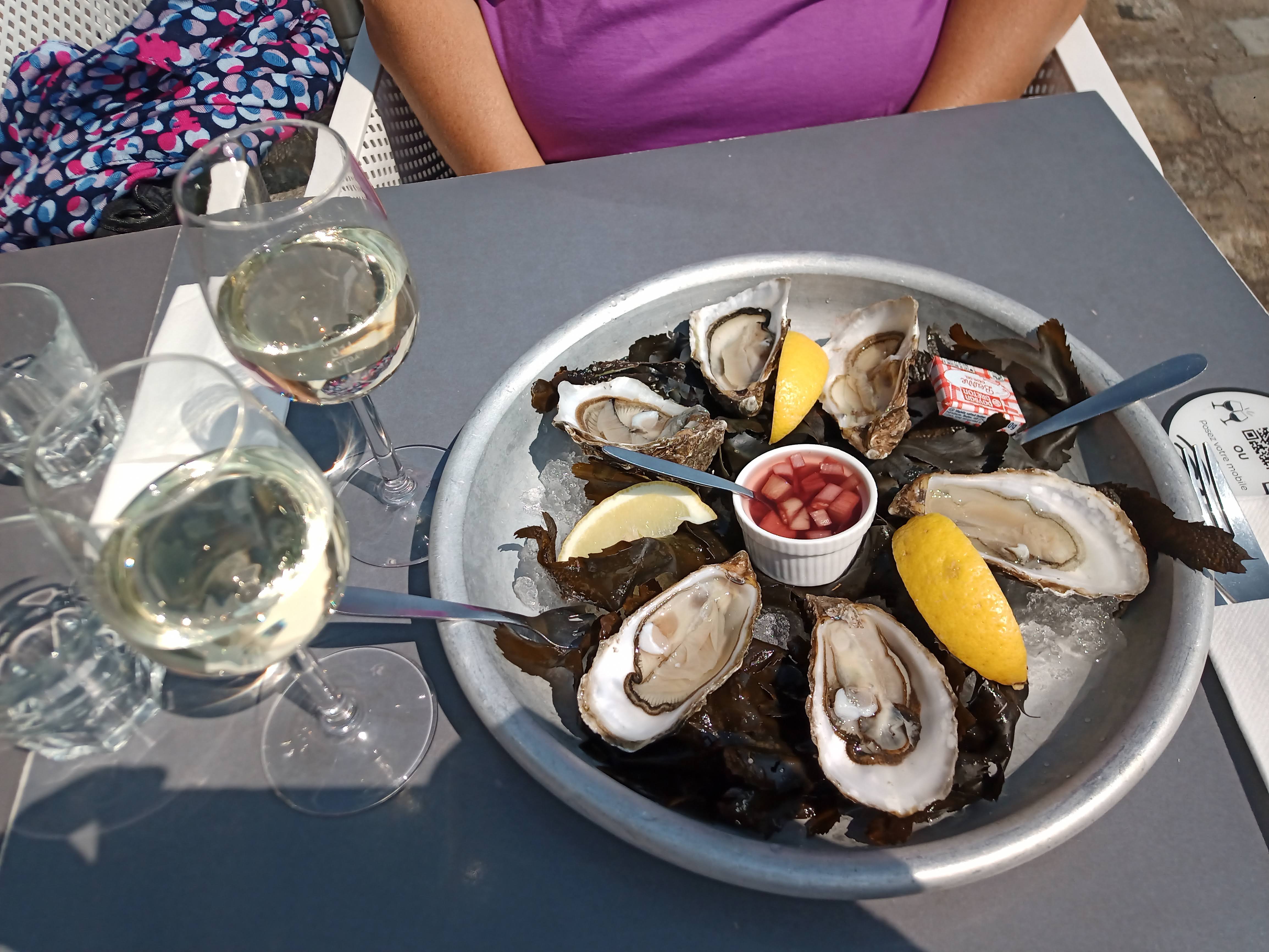 Les huîtres sont excellentes, moules cuitent à l'étouffées avec des épines de pins. Original et très bon !!!! Vue superbe.