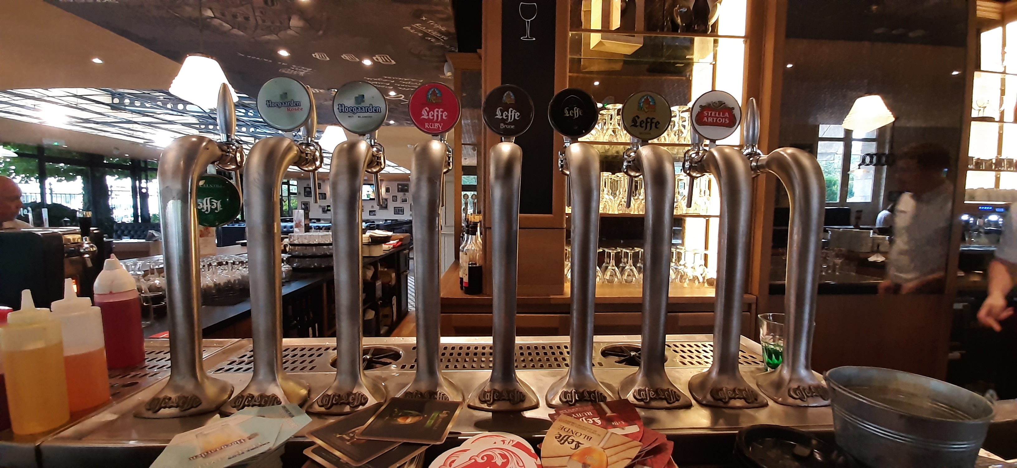 Son point fort: l emplacement et le service à tout heure. La salle avec sa verrière est belle, mais il faisait vraiment trop chaud. Le personnel semblait exténué et nous avons attendu presqu'une demi-heure avant de pouvoir passer commande. Pour un établissement Leffe, qui doit écouler une quantité astronomique de bière, le prix de leur pression est honteux ! Par contre, le rapport qualité-prix de leur carte brasserie est tout à fait correct.