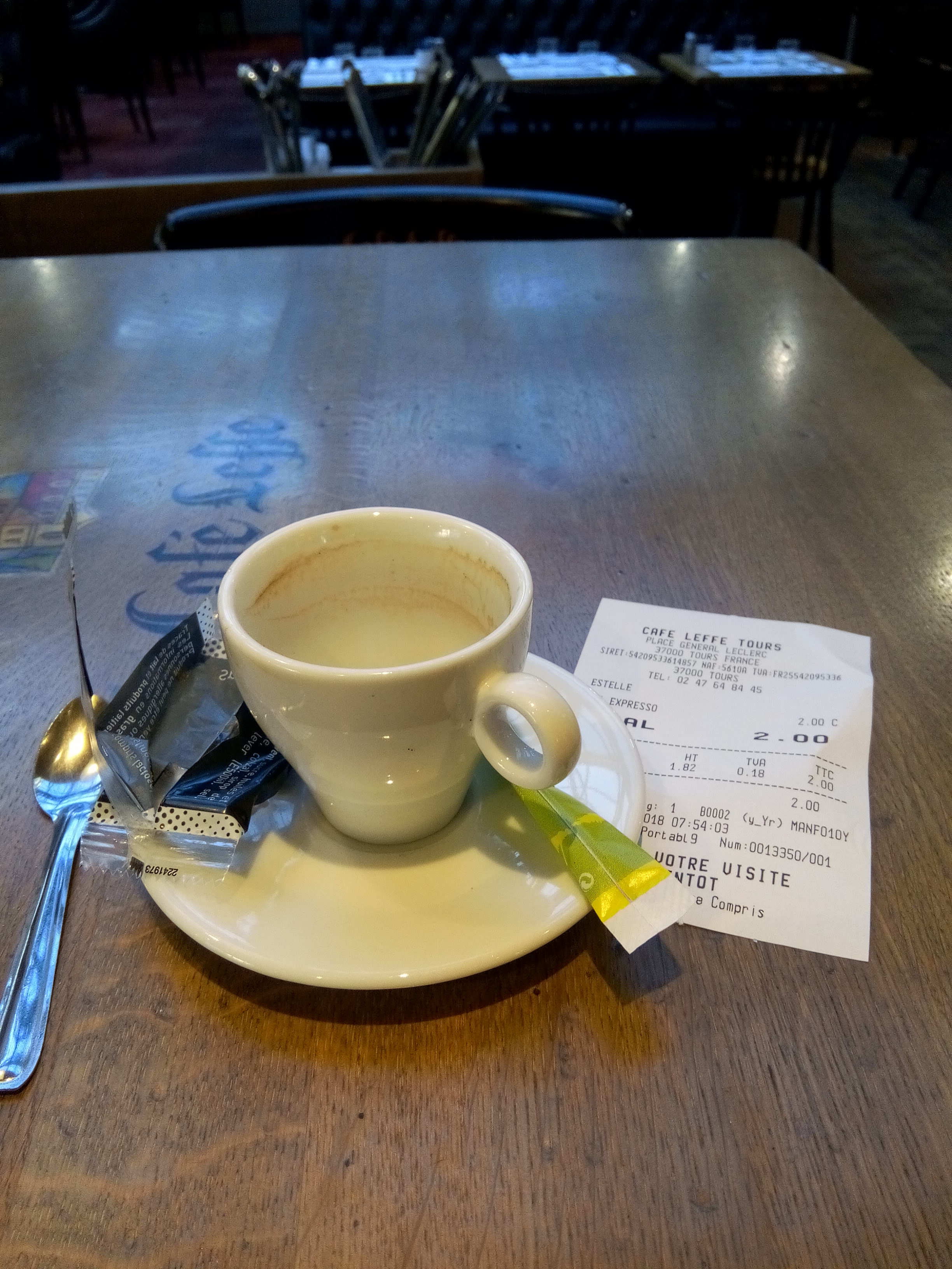 Flâner en terrasse pour observer les toureangeaux , j'adore ! Quelle ville et quel endroit antologique. Moi je savoure ce café ultra bien placé, avec des serveurs surbookes et efficaces.