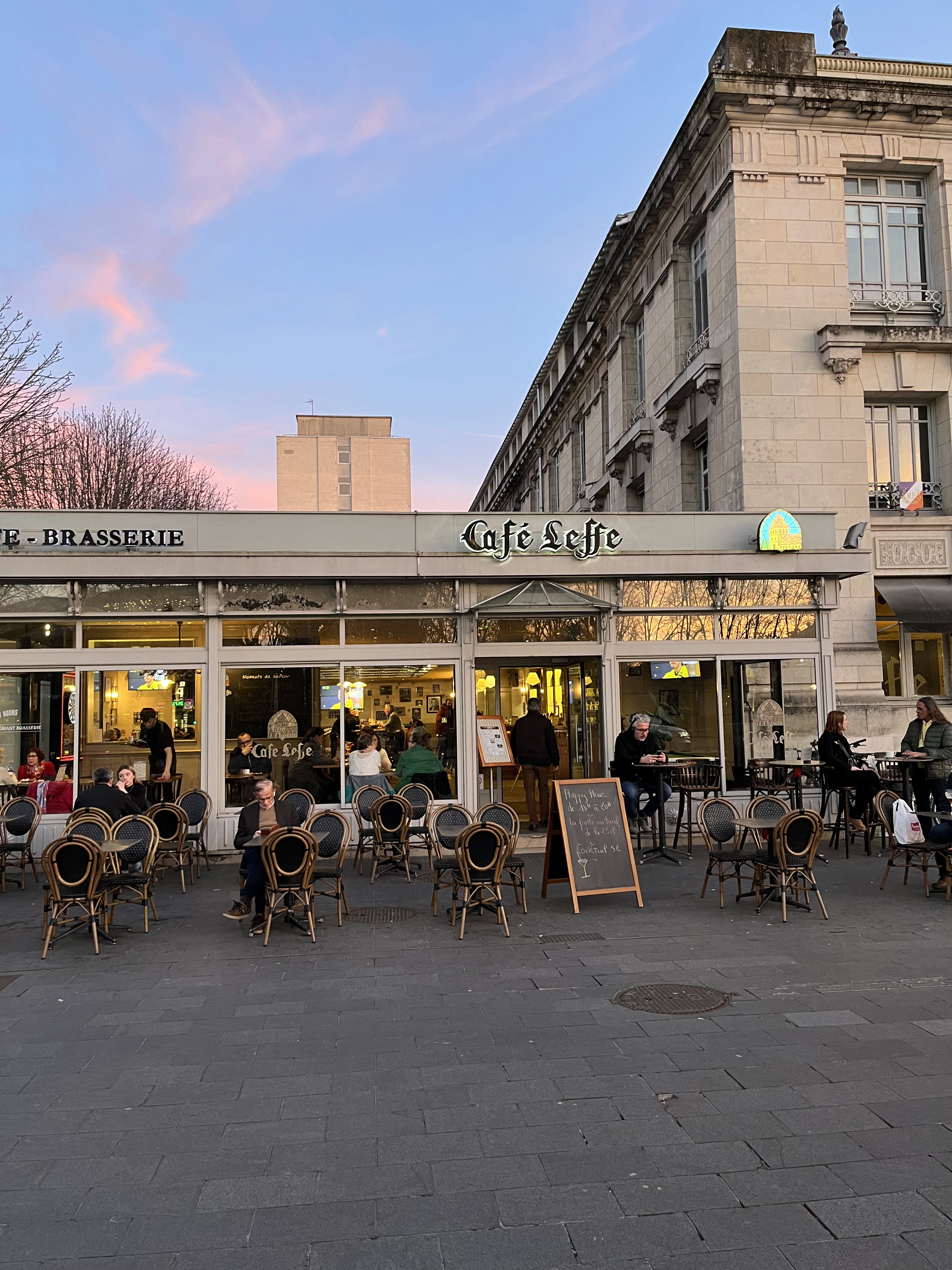 Le café LEFFE est adossé à la gare de Tours ce qui le destine à l'accueil des voyageurs du réseau ferroviaire (sncf) et du réseau d'autocars ( Rémy, fil vert). Un service est assuré en temps normal pour le déjeuner du midi ou pour tous encas le reste de la journée. Il m'arrive de temps en temps de venir prendre un café sur la pause méridienne ou une boisson plus rafraîchissante les soirs d'été.