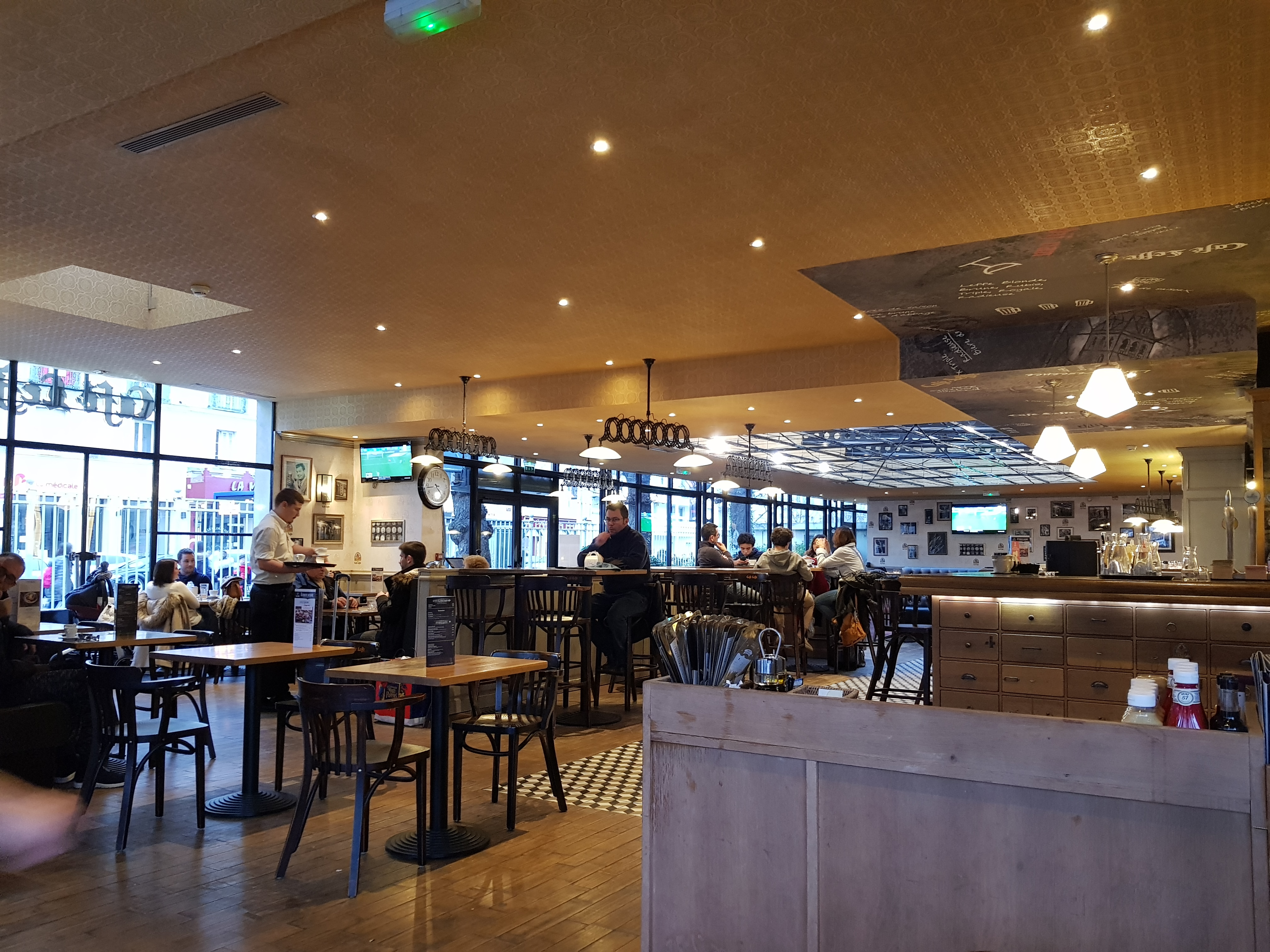 Le bar est suffisamment confortable et grand pour travailler ou faire une pause en attendant son train. Serveur efficace et souriant, je recommande. Peut être bruyant parfois