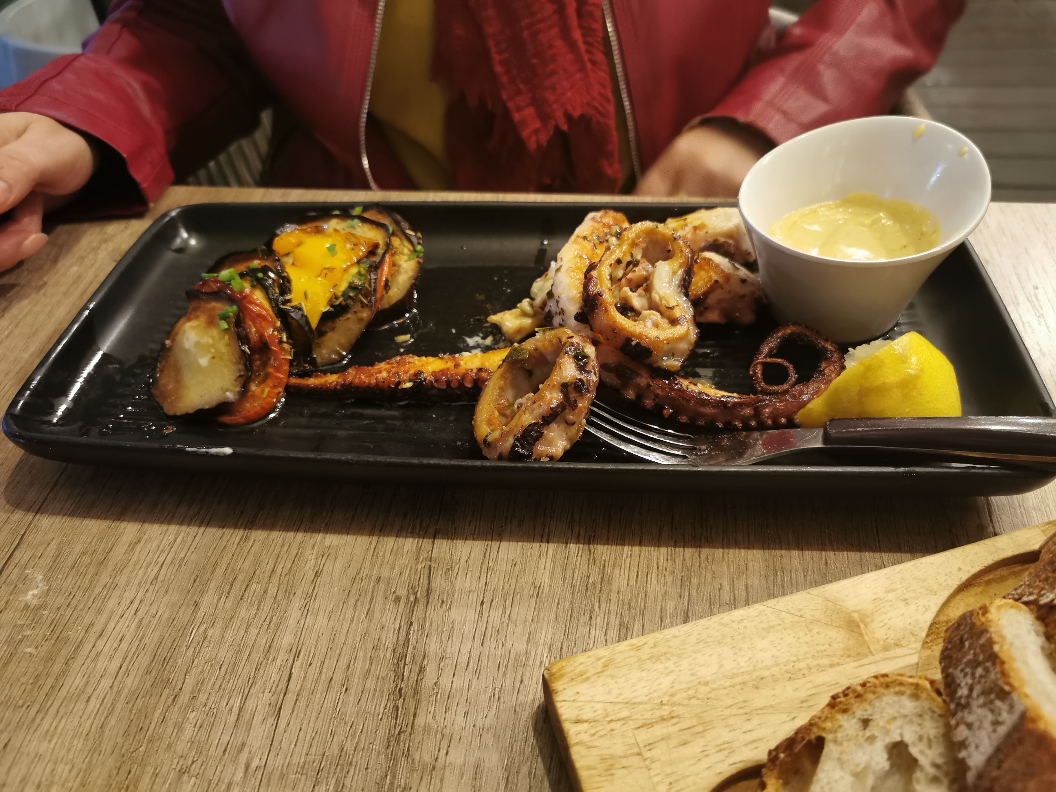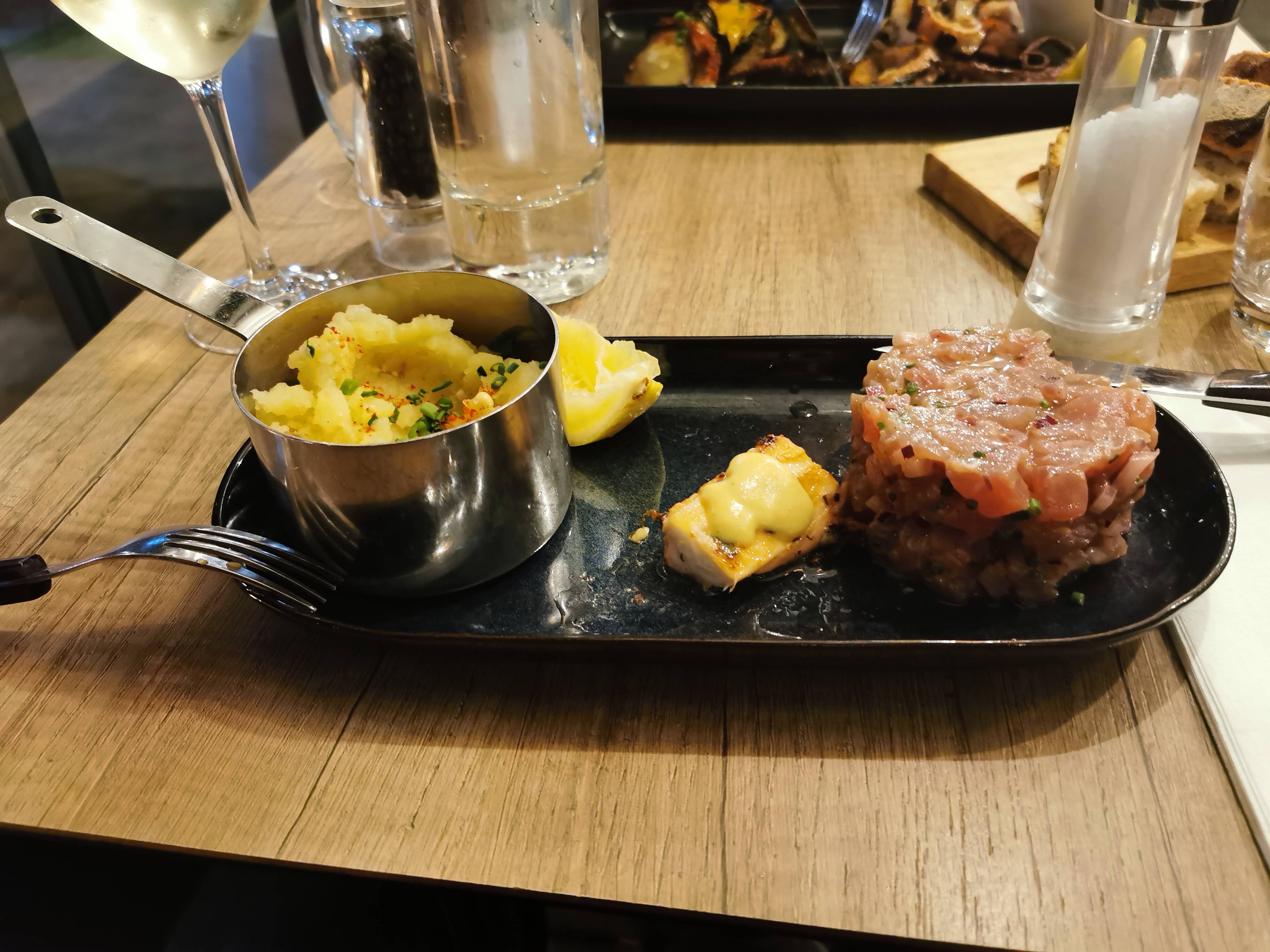 On a passé avec ma femme un merveilleux moment à midi ! Elle a prit le thon rouge à la plancha qu'elle a trouvé excellent, et pour ma part le poulpe à la plancha qui lui aussi était délicieux ! Chapeaux spéciale au cookie cuit à la poêle qui est vraiment extraordinaire ! La dame qui nous a servie était très accueillante et souriante ! Les plats sont arrivés assez rapidement Vraiment rien à redire, une très bonne adresse Je recommande vivement cette endroit !