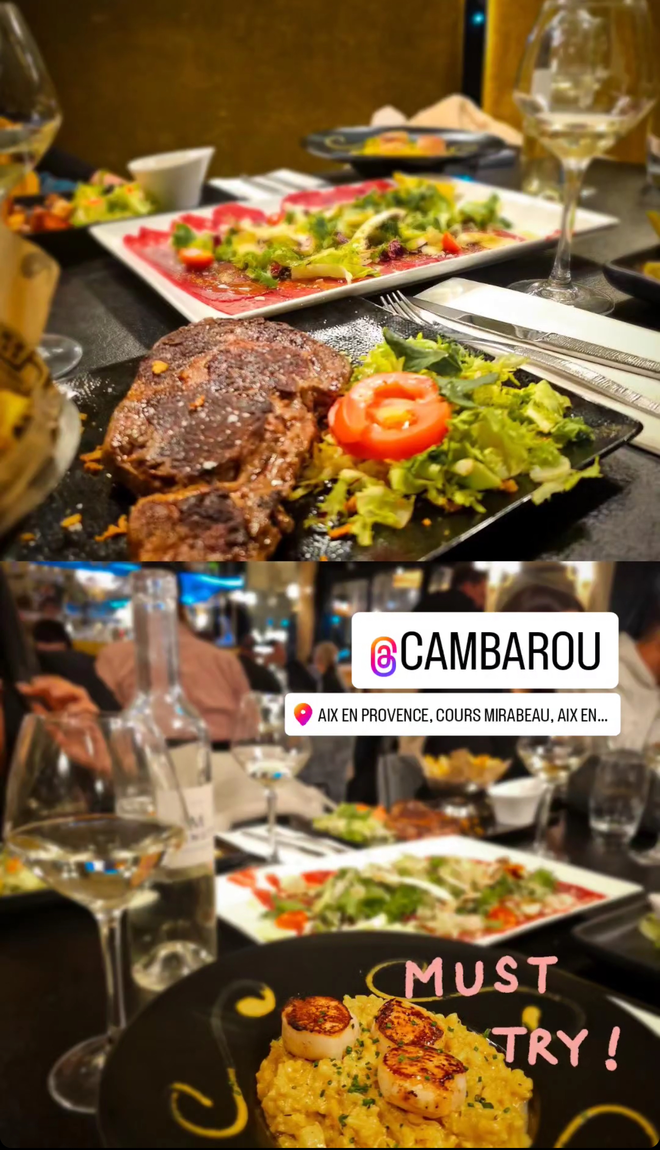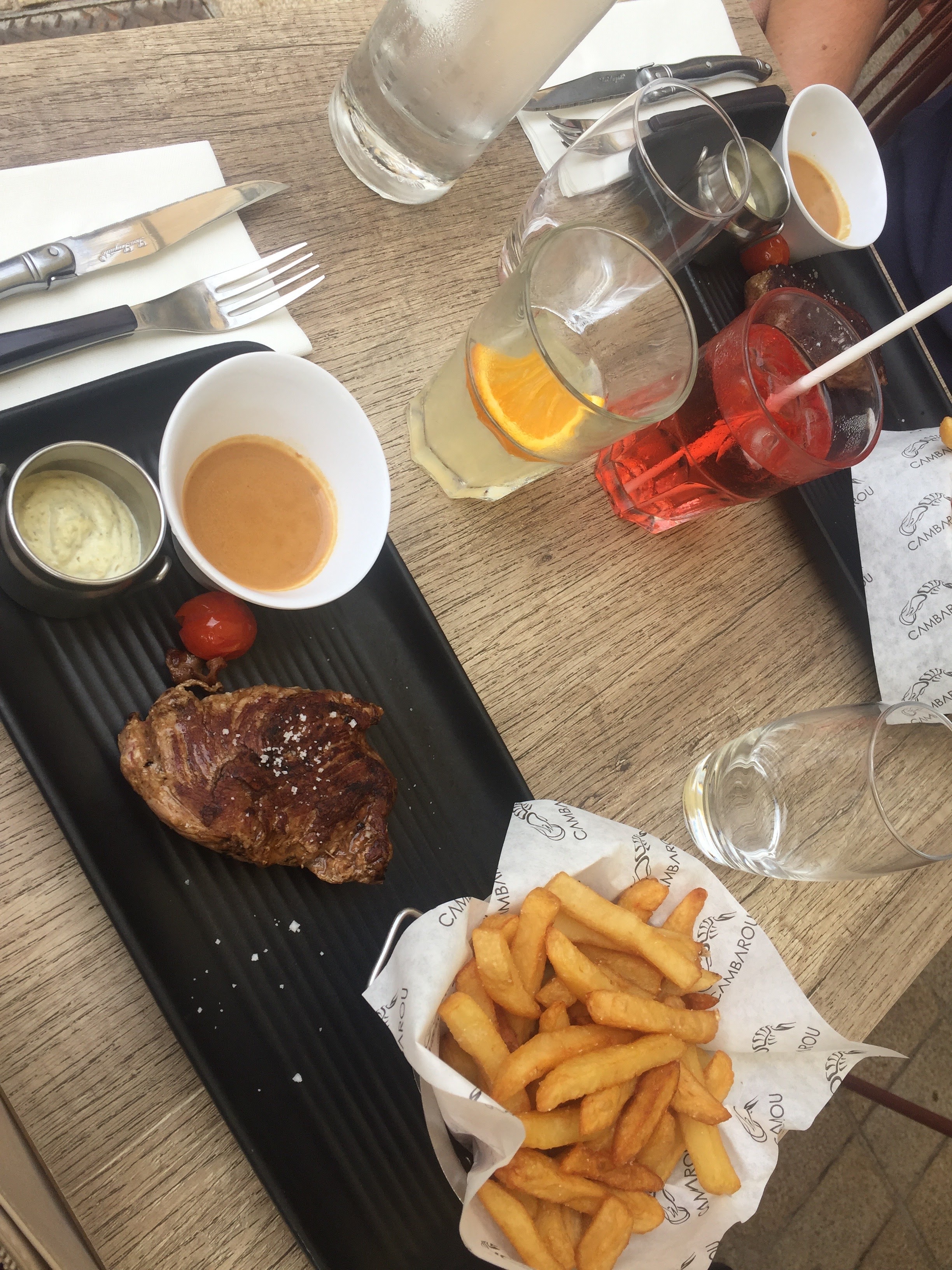 Le cambarou est un très bon restaurant sur le cours Mirabeau. Tout d’abord l’intérieur est magnifique (hauteur sous plafond impressionnante, peinture, grands miroirs) et la nourriture est bonne. J’y suis allée deux fois : une fois j’ai pris un risotto aux crevettes qui était excellent (20€) et la deuxième fois le baby back ribs (26€) qui était également bon mais un peu déçue que ce soit servi avec des frites. Je recommande tout de même ce restaurant.