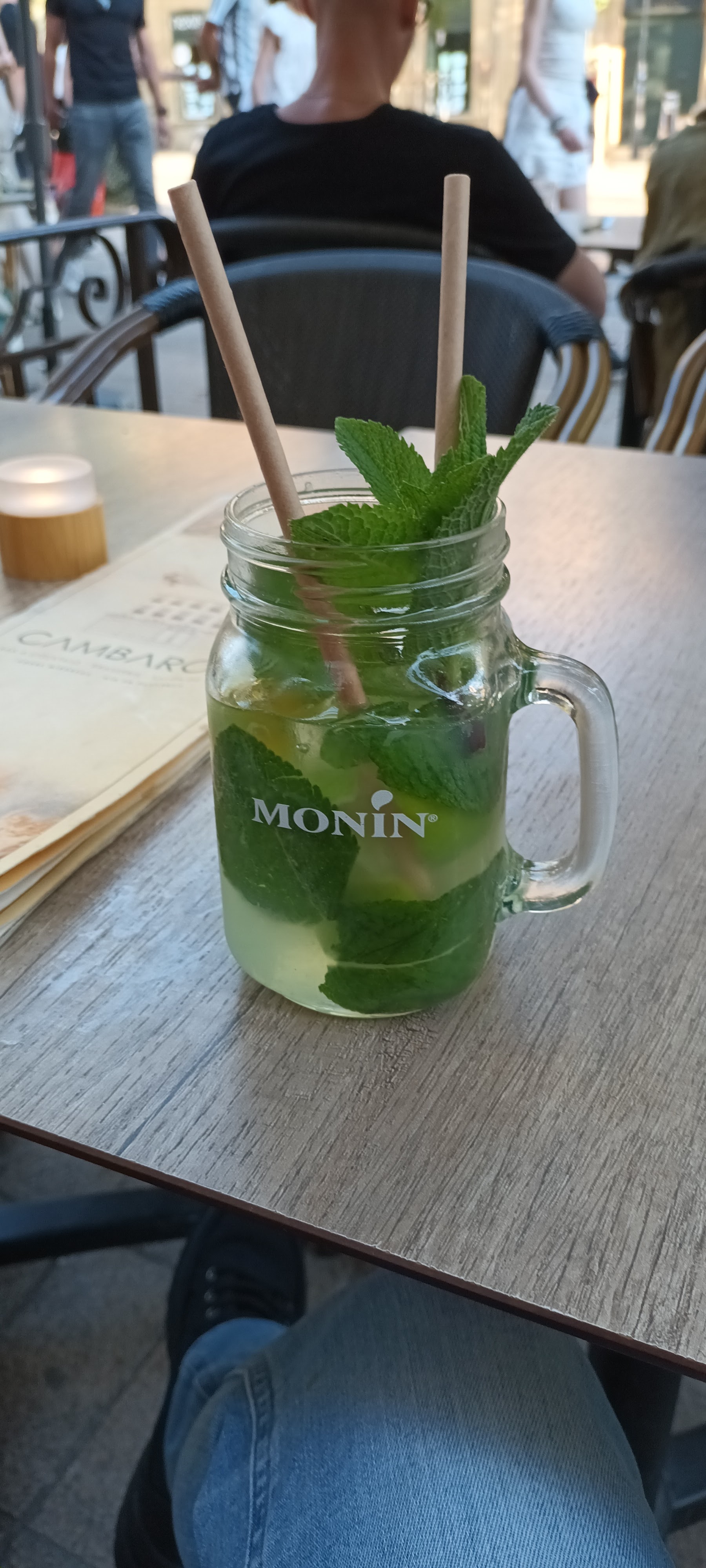 Des mouches partout et des tables qui sont sales ce lundi 3 octobre.. Quel dommage... Un thé glacé très simple et sommaire, on aurait aimé voir un litchi flotter dans le verre, vu le prix.. On aura au moins eu le soleil!