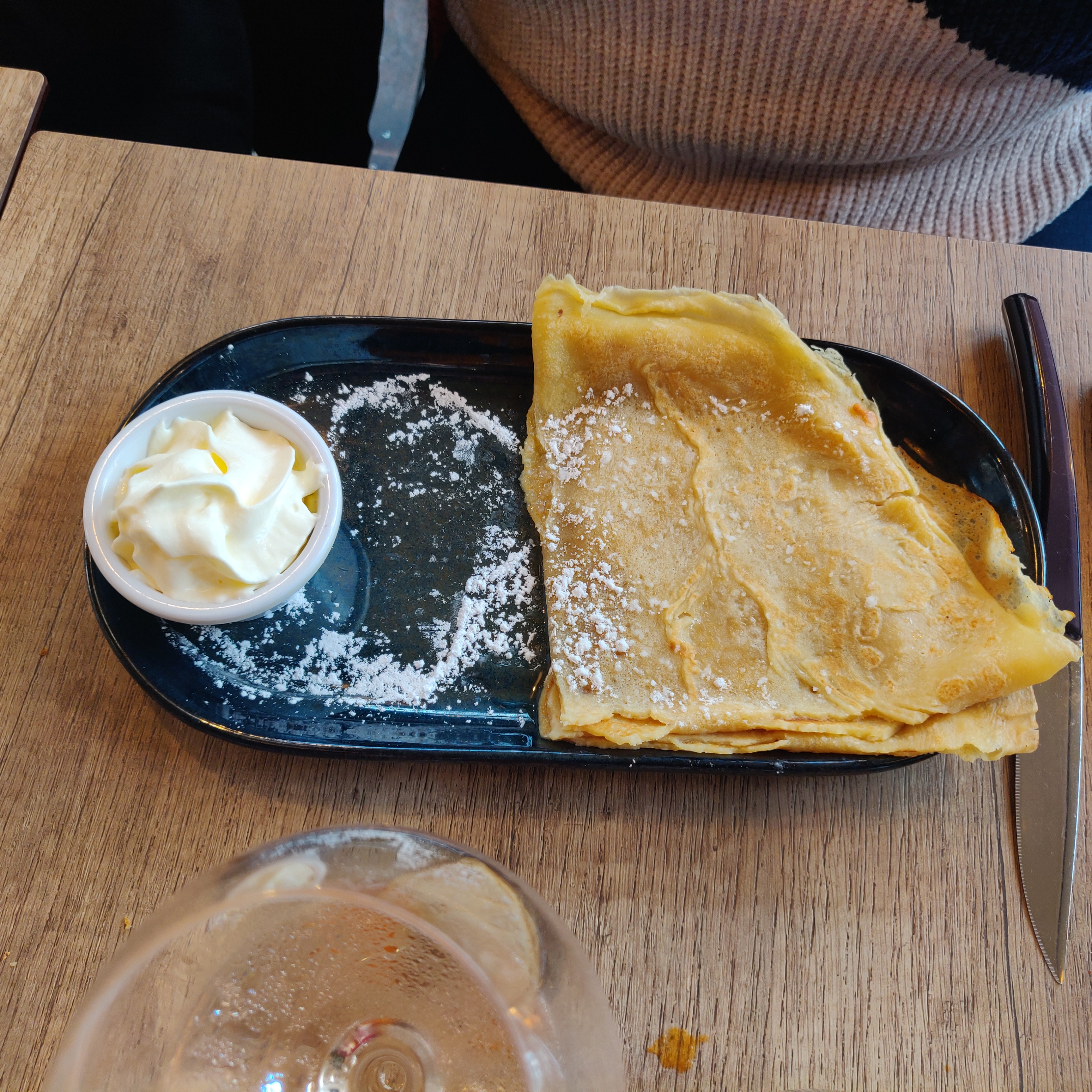 Couteaux très sale la serveuse nous a servi des crêpes chantilly ses cheveux trempés dedans une horreur et le serveur qui nous a encaissé une porte de bois même pas un sourire éviter se bar