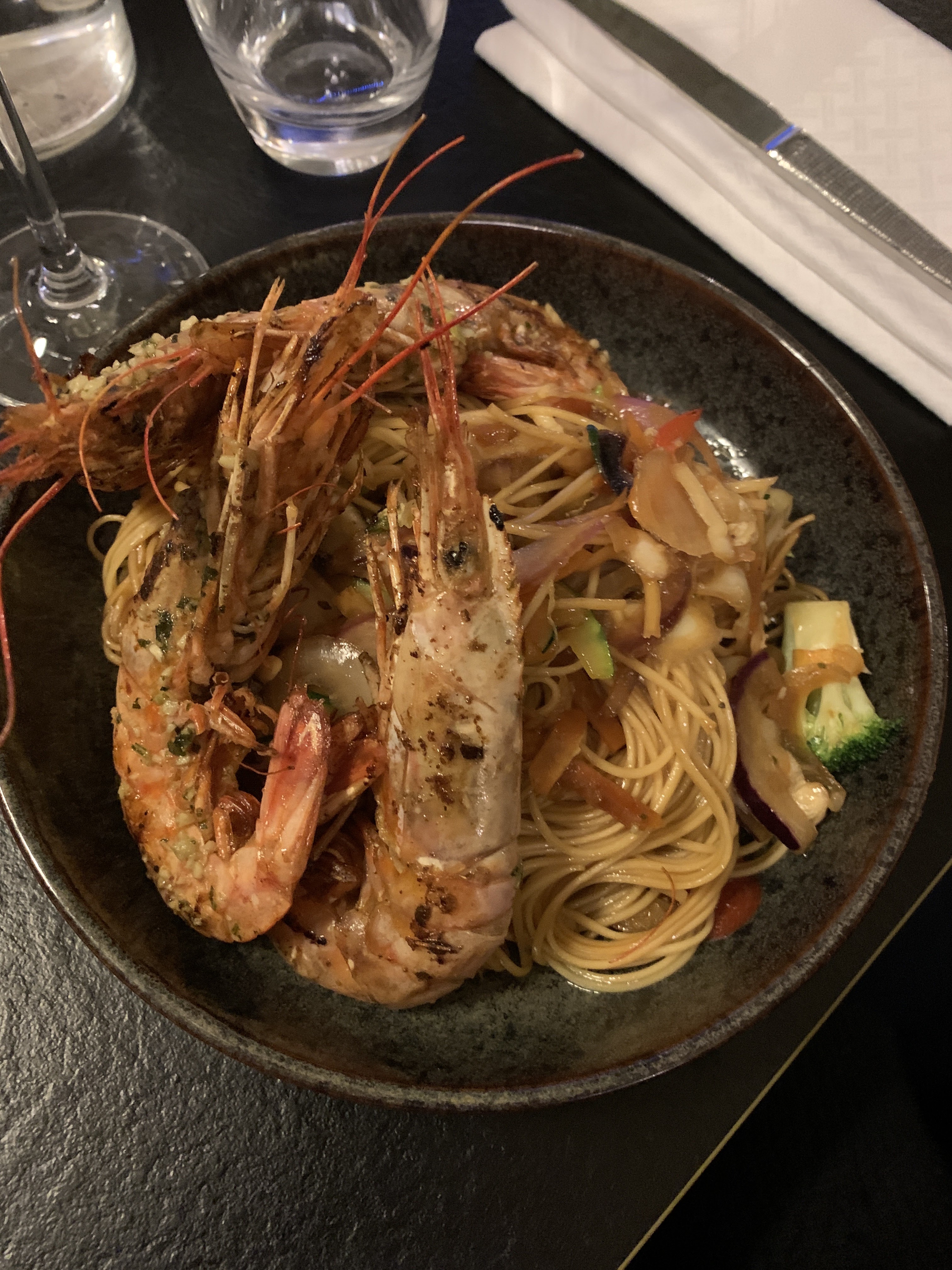 Très cher ... Risotto aux crevettes Très moyen, riz légèrement trop cuit et peu savoureux. Crevettes très très cuites appartement oubliées sur le feu que j'ai demandé de me changer (visible à l'œil nu)...ce qui a été fait sans problème. Café gourmand assez moyen petits desserts sans grand intérêt gustatif. Au final très cher, 34 euros pour une qualité de cuisine assez médiocre que le service efficace et agréable n'arrive pas à compenser..