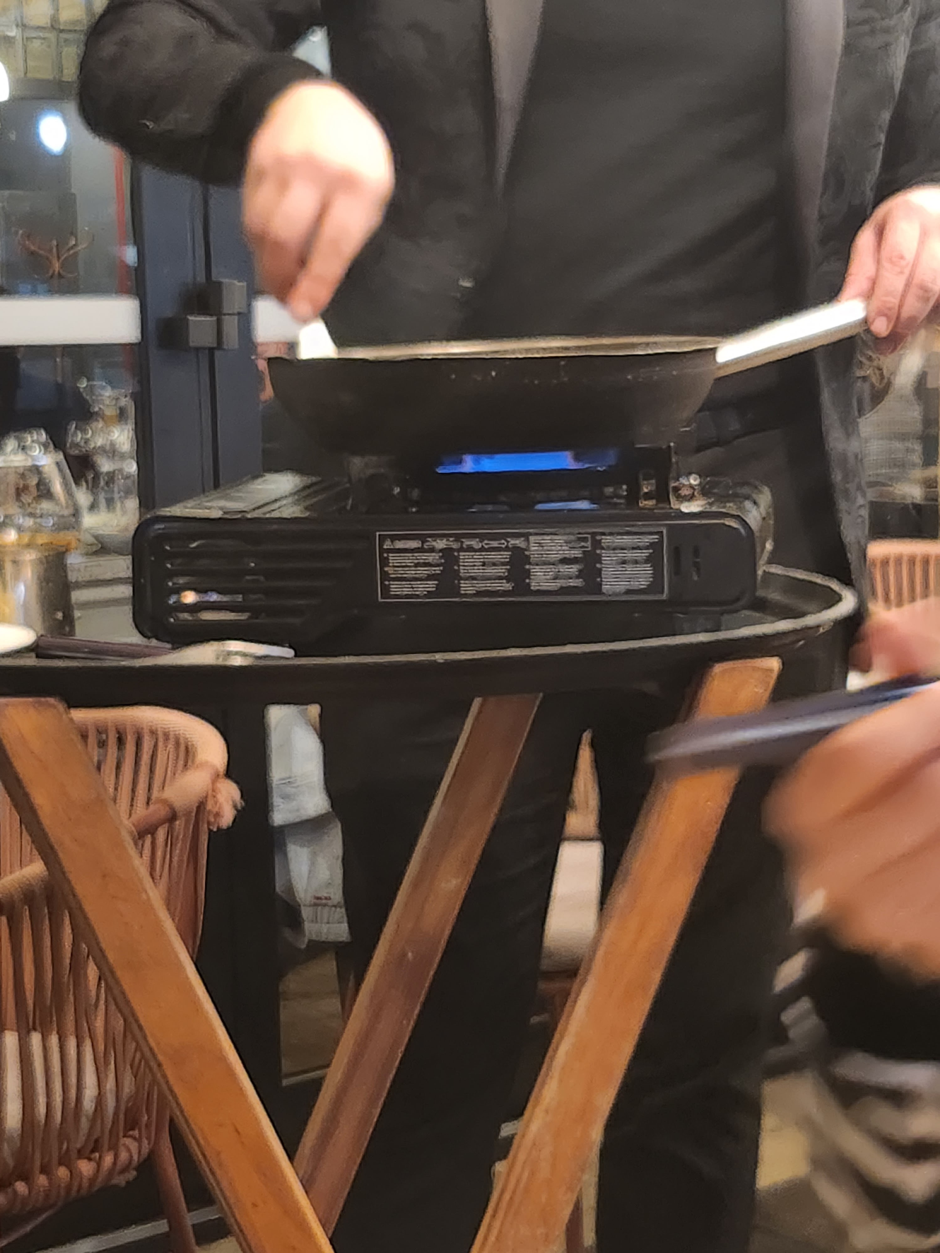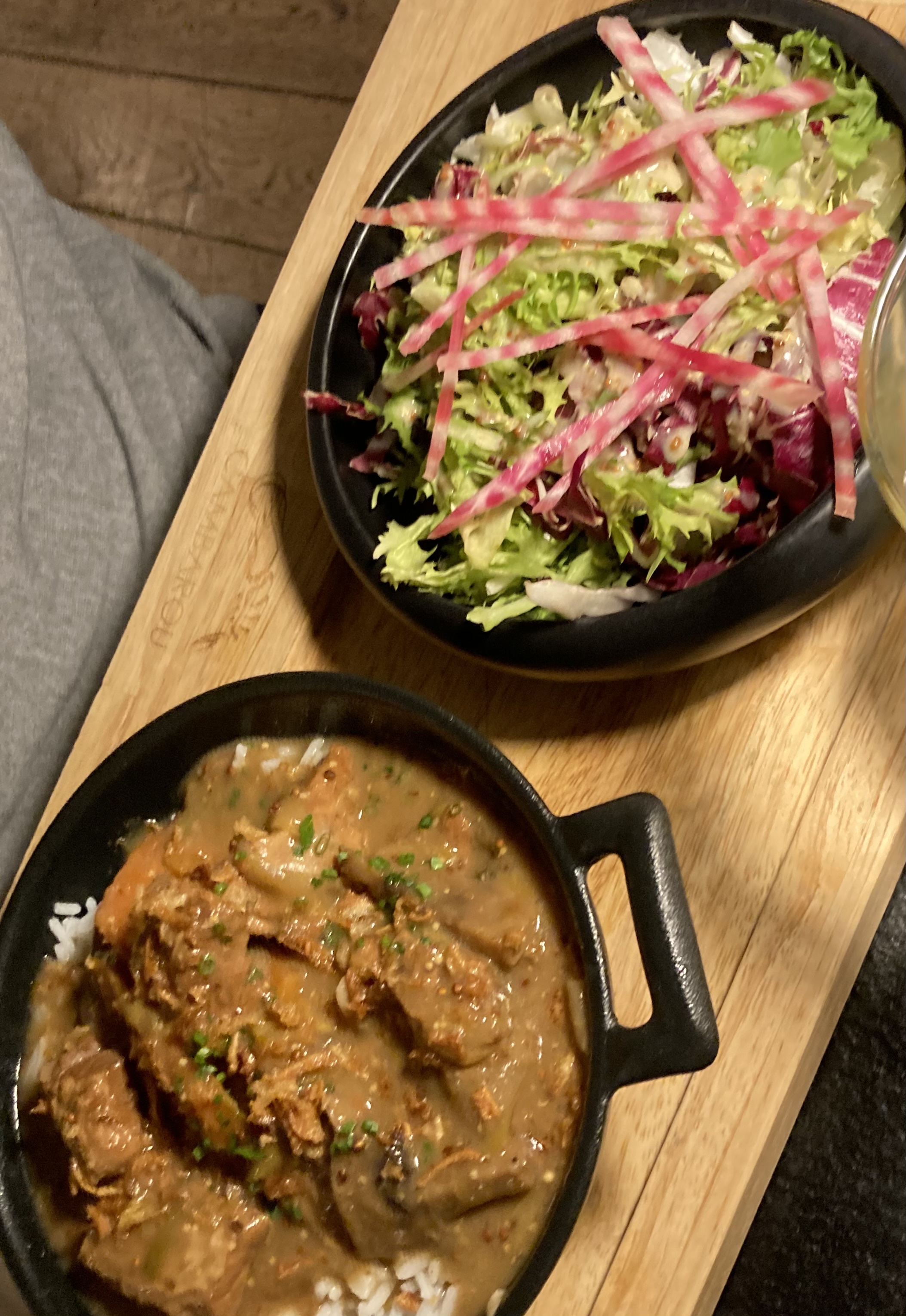 Personnel accueillant et respectueux qui nous a mis à l’aise. Desserts assez chers (12€ pour des profiteroles). Dommage qu’il n’existe pas de demi-portion (ça a l’air prévu pour 2). À mon goût, la nourriture était correcte. Pain de campagne absolument excellent. En tout +60€ pour 2 Photos : blanquette de veau & wok poulet (carottes bien croquantes oui, dommage un chouilla plus cuites aurait été meilleur)