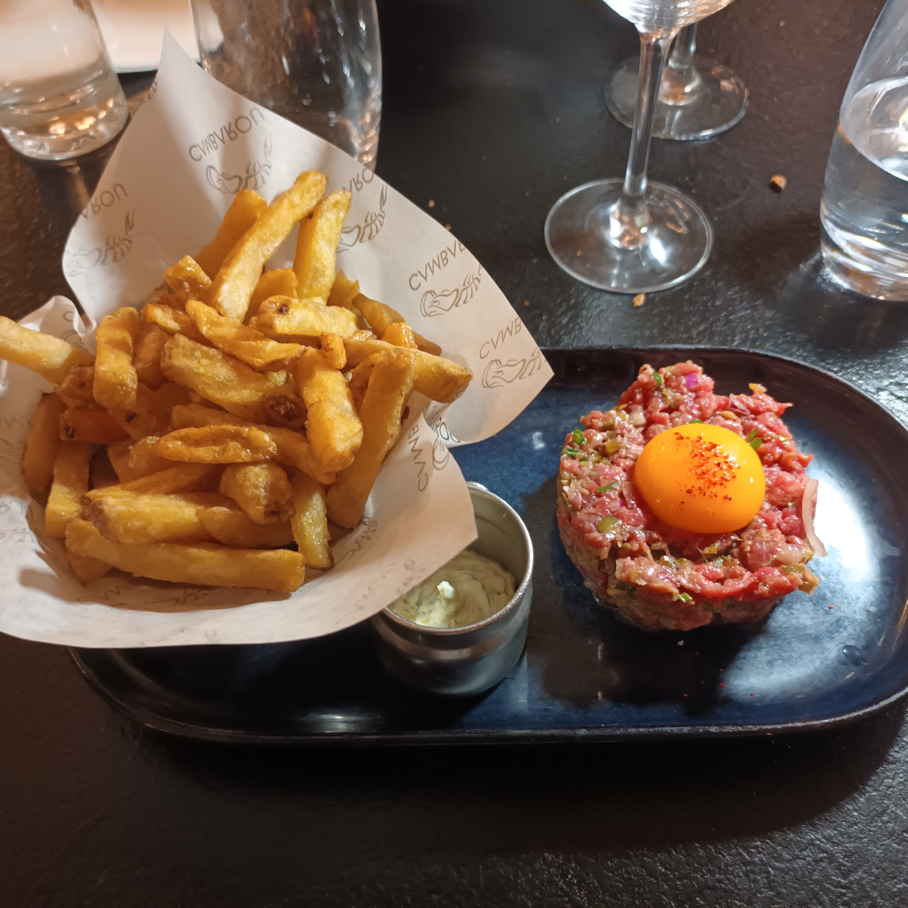 Ns avons beaucoup aimé. Tartare de bœuf traditionnelle bien préparée, les frites bien croustillantes. Assiette soignée Le café gourmand est sympa avec son churros garni de chocolat crème brûlé et panacotta et madeleine. Personnel agréable et qui prend soin de nous. J y retournerais et je recommande