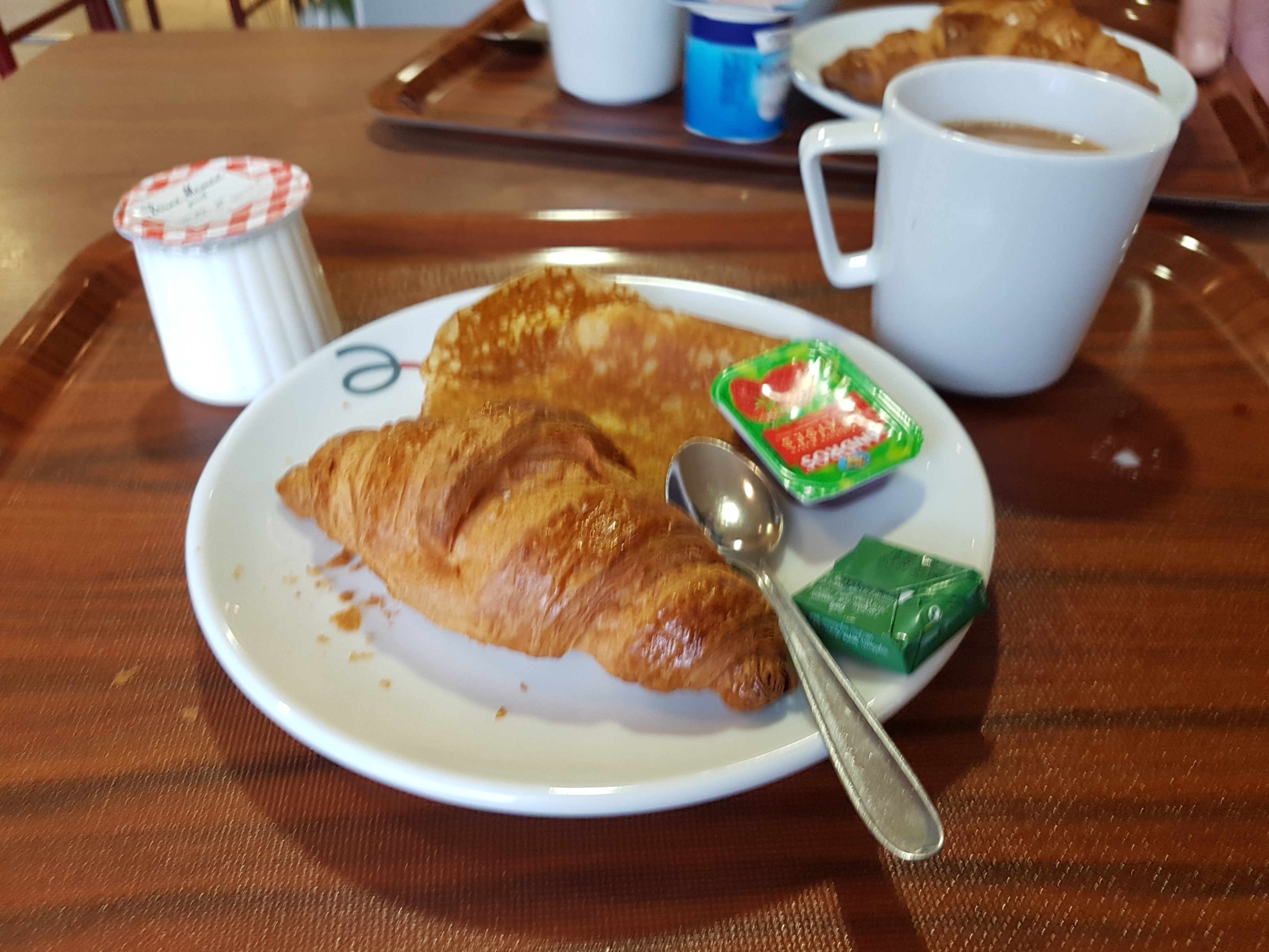Hôtel vieillot chambres petites plateau d'accueil Mesquin 1 café soluble pour 2. Petit déjeuner normal mais café cafetière d'un autre temps....