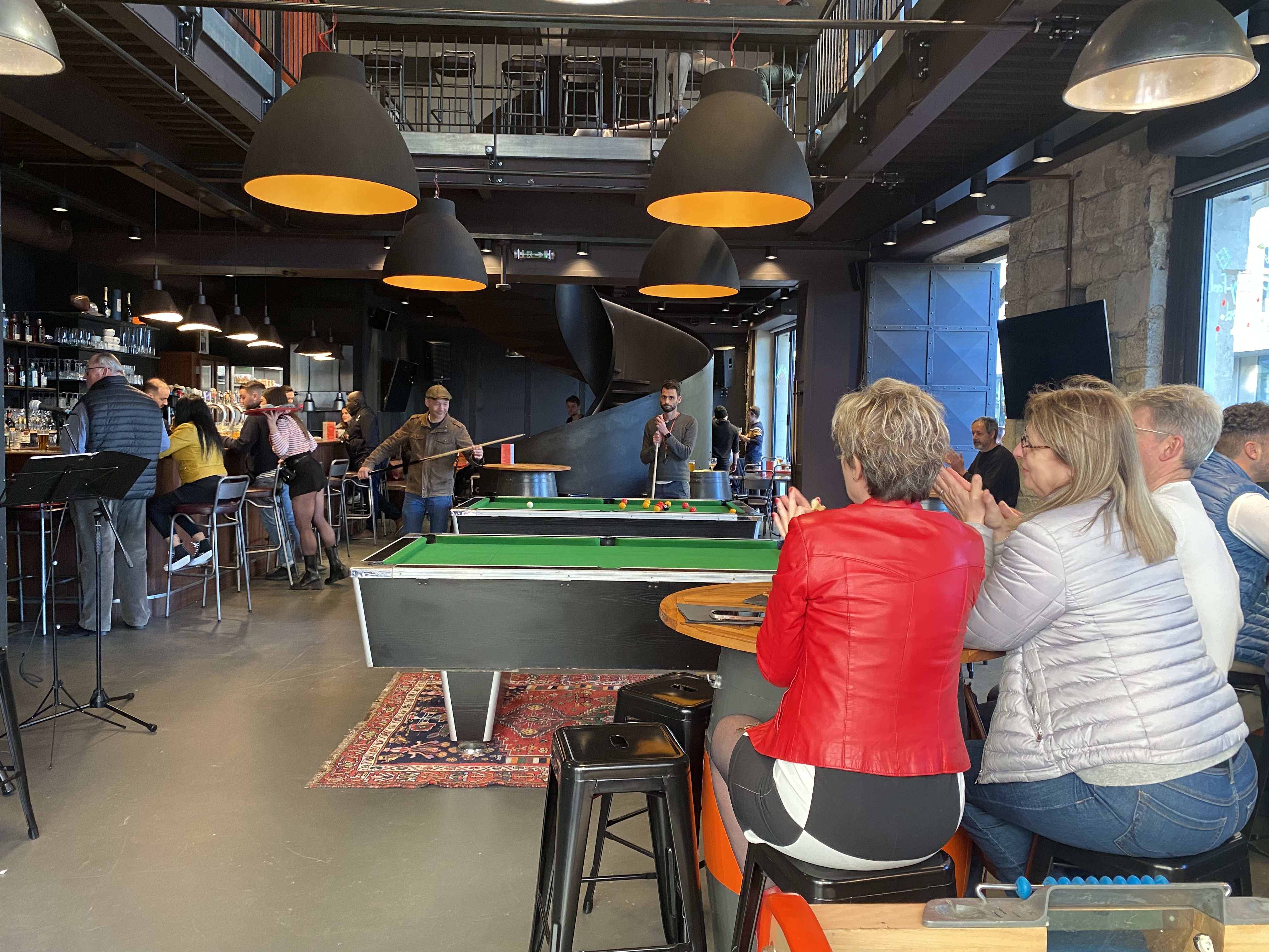 Bonne bière, billard, personnel sympa. Je recommande ! (Ps, désolé pour le verre cassé)