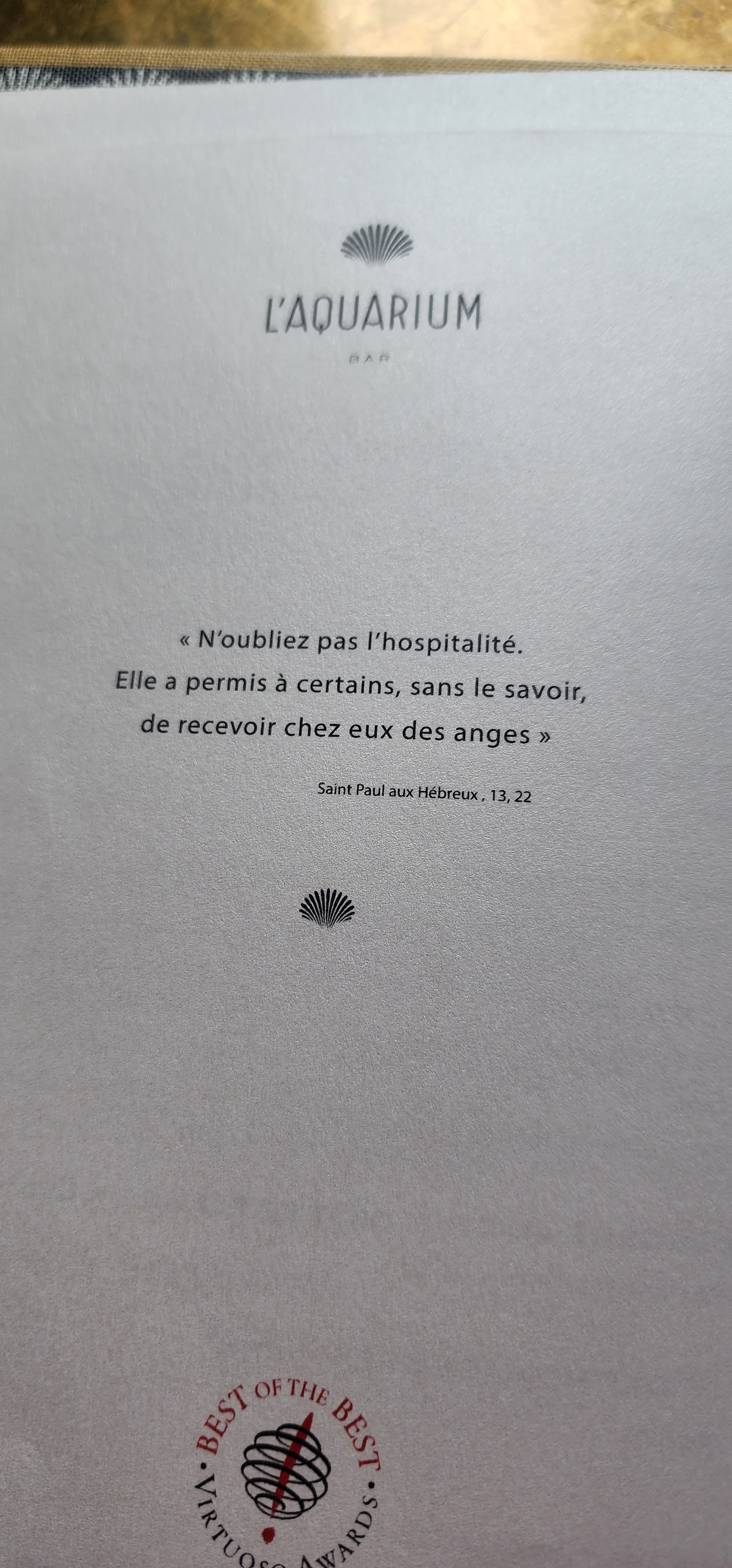 les cocktails du bar l'aquarium sont absolument incroyables. Beaucoup d'imagination dans la création et dans le service et en plus le goût est là surprenant et excellent. Mille fois bravo.