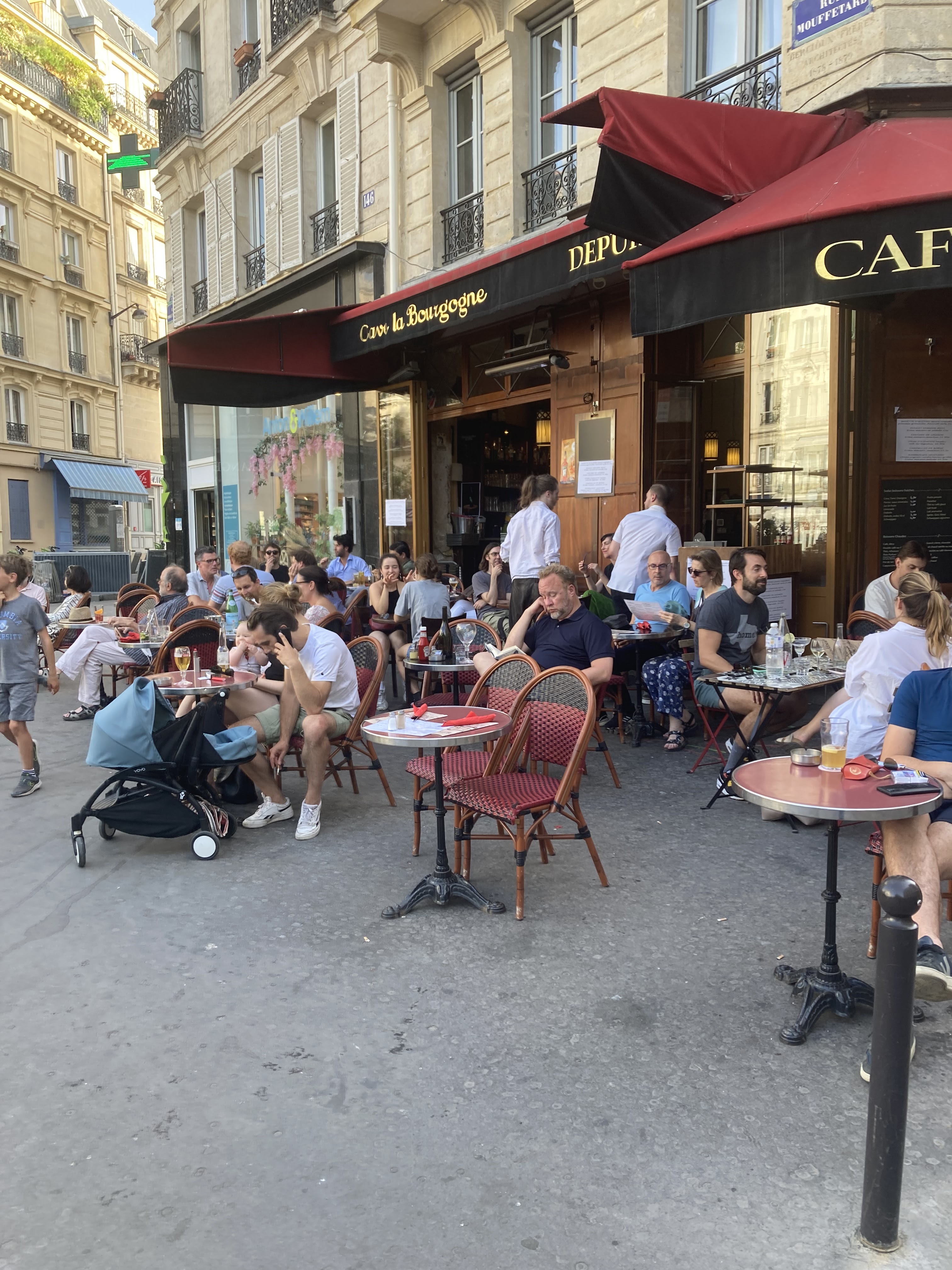 Café de quartier à l'ancienne ... J'aime cette ambiance typiquement parisienne. Très belle vu sur la place, l'église Saint Médard et le jardin attenant. Vous êtes également au pied de la rue Mouffetard ... Avec un large choix de restaurants et de boutiques ...