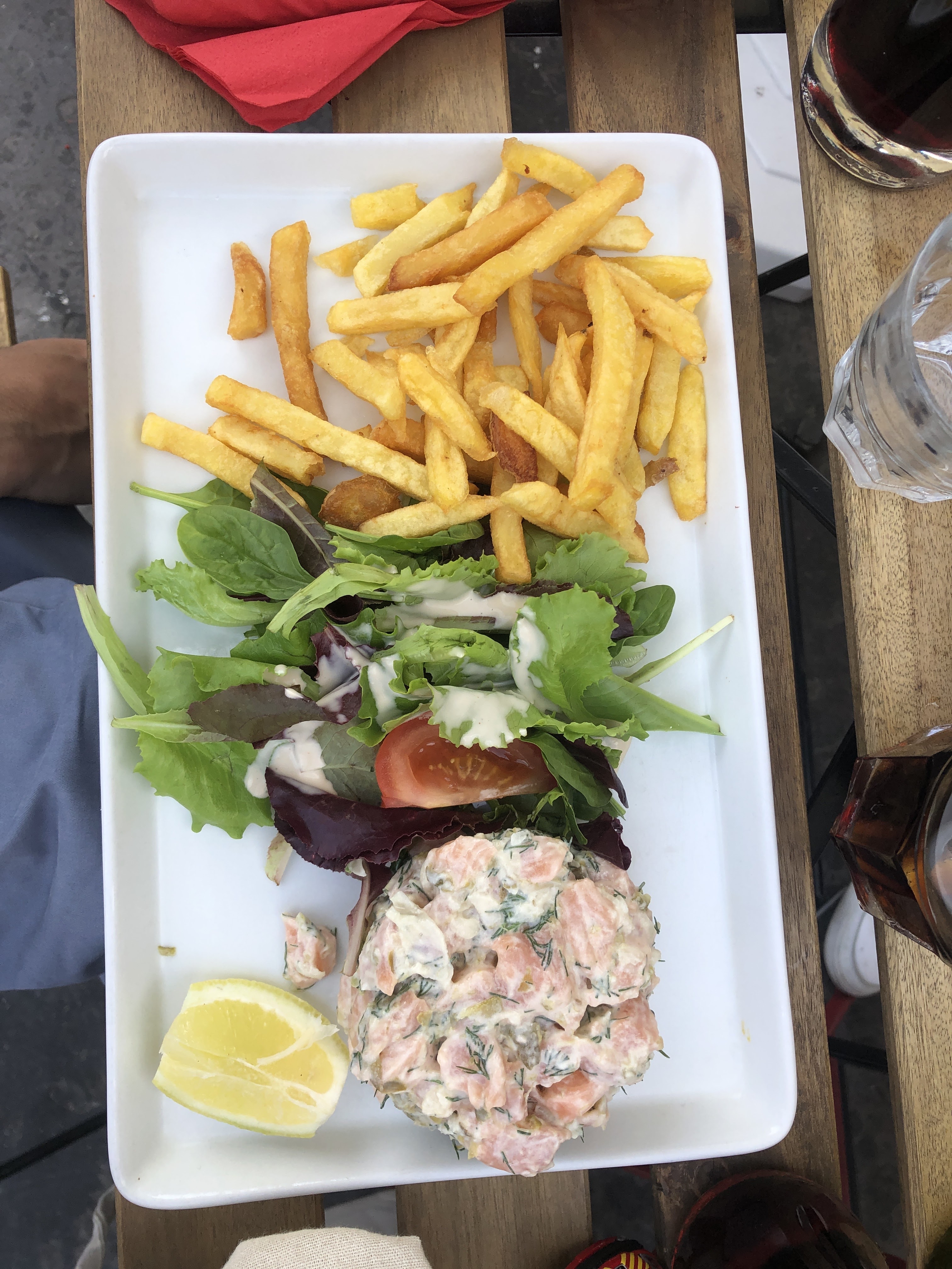 L'ambiance est bonne, le service correct sans plus. Problème dans la commande du coup nous n'avons pas mangé ensemble le plat principal. Les frites n'étaient pas assez cuites et la sauce est quelconque, c'est dommage car le lieu est agréable.