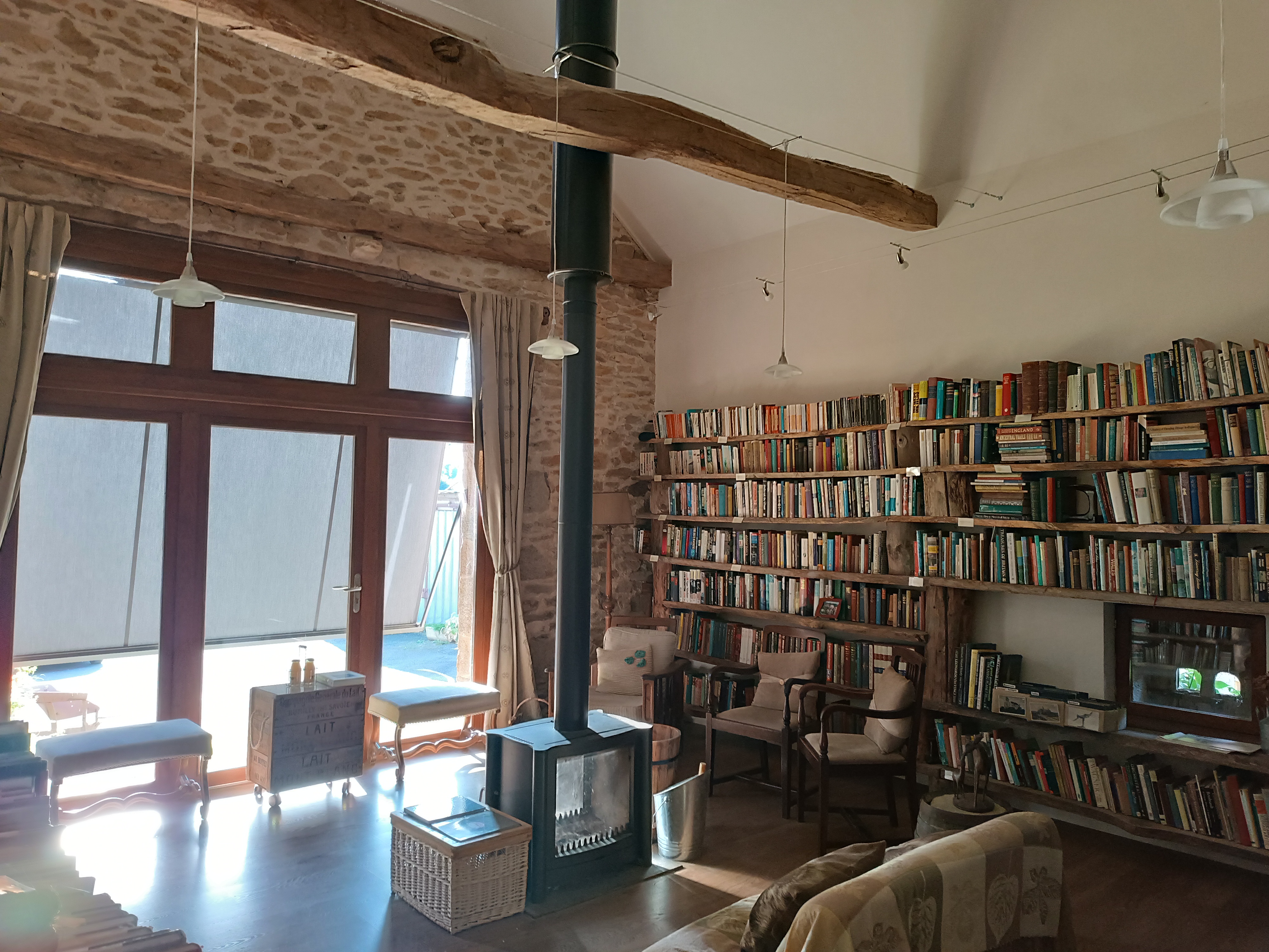 Le moulin a été joliment énové par ses propriétaires, et surtout, il profite d'un écrin de verdure et d'un ruisseau qui borde le jardin particulièrement charmant. L'espace bibliothèque avec son poêl est très agréable.