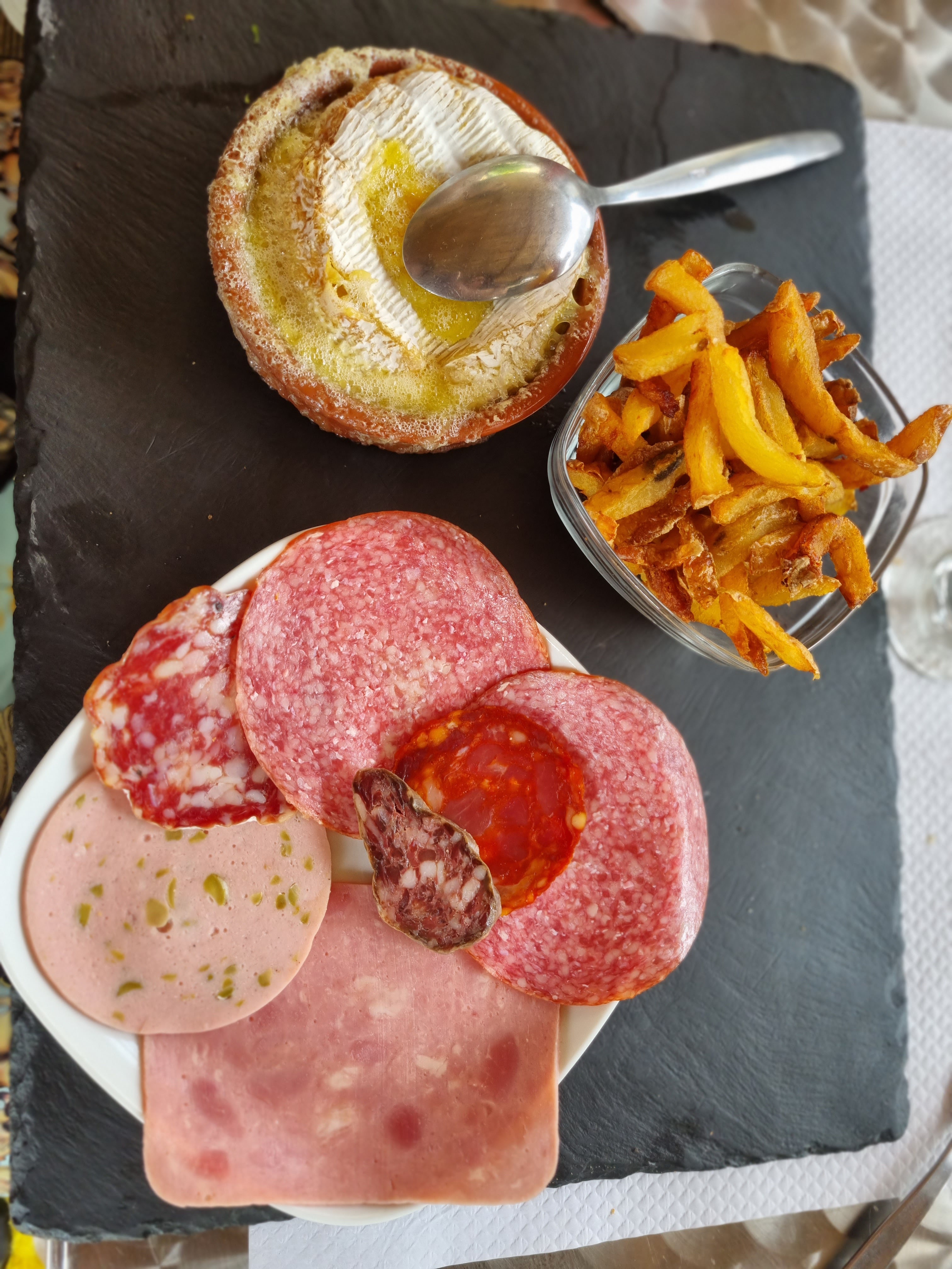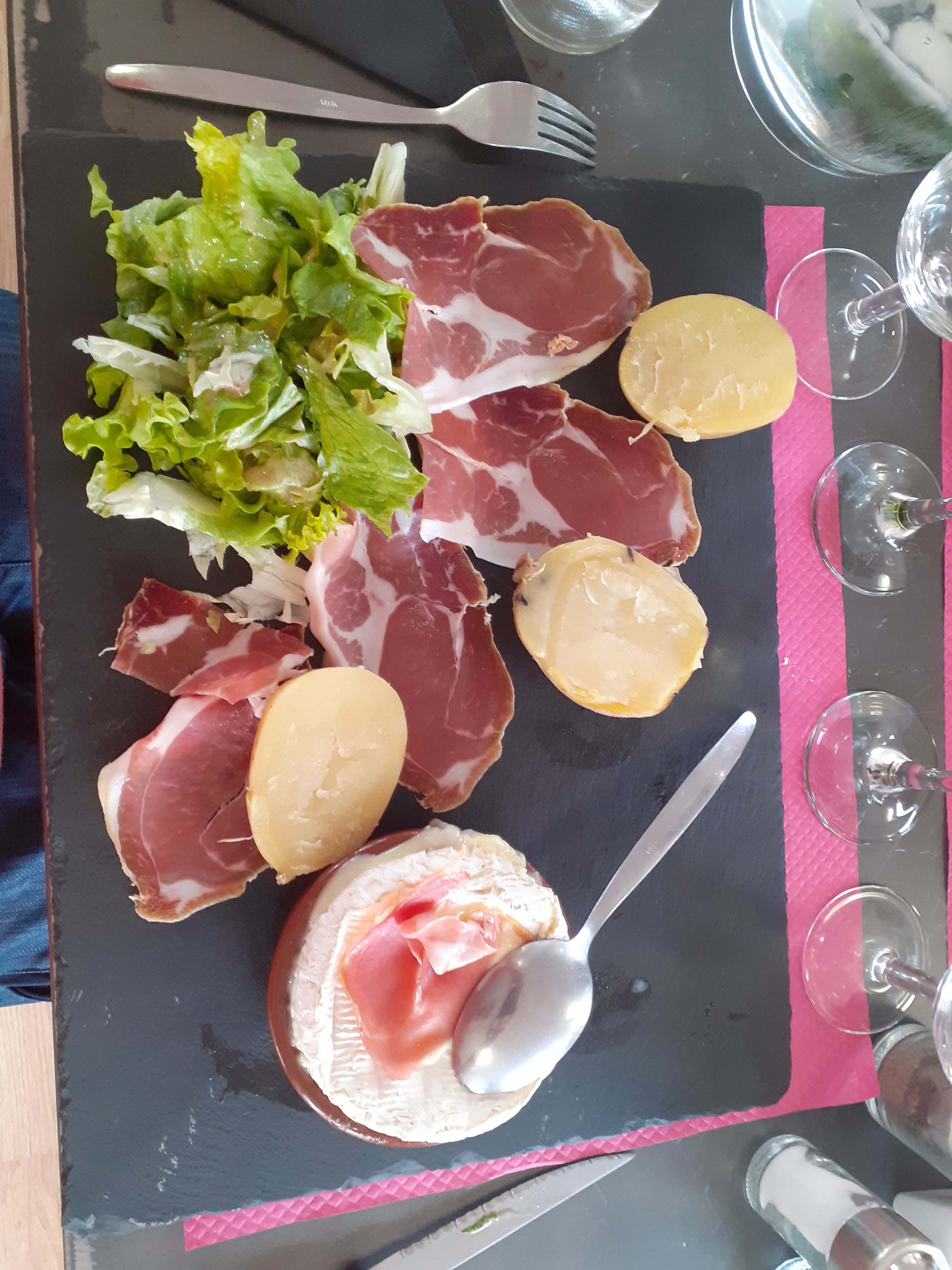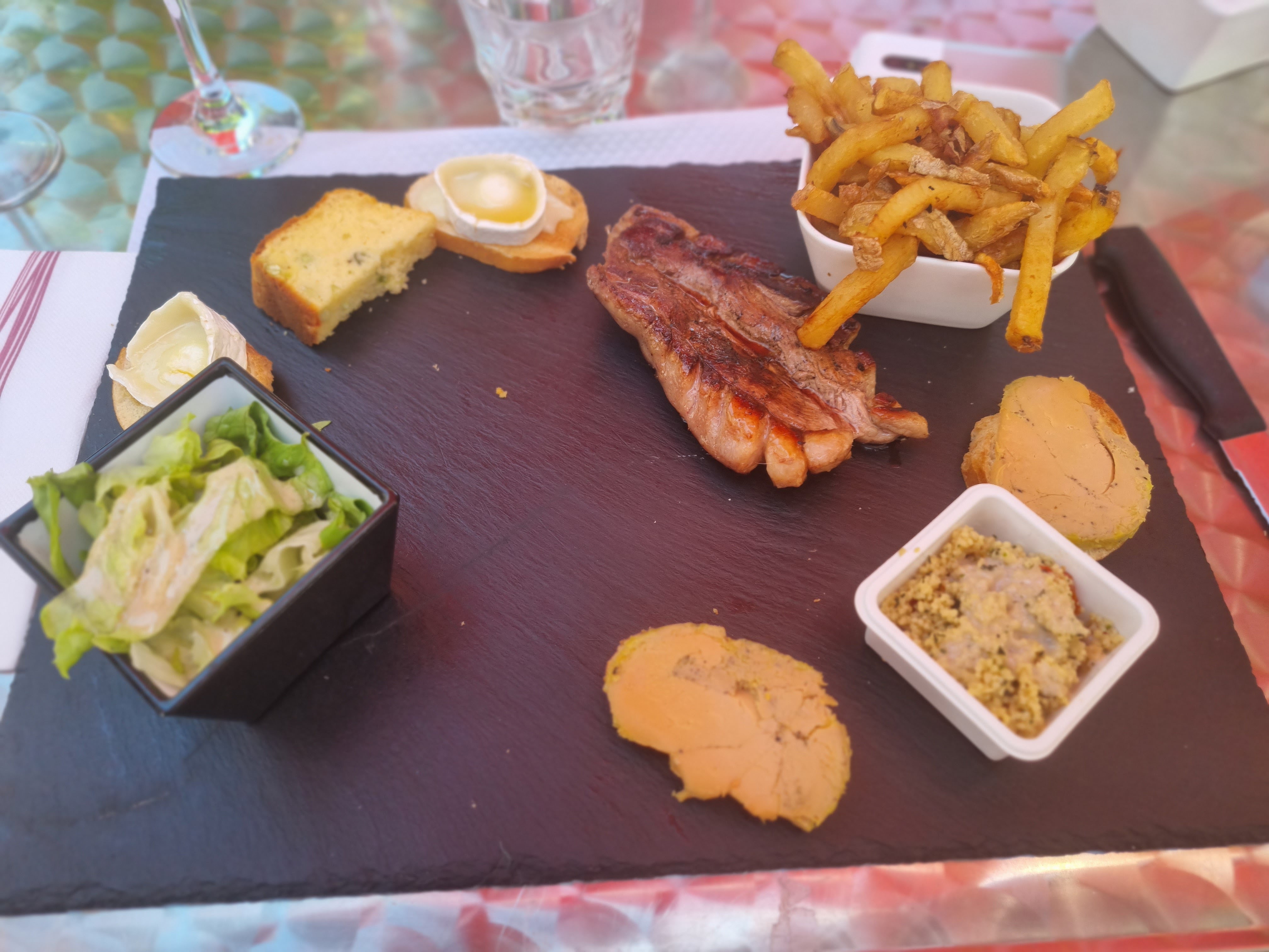 Ardoises composées originales et copieuses. Service: contact et sympa. Nous avons pris des verres de Cahors très bon. Sortez de l'autoroute pour manger de la vraie nourriture dans ce restau modeste, orginal et agréable.