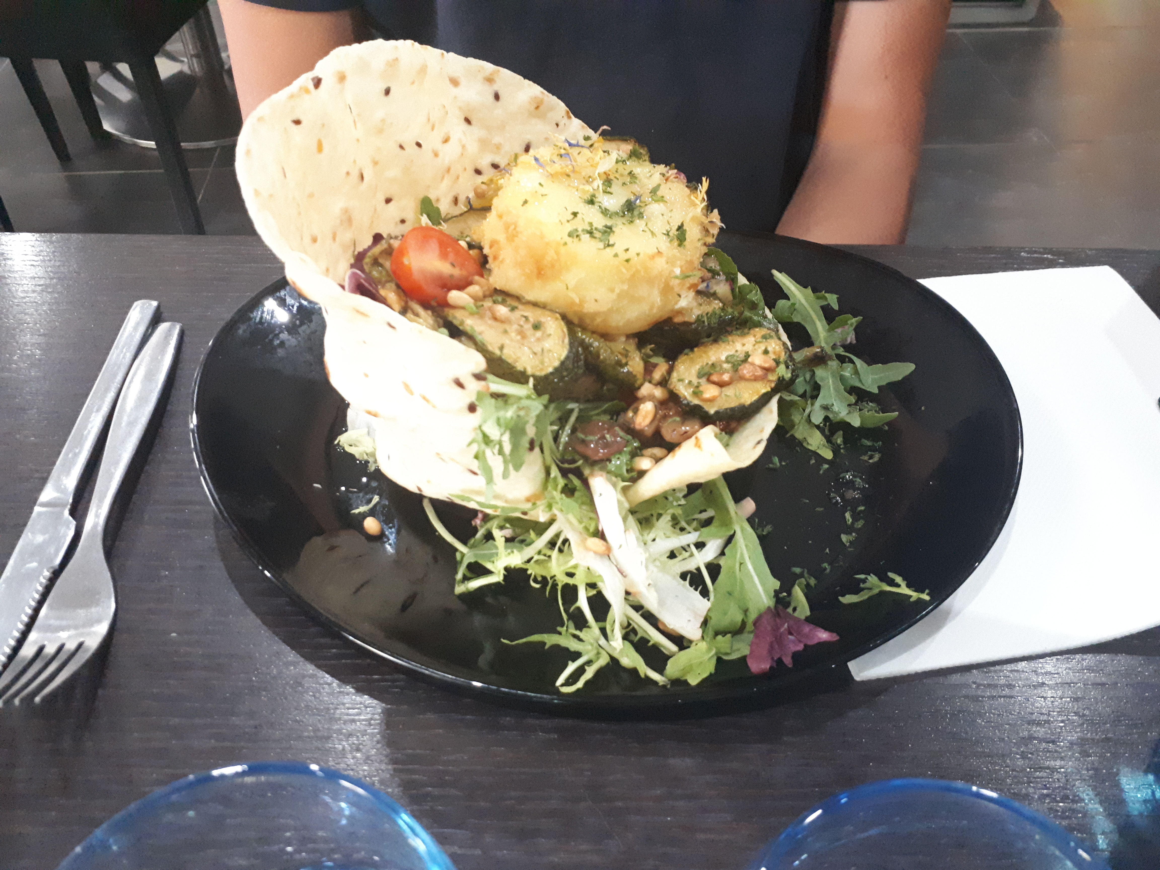 Arrivé là par dépit, hier, la carte numérique pourrait être alléchante, mais je ne la sentais pas. J'avais raison. 😒 Flan de courgette mangeable, avec une rondelle de chèvre piquante. Entrecôte insipide, cachée dans une sauce au poivre que je suppose industrielle. Accompagnée d'un flan de légumes indéfinissables, avec bien entendu un cœur de chèvre toujours piquant. Bref, pour une fois, je vous déconseille l'endroit.