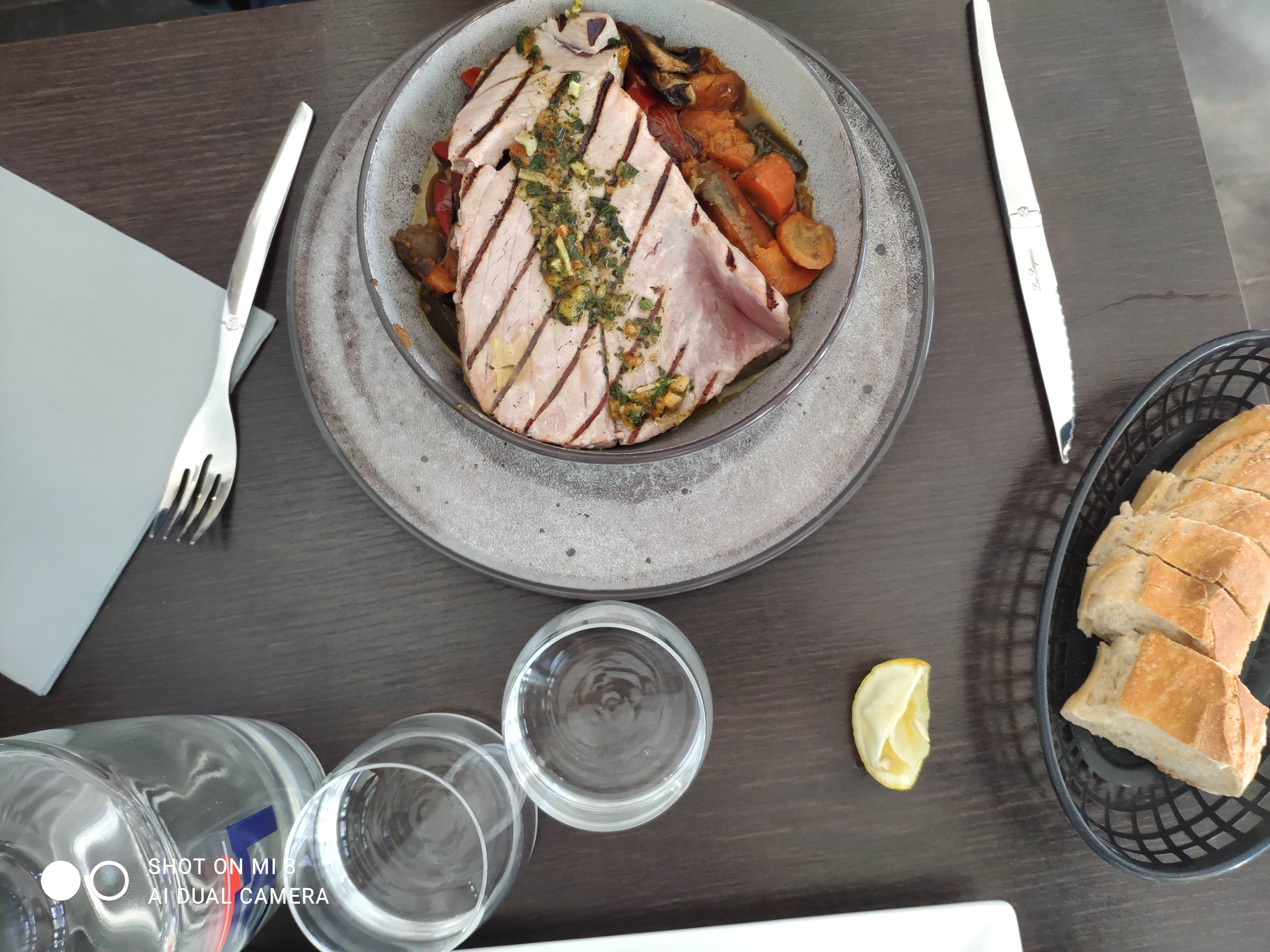 Excellent ! Le steak de thon et les légumes ! Cuisson et goût parfaits ! Et le service très sympathique, souriant, agréable et efficace !