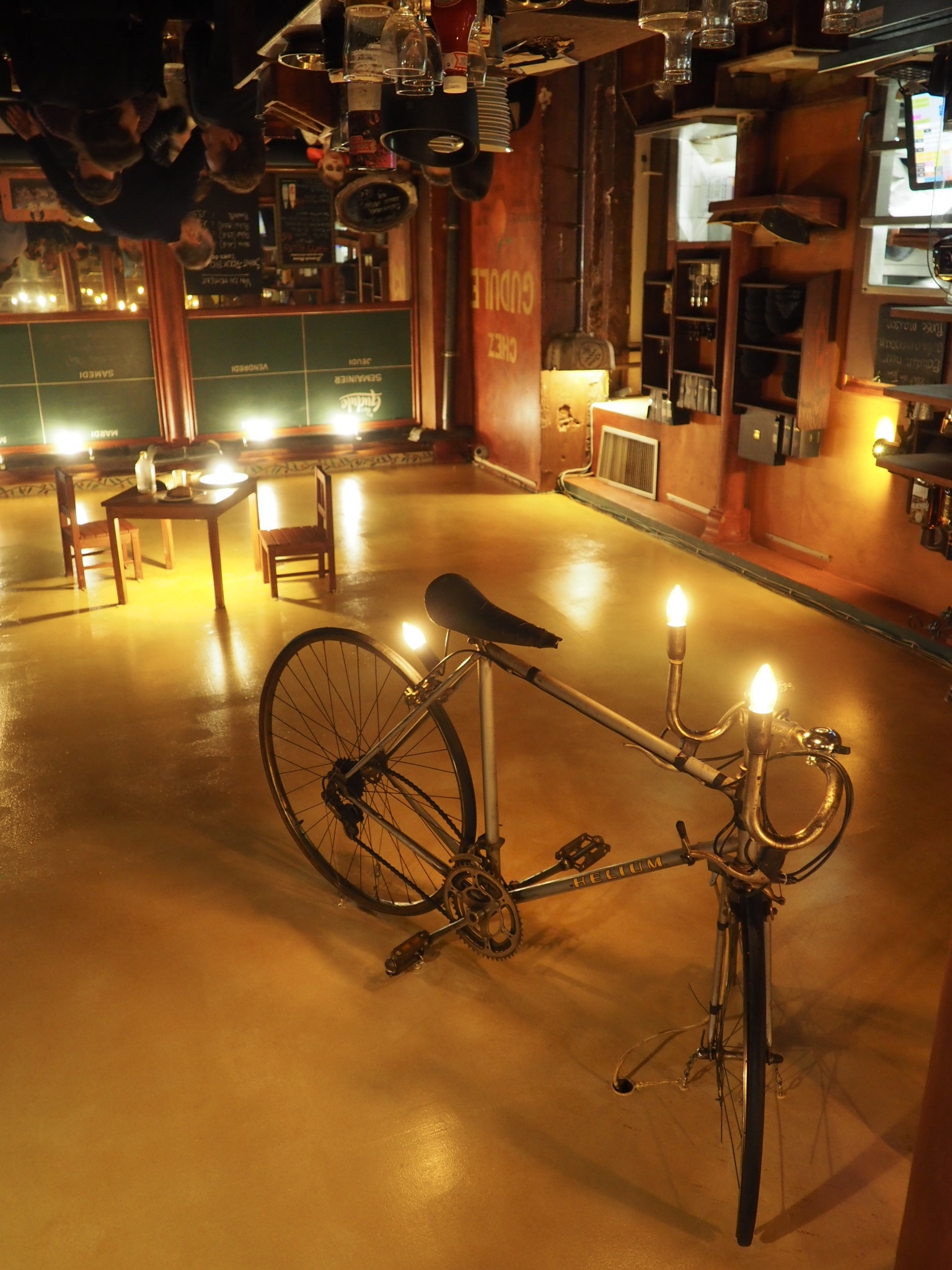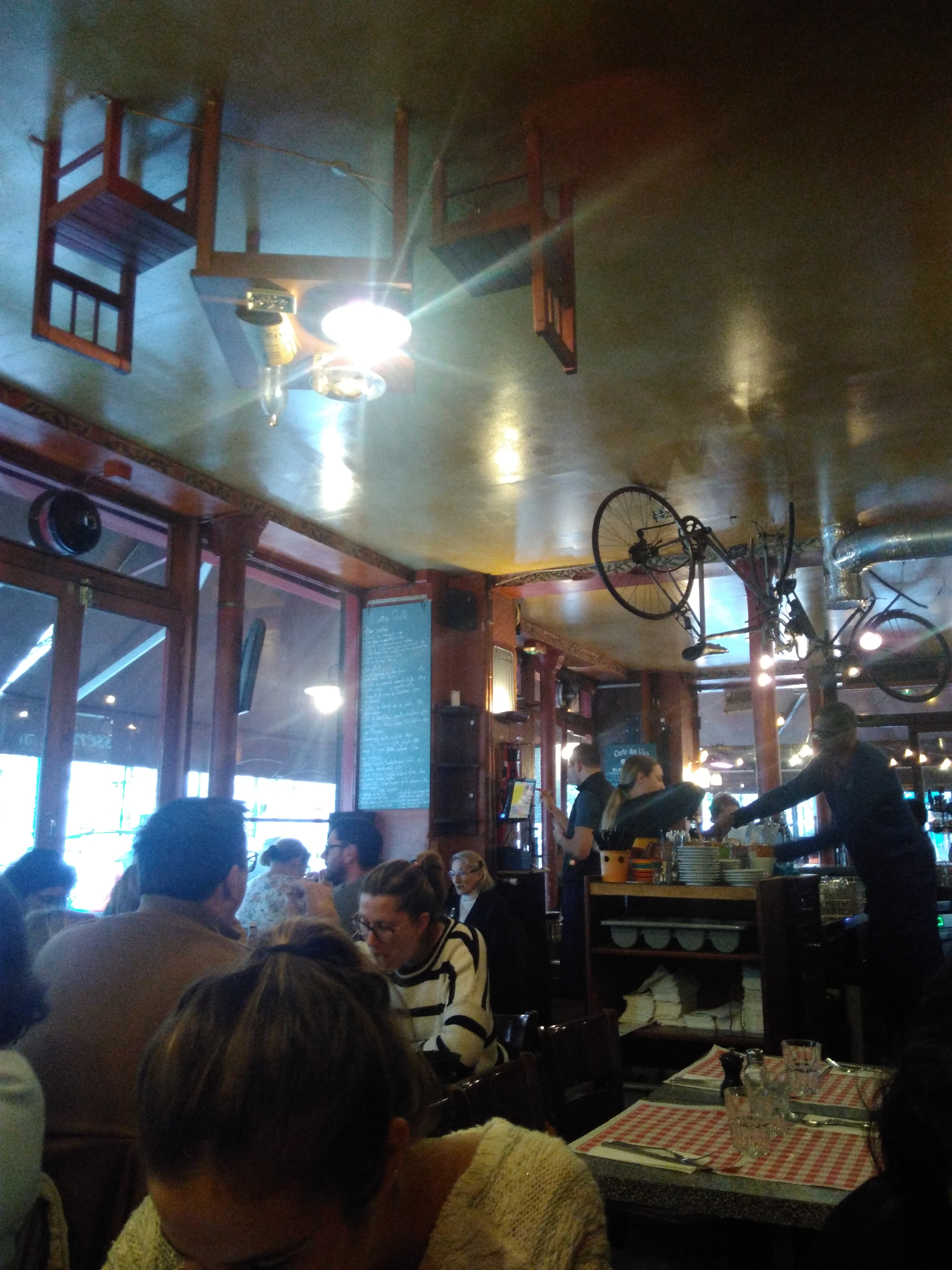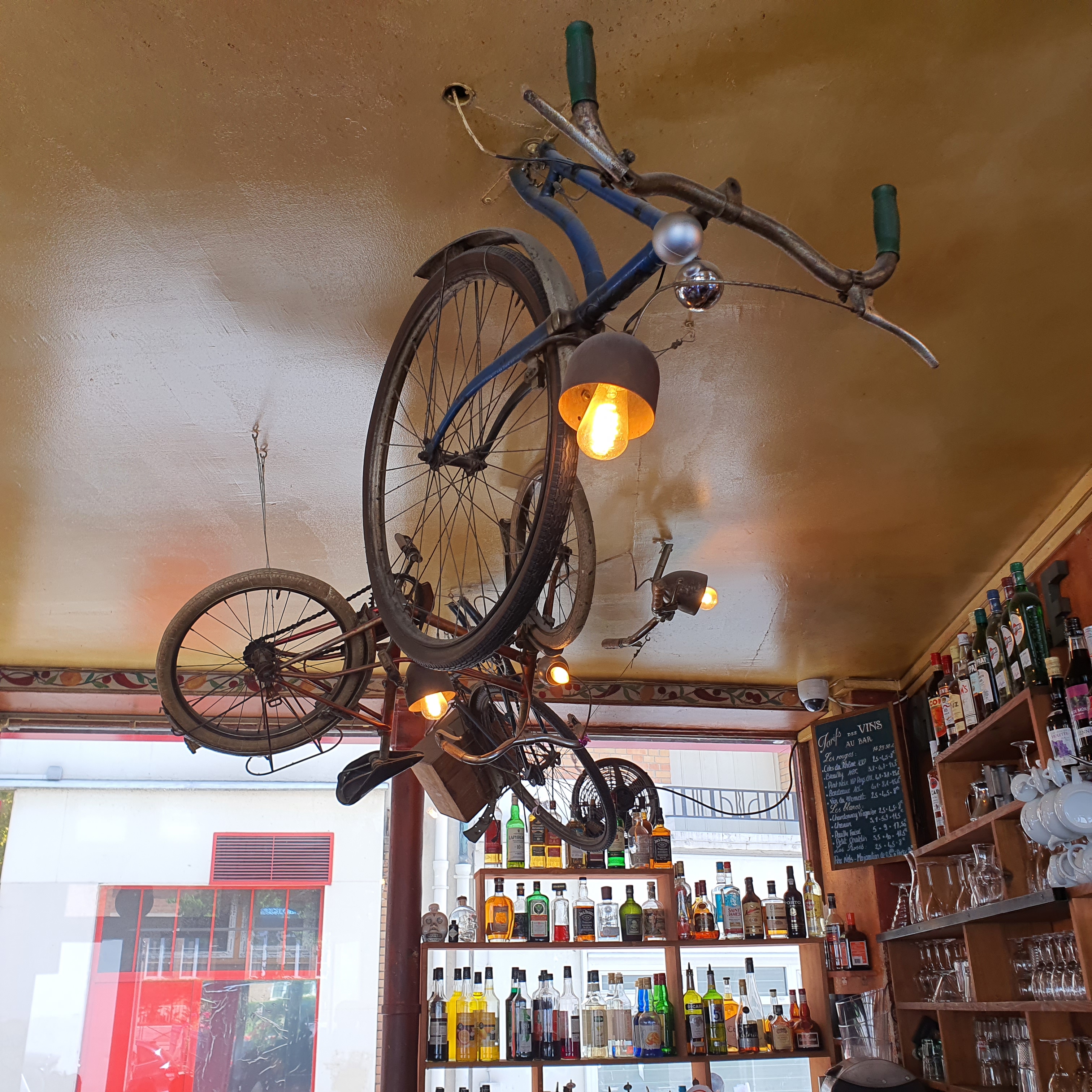 Bonne ambiance, endroit très sympa, agréable Esprit bistrot Déco originale avec des vieux vélos au plafond