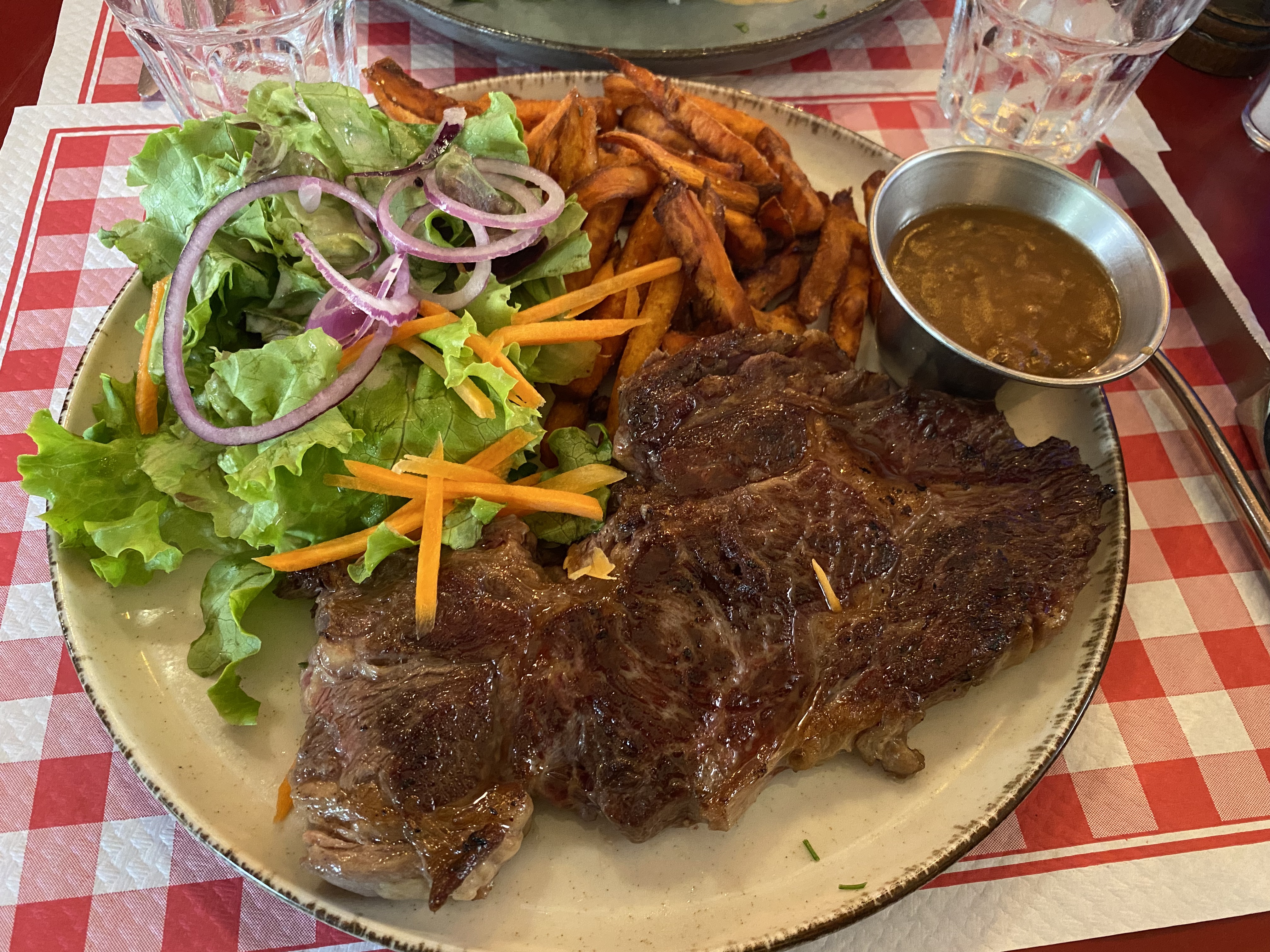Très bonne soirée entre amis. Même si nous sommes arrivés à 22h00. Le service était impeccable. L entrecôte au top. Les frites délicieuses. Le burger succulent. Une ambiance pour tous les âges. Je recommande vivement.