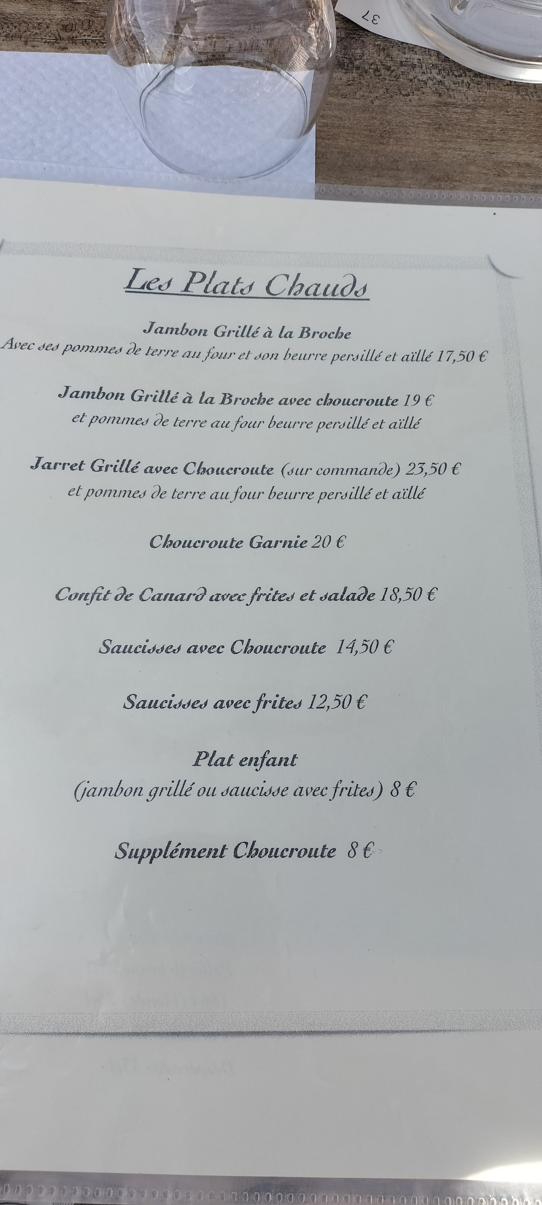 Malgré le fait que l'on soit arrivés 45 min en retard par rapport à notre réservation ( nous avions prévenu au préalable ), nous avons été accueilli chaleureusement. La cuisine atypique et traditionnelle ( choucroute, jambon grillé, jarret grillé, pommes de terres beurre d escargot ) est un atout à mon goût. On y mange très bien, le personnel est très sympathique. Les prix sont vraiment très abordable ( l inflation n est pas passée par là ) Chèques vacances acceptés On vous recommande