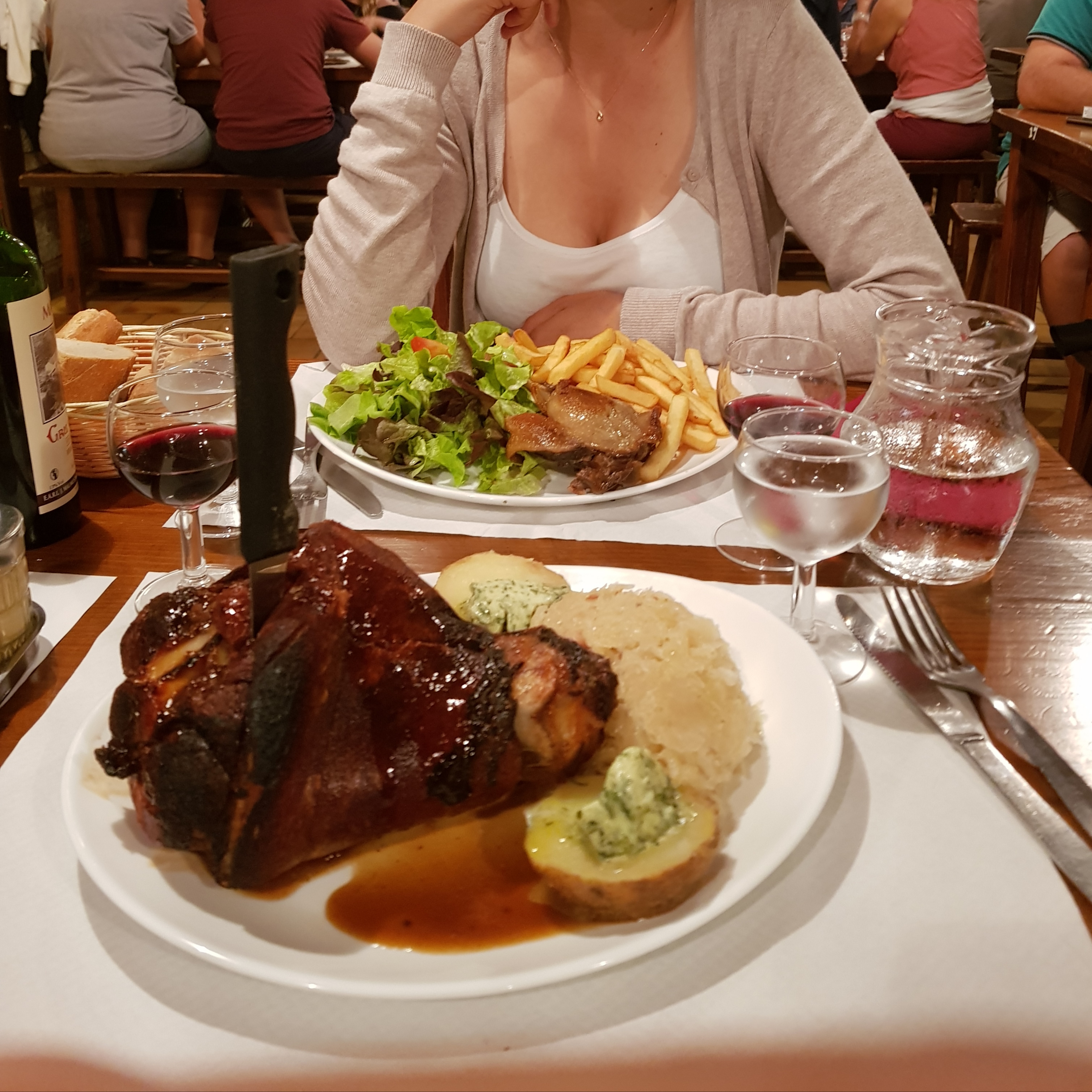 Un jarret impressionnant mais facile à manger, des serveuses très accueillante et sympathique. Je recommande!