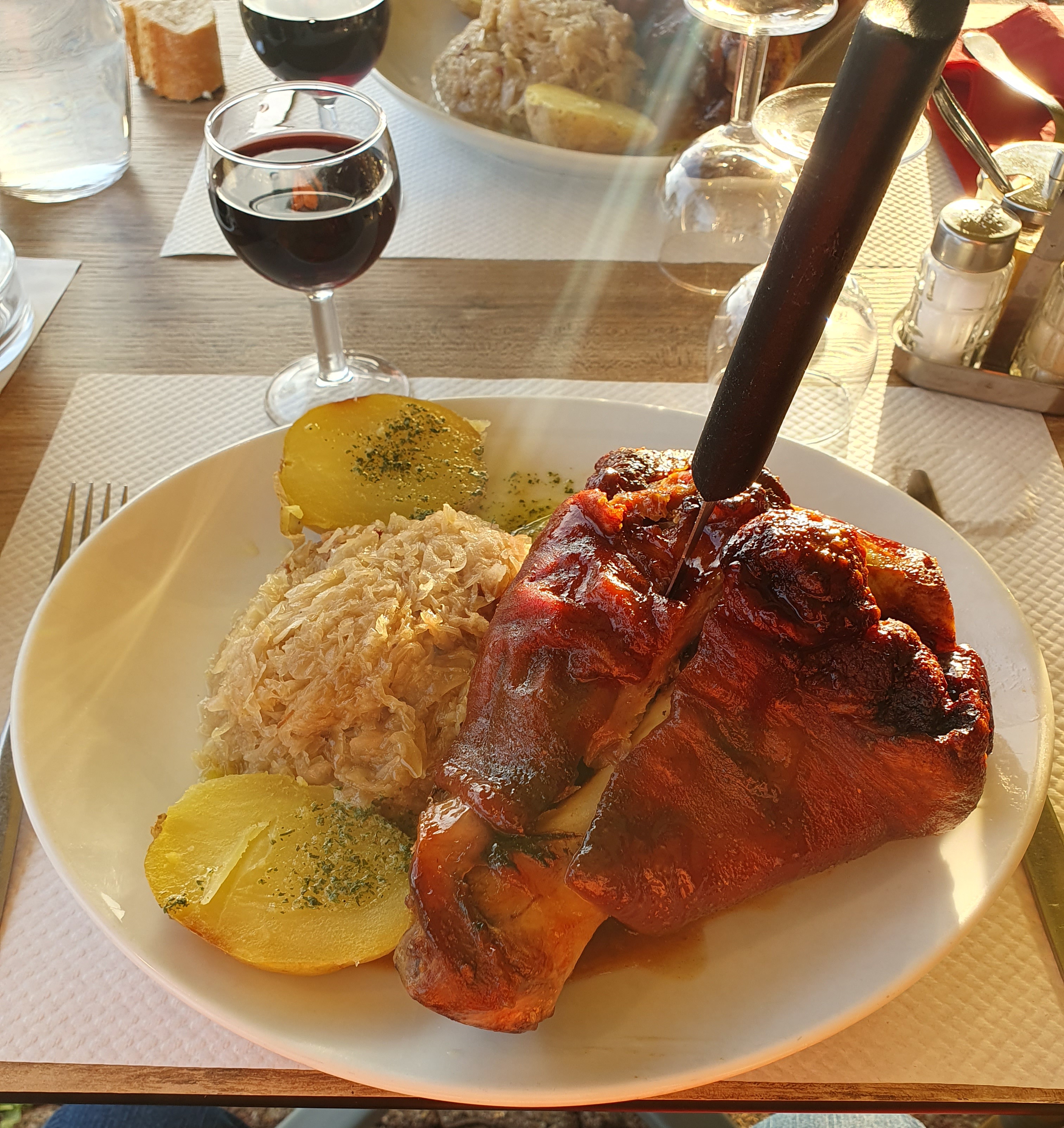 Quand la peau du jarret grillé croque délicatement sous la dent, que le choux est gouteux et fondant avec les pommes de terre fondantes, vous approchez de la perfection. Nous nous sommes une fois de plus régalé. Précautions covid respectées.😁 Le plaisir est aussi de voir avant de rentrer le jarret cuire. Attention de réserver pour ce plat servi uniquement sur commande.😁😍
