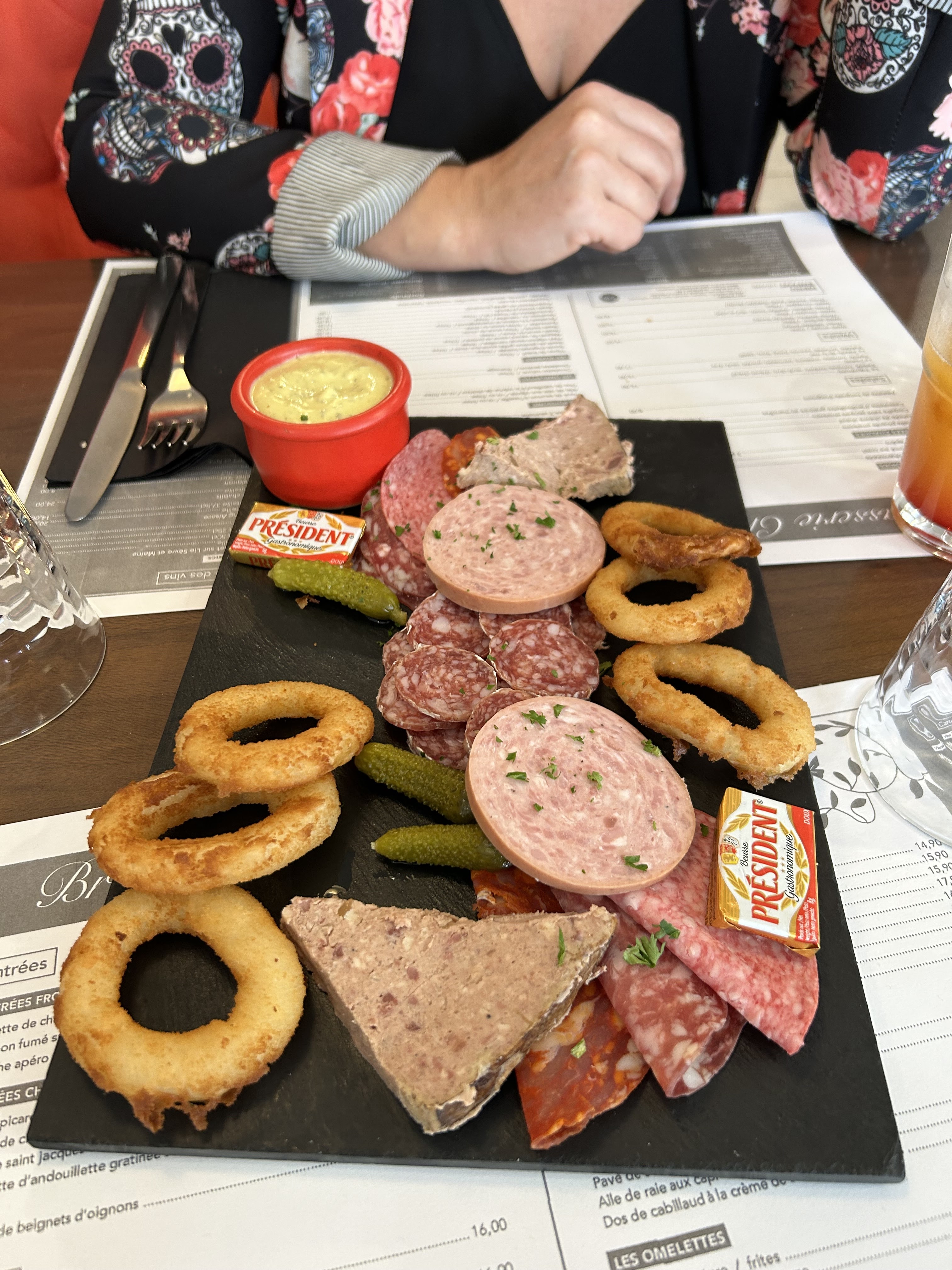Très bien planche apéro copieuse très bon service peu être les plats envoyés trop vite après l’apéro ou l’entrée mais top merci