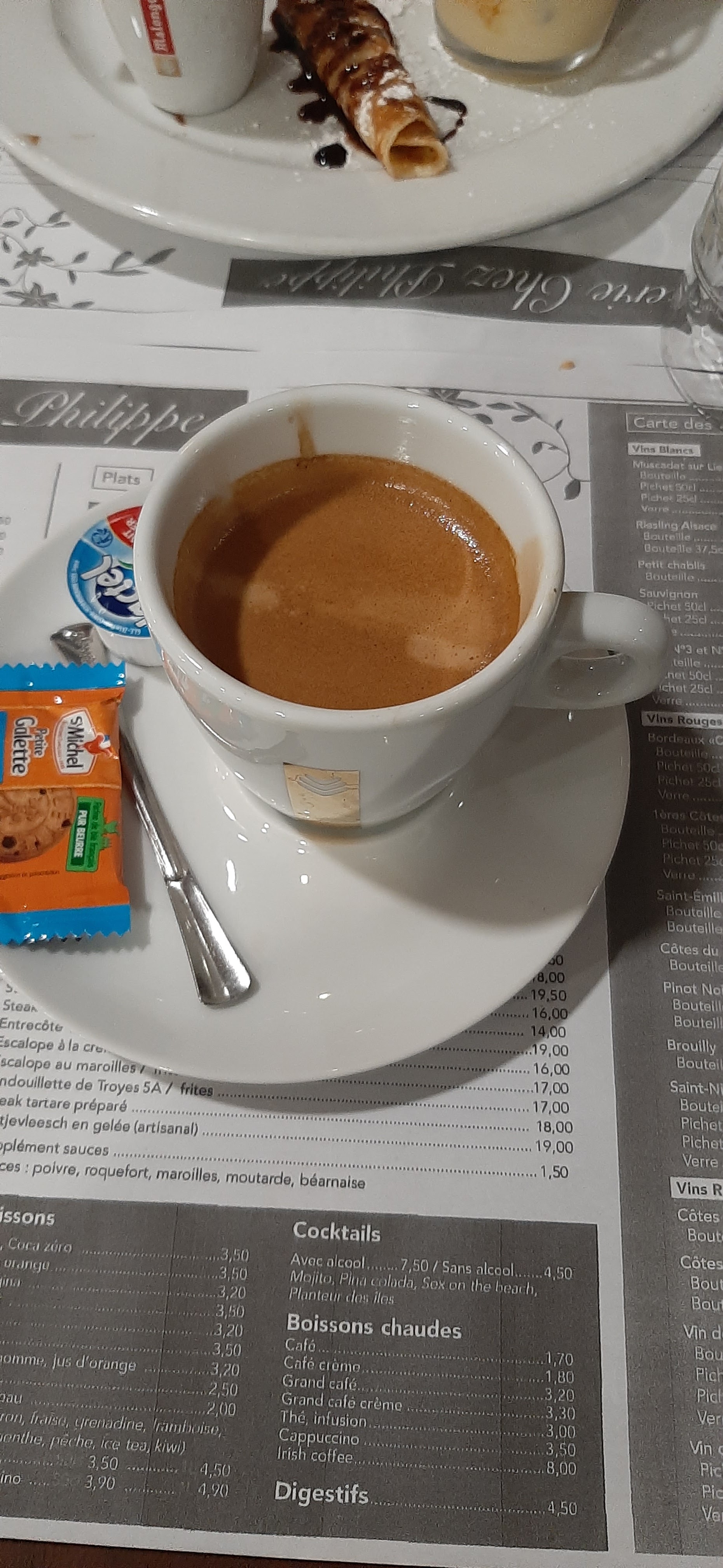 Si je devais qualifier ce restaurant en un mot, je dirai piscine. La pauvre entrecôte noyer dans une sauce soit disante au poivre alors qu’on aurait dit l’industrie nutella. Maintenant passons à l’accueil en un mot, hmmm je dirai le silence des restaurateurs, j’aimerai remercier les clients qui ont détendu l’atmosphère à parler entre eux car on peut se le dire autant d’attente pour des plats ratés rapproche de nombreuses familles. D’habitude dans notre société, dans la vie nous prenons les bonnes et les mauvaises critiques comme on peut le constater ce restaurant n’accepte que les bonnes vu le nombre d’étoile qui est de 4,4 un gros mensonge pour les nouveaux clients qui souhaitent découvrir autres restaurants. SVP pour le bien de vos amis, familles, chiens, chats et hamsters n’allait pas chez Philippe. PS : j’ai mis une étoile car c’est obligatoire et car j’apprécie le prénom Phillipe
