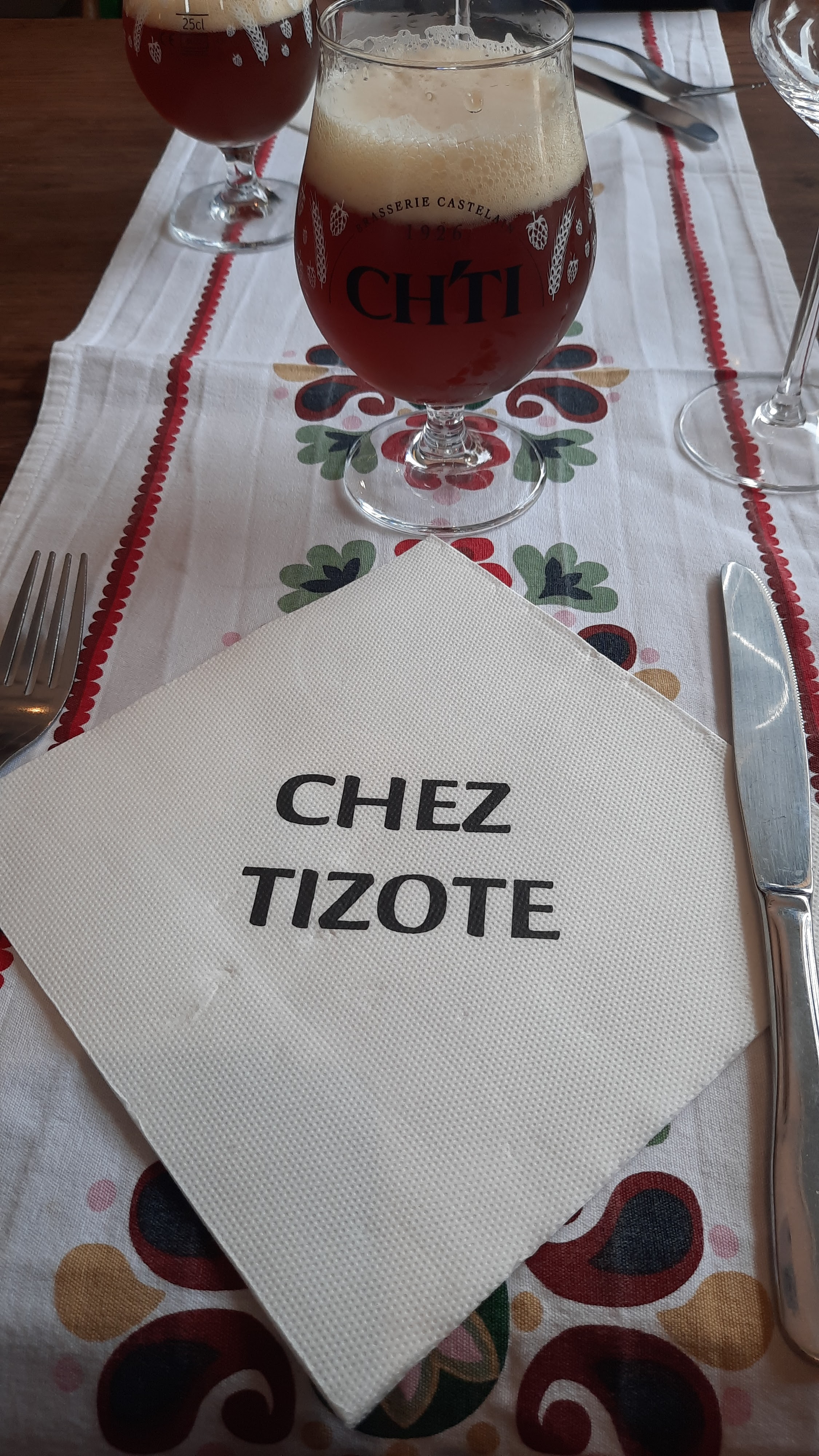 En sortant, nous nous sommes dis Pourquoi n'avons-nous pas essayé d'y aller avant !!? chez tizot : découvert par nécessité de dejeuner alors qu'il était deja 13h, sans avoir réservé ! ... Rien que notre accueil fut un sketch ! et le reste du repas, un veritable spectacle ! tant par la note d'humour lors du service que par nos plats que l'on avait envie d'applaudir à chaque nouvelle bouchée ! un festin dans une ambiance et un décor ch'ti hors norme ! n'hésitez pas à prendre votre carte de fidélité ! ;-)