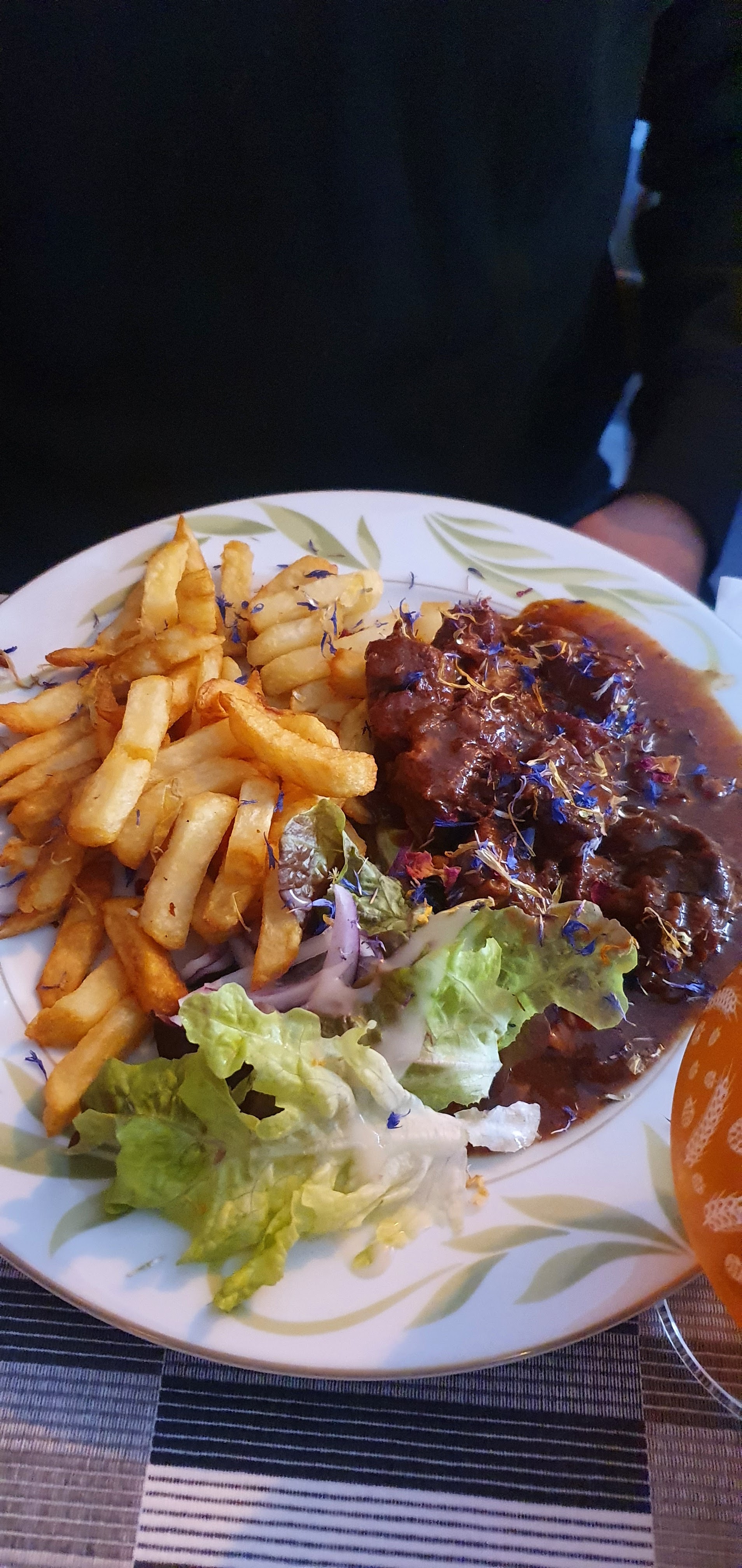 Très bon moment de convivialité avec des amis et autour de l'assiette c'était très bon . J'ai pris de la langue de chat c'était très bon, Irish coffee bien fait également à recommander sans hésitation Pris très raisonnable