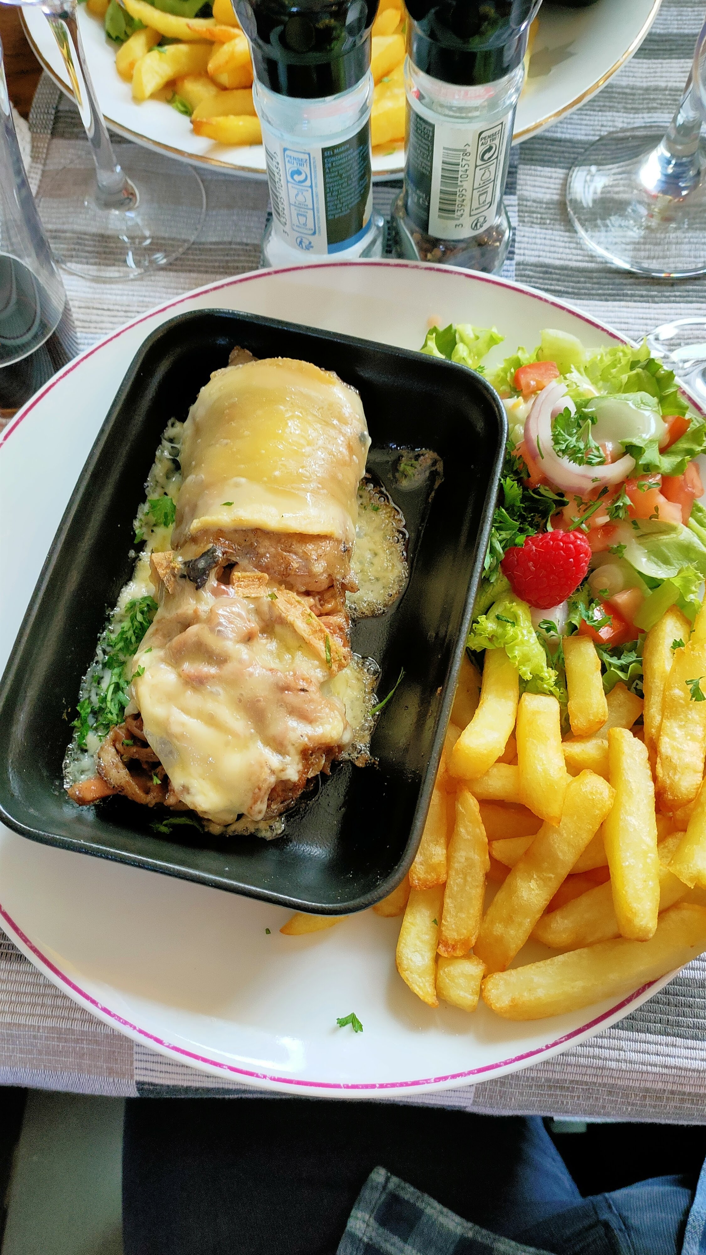 Une déco kitch, un accueil avec le béret et le tablier, une table comme celle de ma grand mère, des chaises recouvertes de cuir. Une gentille efficacité.