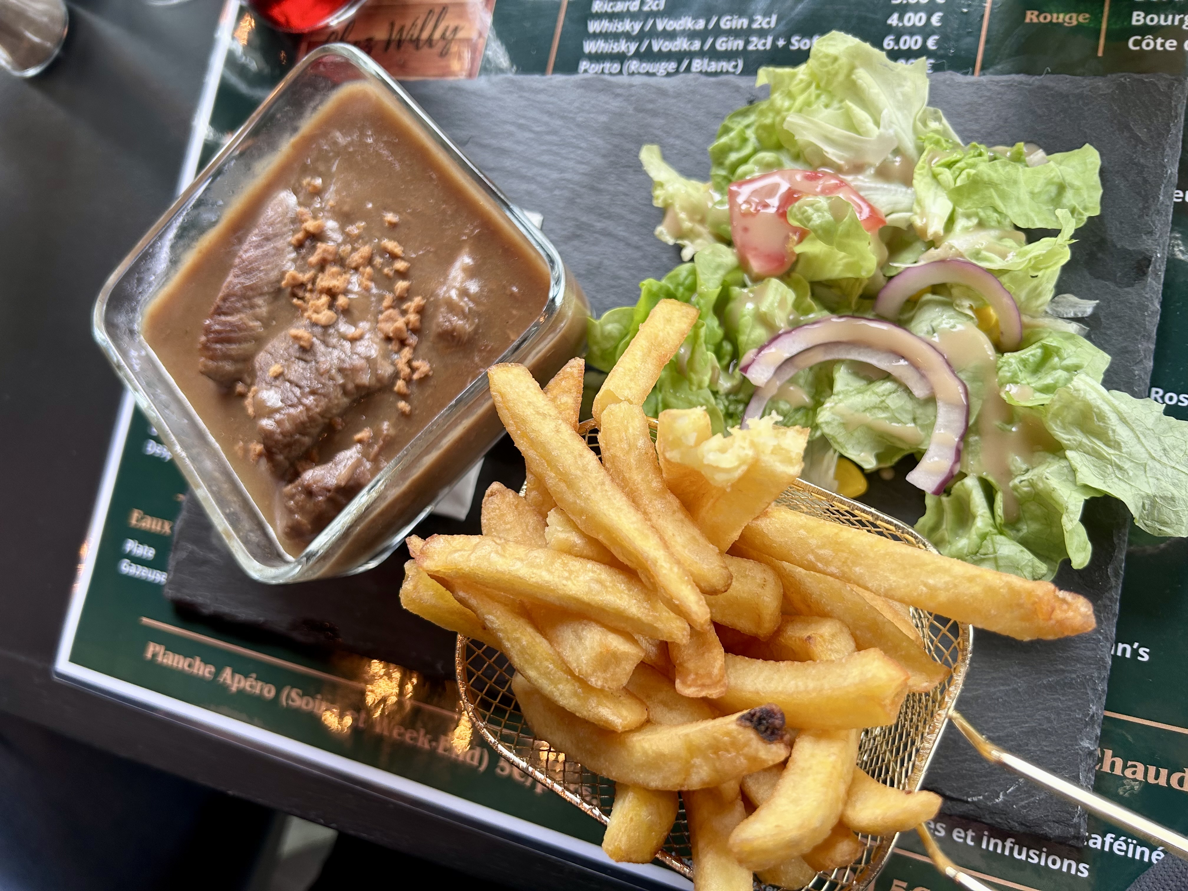 La meilleure carbonnade flamande que j’ai pu goûter ! Fondant au chocolat au top aussi. Ma fille s’est régalée avec le menu enfant, même le petit pot de bébé a été réchauffé à la bonne température 😋. En bref des plats faits maison de qualité et un très bon accueil. Je recommande sans hésiter 👍