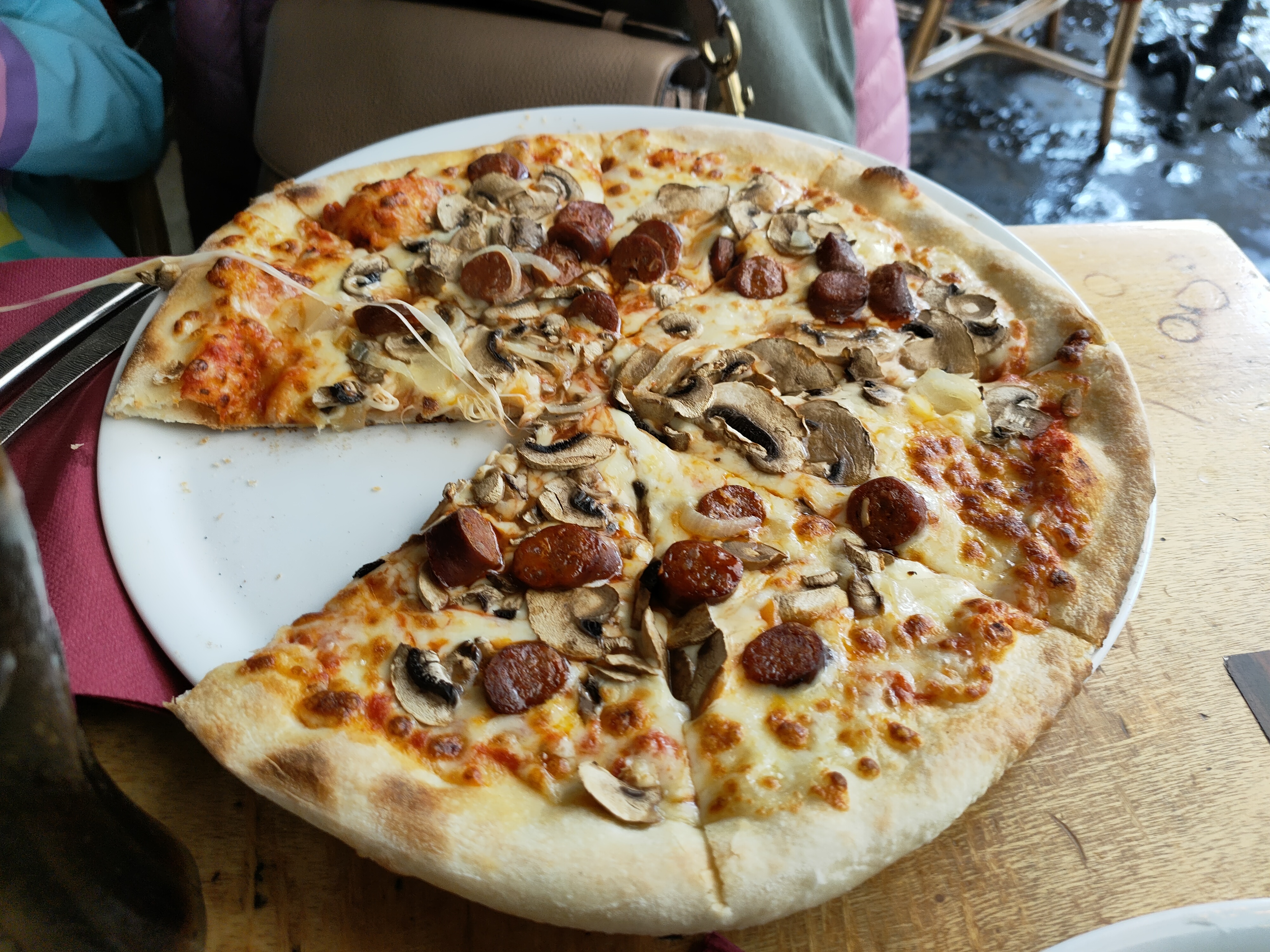 Bel endroit. Super pizza. Excellent portier qui ne nous a pas mis dehors
