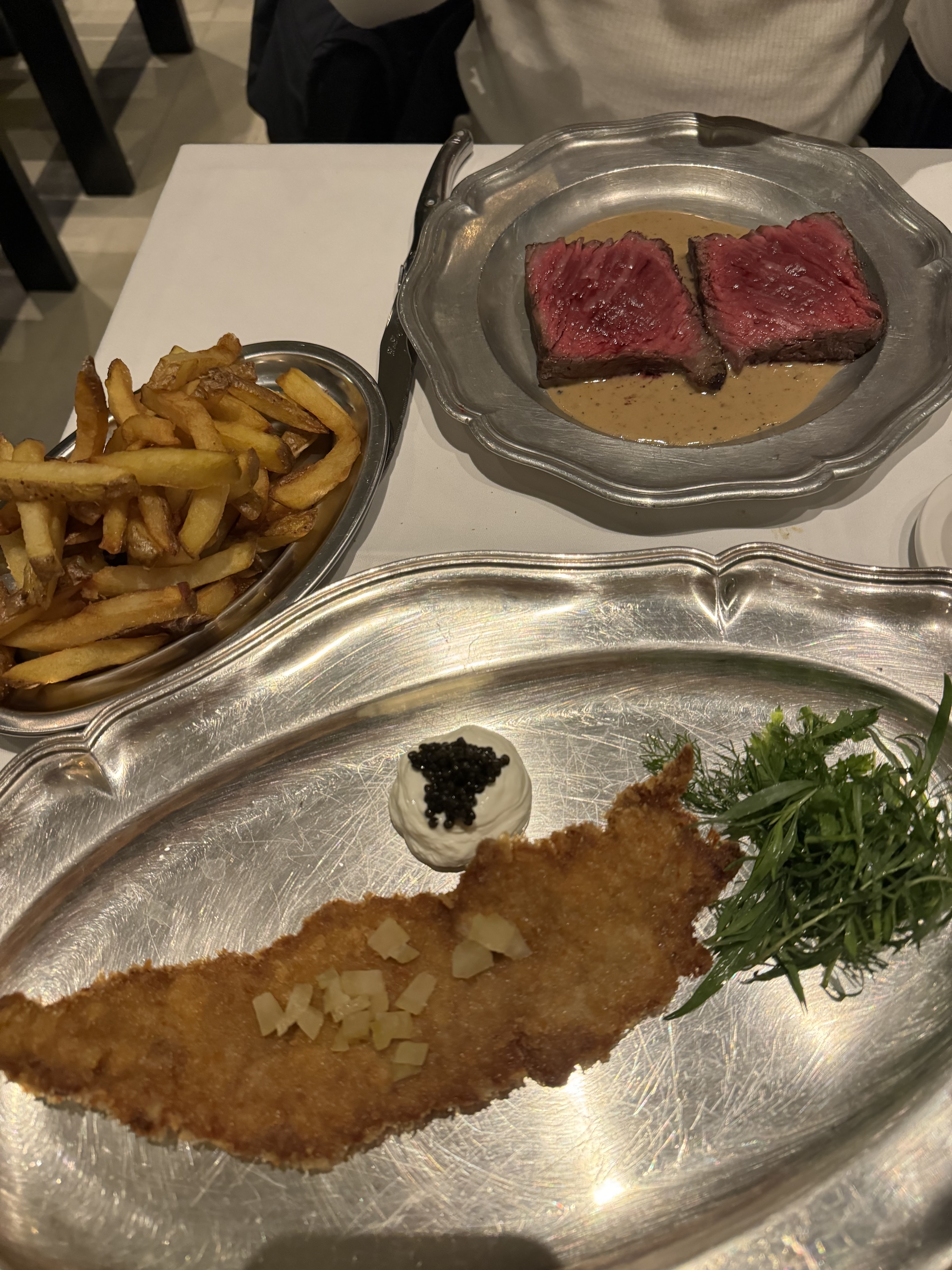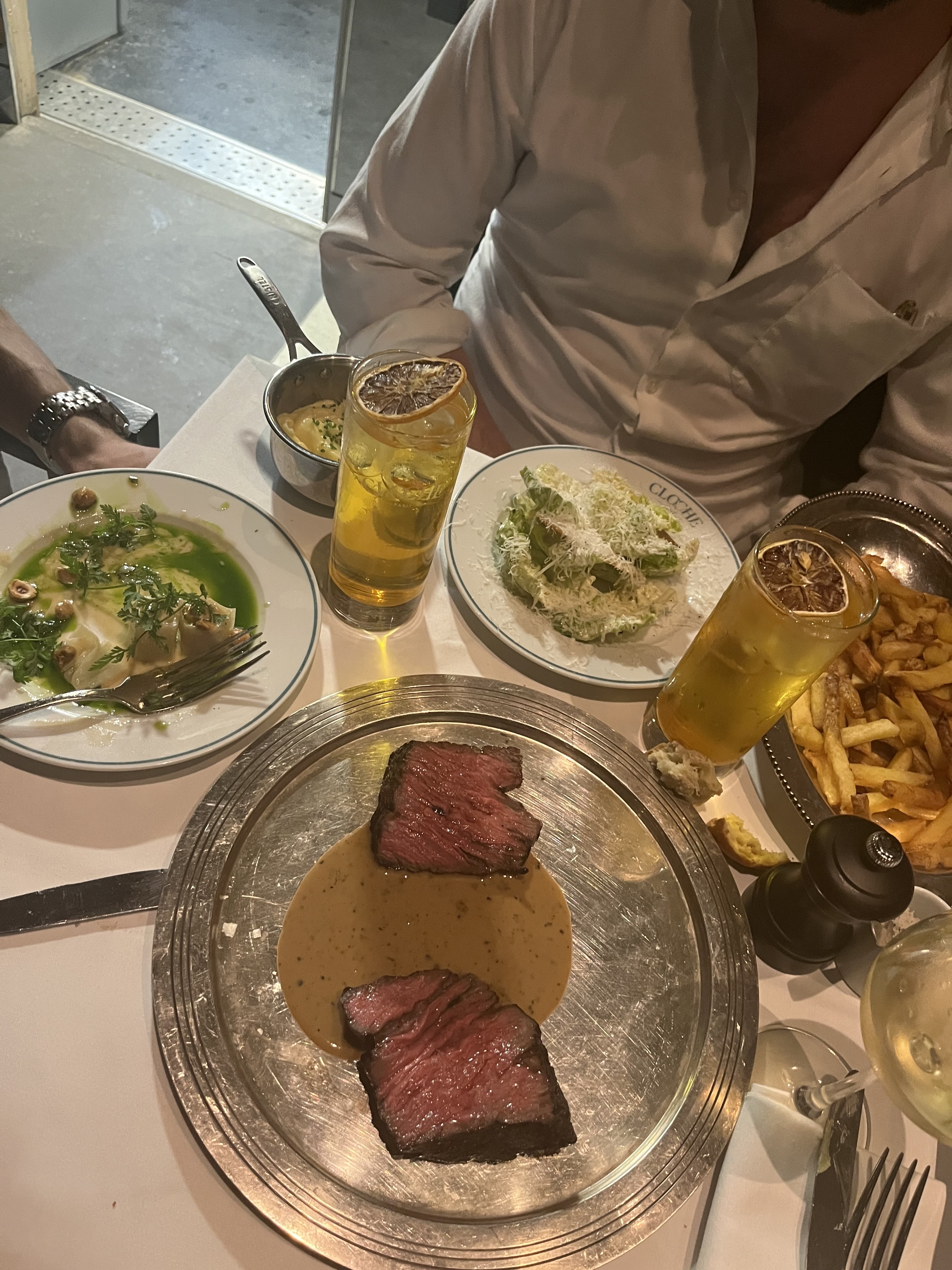 Bruyant, cher, service à perfectionner même si souriant, carte courte et pas tous les plats, musique tonitruante, revisite de la salade Cesar sans intérêt , 2 burratas déposées dans un plat décorées par des anchois , à noter les escalopes milanaises très bonnes ( mais à 40€ + 10€ d’une sauce au caviar en sus presque imposée puisque plus de truffe, c’est le minimum espéré ) … bref ! Convient sûrement aux victimes de la mode avides des réseaux sociaux pour les autres , passez votre chemin , il y a beaucoup mieux pour moins cher dans le quartier . Note positive tout de même , la cadre est plutôt chouette même si la sensation de promiscuité règne .