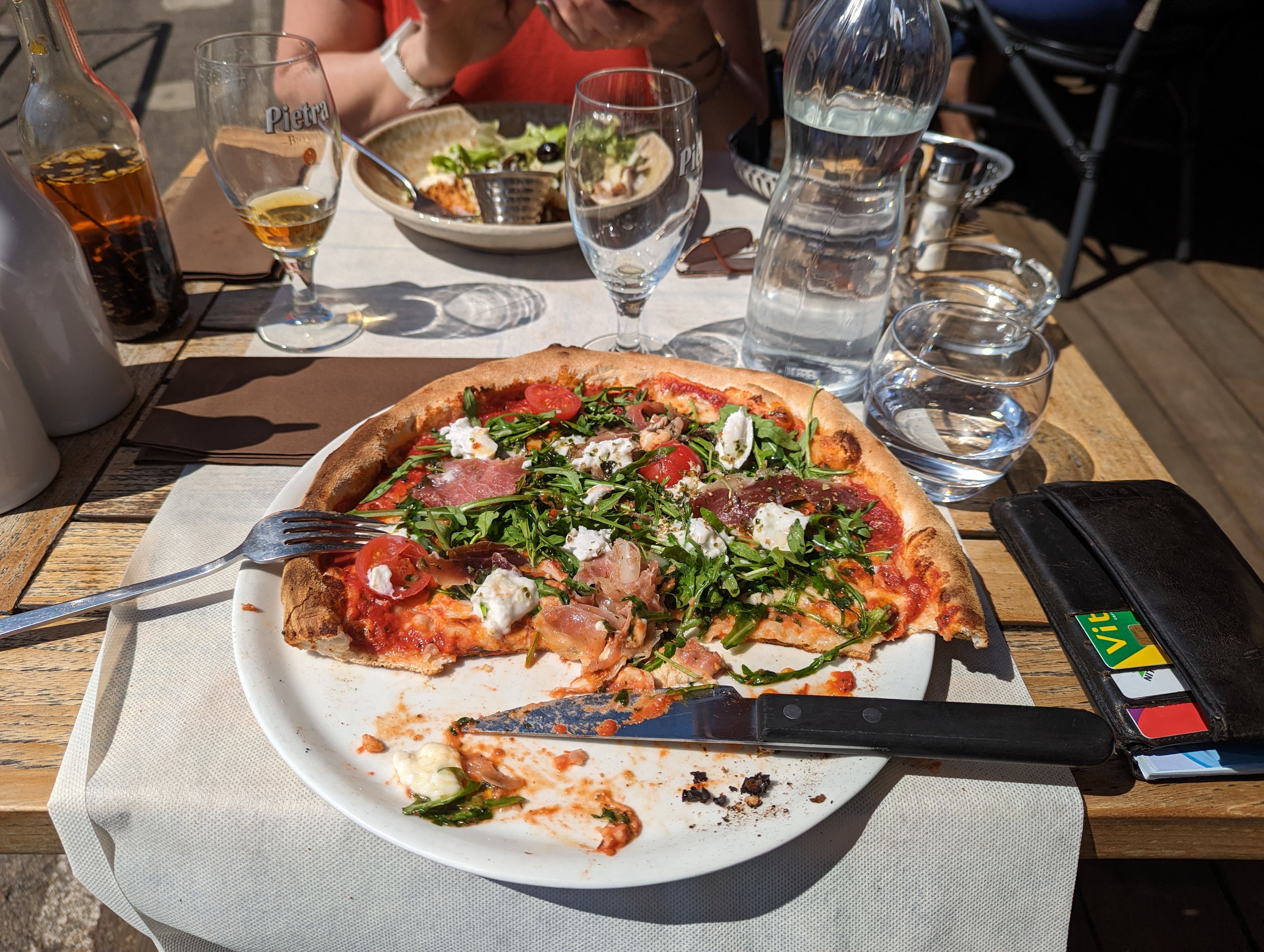 J' y ai mangé une excellente Calzone ( accompagné d'une petite salade au pesto), le prix des pizzas est vraiment correct pour un endroit aussi touristique ! Le service est impeccable, je recommande !